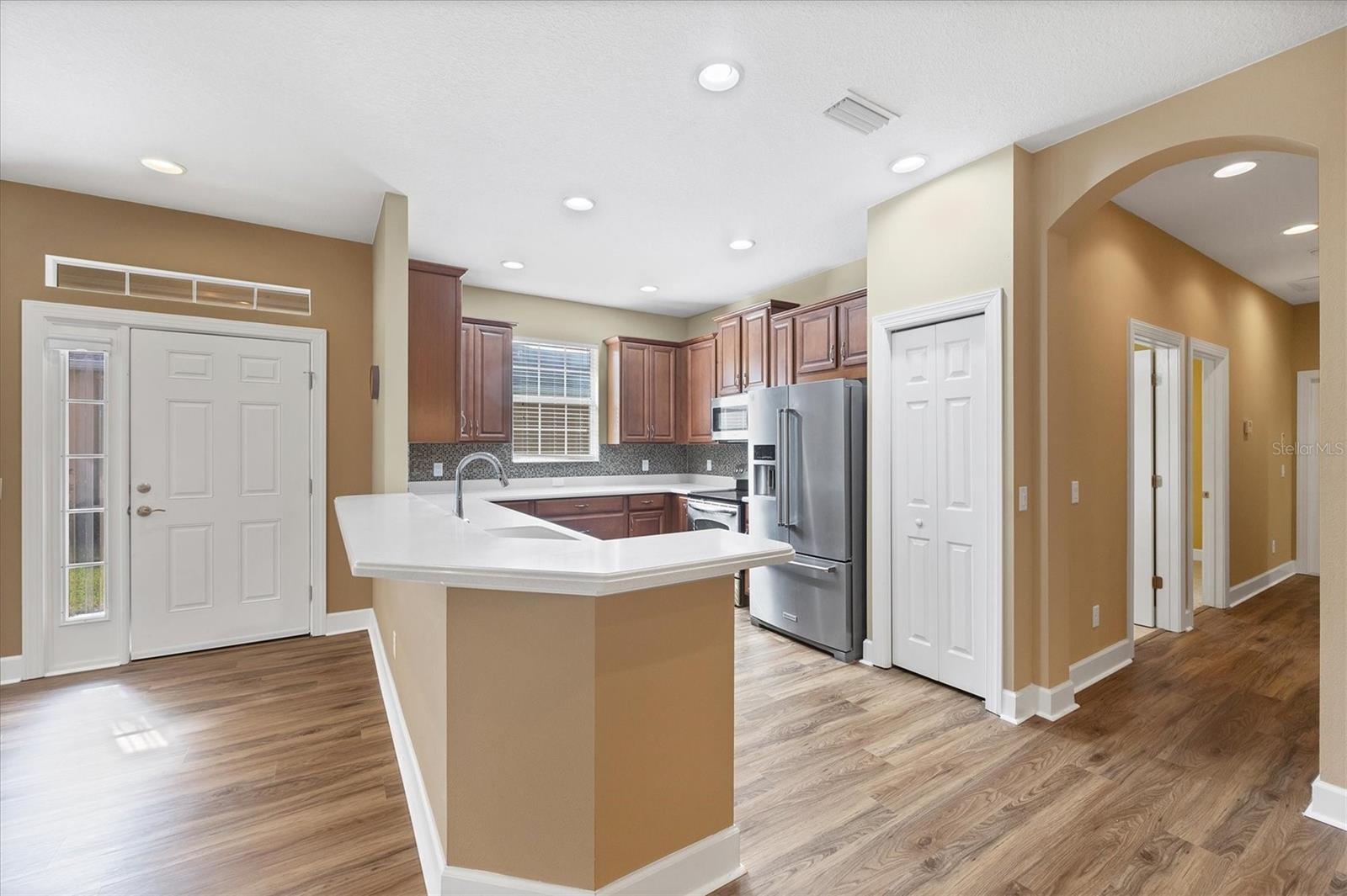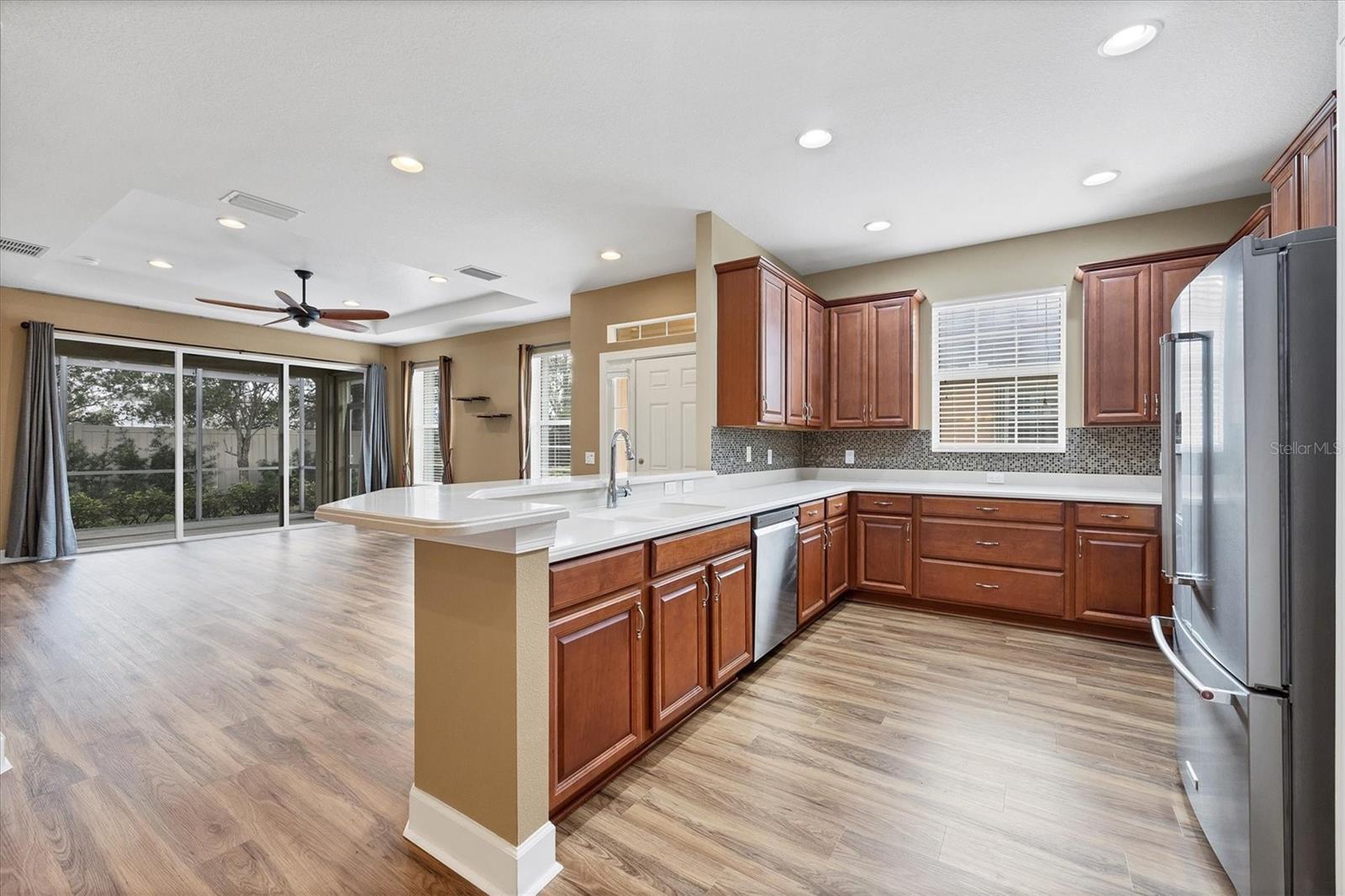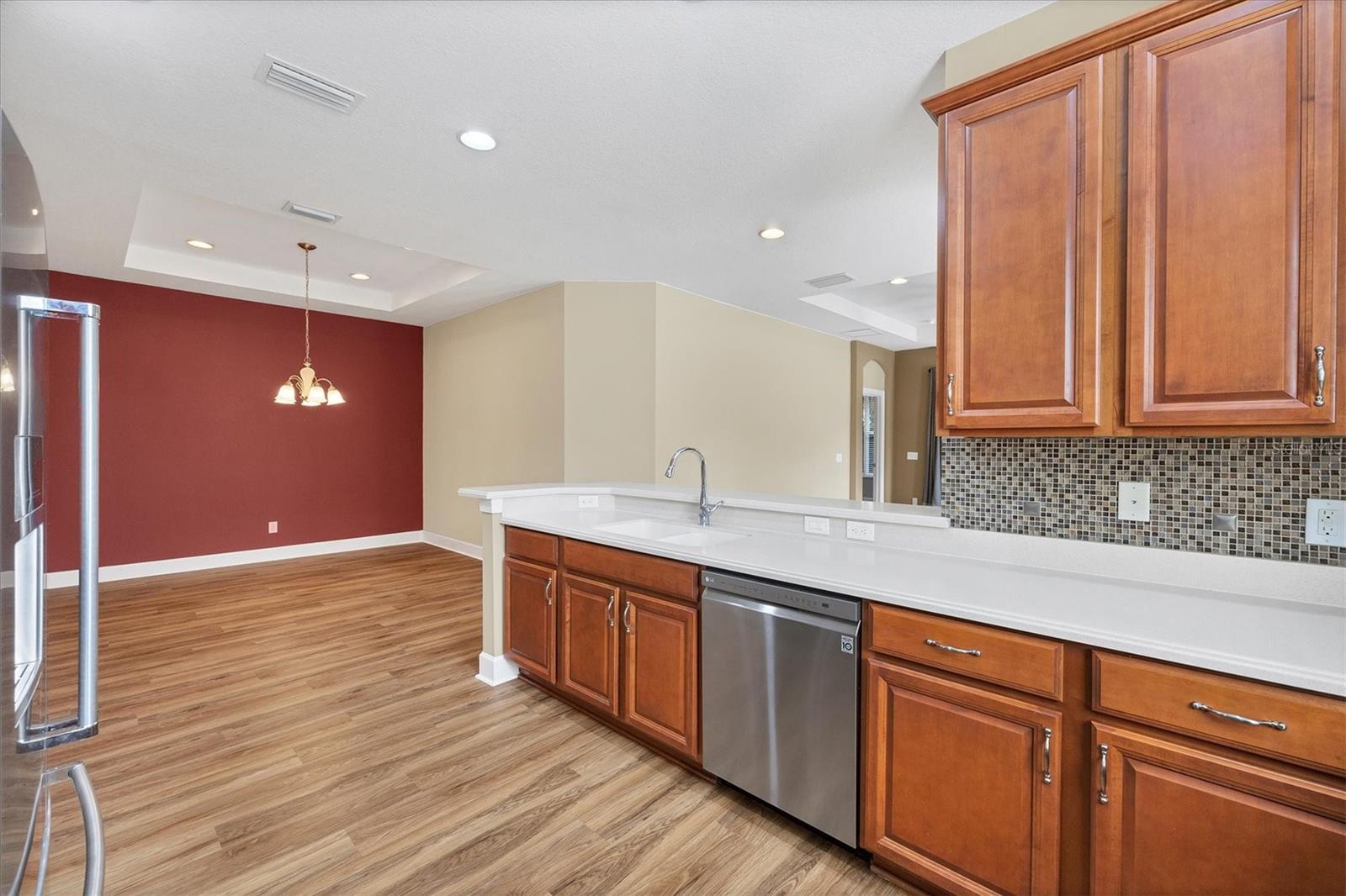 In Verona Reserve, a gated community, this 2 bedrooms, 2 baths, 2 car garage home with extra room is second to none! Extra room has multiple uses, your choice; Den, Man cave, office, etc!! Verona is centrally located in Venice giving you great choices for shopping and just minutes to Historic downtown Venice where shopping and dining is abundant! Venice is located on the West Coast of Florida on the "Gulf of Mexico" with multiple beaches and the "Intracoastal Waterway" giving swimming, sunning, shelling, fishing, boating and Sunsets you'll never forget! Enjoy volume ceilings, ceilings fans, new (2024/25) luxury Vinyl and carpet floorings, triple sliding glass doors from Great Room area out to covered lanai plus caged lanai!Master suite is nicely appointed with newer carpet, coiffured ceilings, en suite bath, double vanities & make-up area, large walk -in closet and water closet. Great Room is adjacent to kitchen with 42 inch cabinets and granite counters, breakfast bar and stainless steel appliances. Separate dining area compliments the well planned great room and kitchen areas. Bedrooms are a split plan giving privacy to both, Bedroom 2 is adjoins bath 2, Inside laundry gives conveniency along with laundry sink and storage. Enjoy maintenance free living with exterior maintenance, lawn care, landscape, exterior pest, repainting of exterior and "roof replacement when needed". Amenities include community pool, dog park, easy walk to shopping and restaurants! Great 2 car garage with high ceiling for extra storage. This villa shows beautifully and ready to move in. Newer Ac, water heater, refrigerator, microwave, dishwasher, garage door opener, flooring, shower door, plus home is equipped with hurricane shutters! No Cdd,s here.