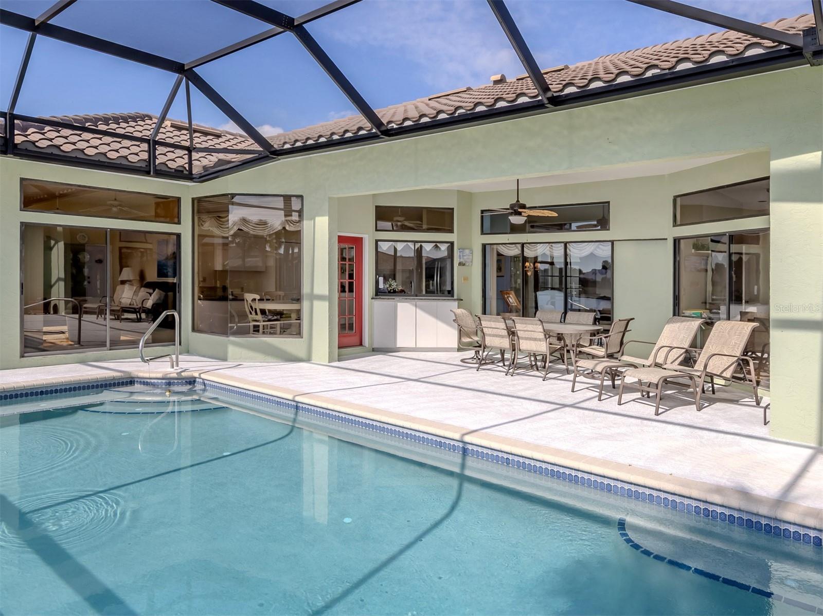 Welcome to Waterford! This beautiful home has one of the BEST LAKE VIEWS in this neighborhood. 3 BEDROOMS, 3 BATHS, 2 CAR GARAGE with a comfortable 2,176 SQUARE FEET under air. As you walk into the front door, you'll notice that the home has a lot of natural light that shows how extremely well this home is maintained. This is an excellent split plan home with the Primary Bedroom and 2 bedrooms separated by the front living room & Dining areas. The primary bedroom suite enjoys sliders to the pool area with a VIEW OF THE LAKE. The en-suite bathroom also includes two generous walk-in closets. The Kitchen, Dinette and Living area make a perfect OPEN CONCEPT, there are large windows throughout with wonderful LAKE AND POOL VIEWS.The Waterford Sports Club Complex offers a SERENE PARK, HEATED POOL, SPA, and FOUR TENNIS COURTS, along with a FITNESS AREA, sauna, kitchen, a great 27 Hole GOLFING COMMUNITY which is a voluntary membership. The Waterford community amenities also include a clubhouse and tennis courts. New pickleball courts are coming soon for the Community. Waterford is a premier community that is close to shopping, restaurants, THE BEACH, I-75 & US-41, it literally has it all! Check it out soon.