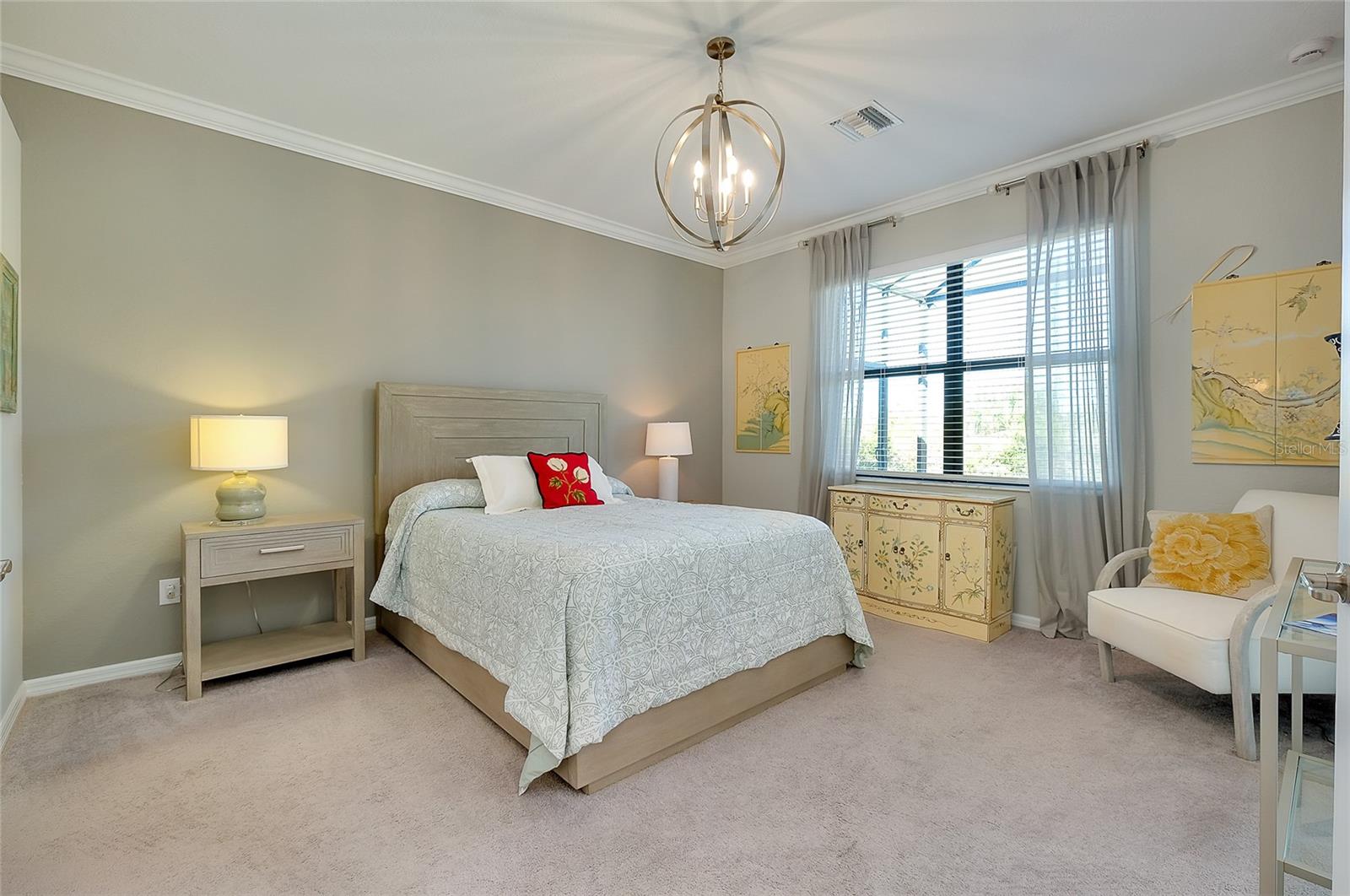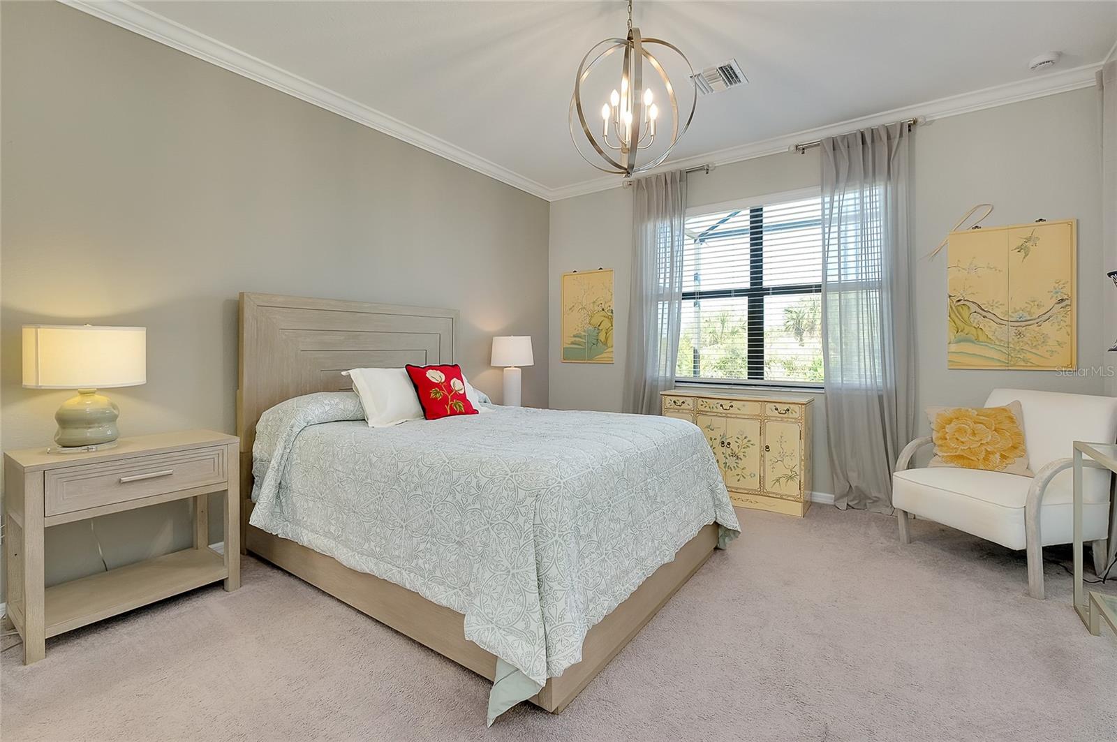 **IS ATTENTION TO DETAIL ON YOUR LIST OF HOME REQUIREMENTS?**Then this exceptional **turn-key villa** is the one you've been waiting for.Perfectly situated on a quiet **cul-de-sac**, this home offers a **rare premium setting** with tranquil **preserve views in the back** and a **lake view in the front**. Enjoy convenient access in and out of the community without driving through the entire neighborhood, while still being **minutes from the Clubhouse and amenities**. Located on the **lake side of Sarasota National**, where **golf membership is NOT required**.Curb appeal is immediate, enhanced by the front lake view and lush green space behind. Inside, you'll discover a beautifully decorated residence that blends luxury with comfort. The welcoming foyer opens to an **open-concept floor plan** featuring **large rectangular tile flooring throughout the main living areas**, with plush carpet in the bedrooms and den.The kitchen is a chef's delight, offering **granite countertops, stainless steel appliances, tile backsplash, raised-panel cabinetry, under-cabinet lighting, a transom window**, and **custom shelving in the closet pantry**--all designed for both style and function.Dining and living areas are equally impressive with **designer upgrades**, including a **shiplap accent wall, chair rail, framed mirrors, and crown molding** throughout the main living areas and primary suite. **Custom window treatments and upgraded lighting** further enhance the space.Step outside to the **extended, private lanai**, where preserve views, additional landscaping, generous spacing between neighbors, and a privacy screen create the perfect setting for relaxation or entertaining.The **spacious primary suite** features sliding doors to the lanai and an elegant en-suite bath with **dual sinks, a garden tub, and a walk-in shower**. Thoughtful upgrades include **designer lighting, a shiplap accent wall, framed mirrors**, and **custom closet shelving**.A second bedroom and full bath are thoughtfully positioned at the opposite end of the home for guest privacy. The **den/flex room** offers versatile space--ideal for a home office, media room, or overflow guests with a pull-out sofa.The laundry room is well-appointed with **additional cabinetry, a folding counter**, and **direct access to the two-car garage**.**Sarasota National** is a remarkable community spanning over **1,300 acres of preserved land**, lakes, and open space. As an **Audubon International-Certified Sanctuary**, it offers a truly exceptional lifestyle. Amenities include a **resort-style pool and spa, Tiki Bar and restaurant, tennis, pickleball and bocce courts, coffee lounge, library, card and meeting rooms**, and more. A **7,000-square-foot fitness center** with classes and day spa complements the impressive **30,000-square-foot clubhouse** with dining and breathtaking views. The **10-hole championship golf course**, surrounded by native wetlands and preserves, provides a stunning backdrop for both play and relaxation.Ideally located just minutes from **Wellen Park**, the **Atlanta Braves Spring Training Stadium**, beautiful Gulf beaches, and **historic downtown Venice**.**Schedule your private showing today and experience this exceptional villa for yourself.**