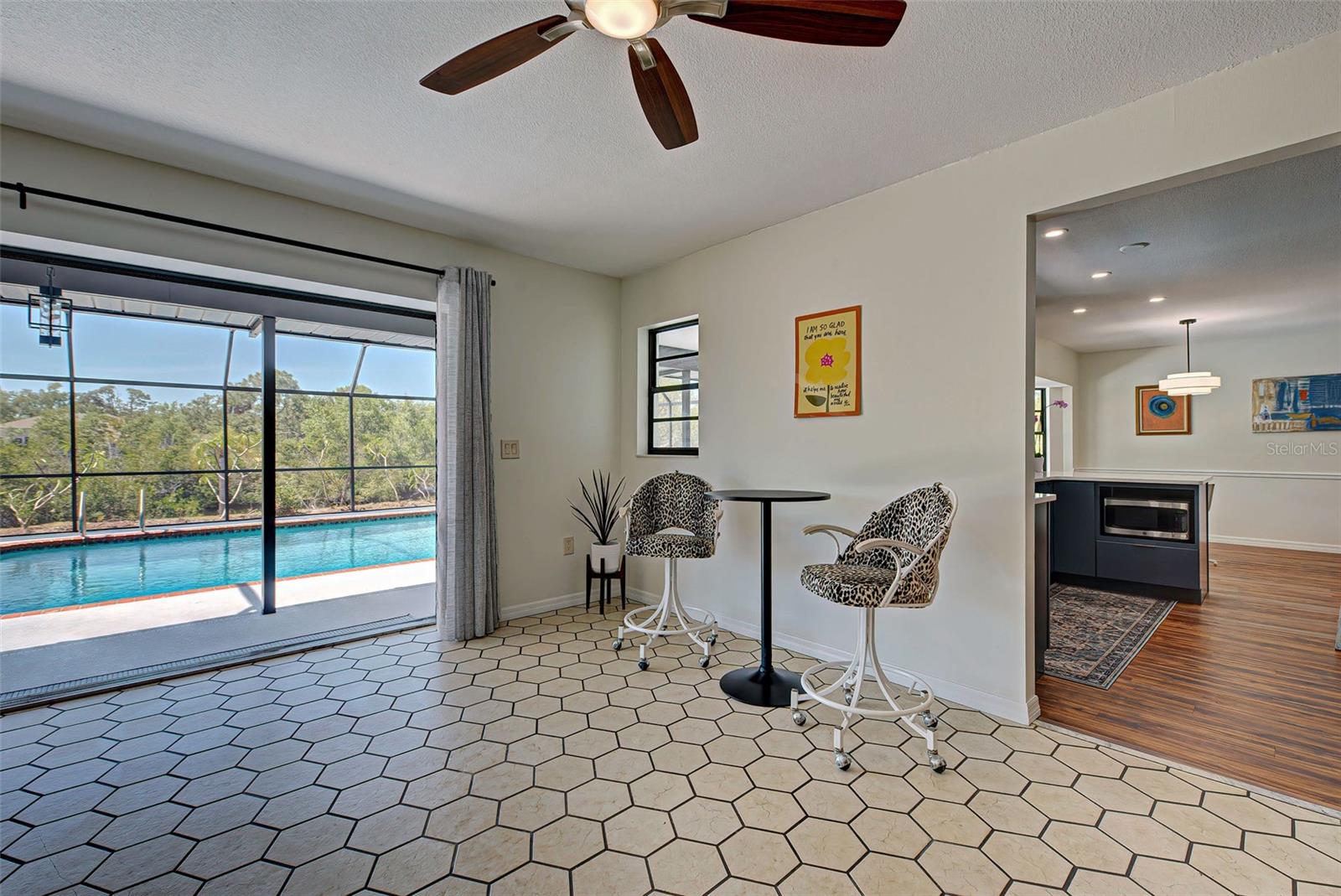 PRICE REDUCTION!! 1+ ACRE HOMESTEAD with MASSIVE 3+ GARAGE. MORE THAN $120k in UPGRADES and improvements makes this home a WINNER. Step away from the hustle and bustle of the city to the tranquility of this newly renovated (2024) Mid-century vibe home situated on a 1+ acre lot in Dale Lake Estates. NO HOA here or restrictions! This cul-de-sac street borders the MANASOTA SCRUB NATURE PRESERVE that is open to the public. Your back yard extends to the waters edge with approximately 200 ft of frontage where you can enjoy fishing, bird watching and you can paddle down to Dale Lake and beyond. When you enter the home you will be drawn right out through to the family room through large sliding glass doors to the large screened lanai and swimming pool (32 x15) with beautiful views of the spacious back yard. ENJOY PEACE OF MIND WITH YOUR NEW POOL CAGE (2/25) with hurricane code rating. Enjoy the glow of the double sided fireplace from the living room and into the family room. This home has been entirely upgraded. (See list of upgrades in the Attachments) The kitchen features all new Solid Maple cabinetry, Stainless appliances and Silestone Quartz countertops. The kitchen has an eat in area for casual dining and access to the formal dining room. Luxury vinyl flooring through the living room, formal dining room and kitchen. This home has freshly painted exterior and interior walls and ceilings. The home features 3 bedrooms and 3 full baths. The 3rd bath has access from the back yard off of the pool and from the garage. The bathrooms have been fully renovated including tile work, sinks, toilets, light fixtures and vanities. Each bedroom has wood parquet floors and large deep closets. The primary bedroom has a large walk in closet (7ft x 6ft) with custom shelving. Plenty of storage in the Massive 3.5-car garage (1053 sq ft) with a new Epoxy floor has an additional bump out area where you can store kayaks, paddle boards and there is even room for a work shop. The washer, dryer and laundry tub are also located in this oversized garage. The home has 2 new AC units and 2 electric hot water heaters. Roof was replaced in 2022. New septic tank and drain field was completed 2023 and the property has a well for outside watering. Public water is supplied by Englewood Water Utilities. This is everything you dreamed of. Close to everything you need! You're close to Englewood or Venice for shopping, restaurants, beaches, hospitals and the new Wellen Park community with the Atlanta Braves Spring Training facility. You can walk or bike the 2.5 miles to Manasota Beach. Schedule your private showing today!
