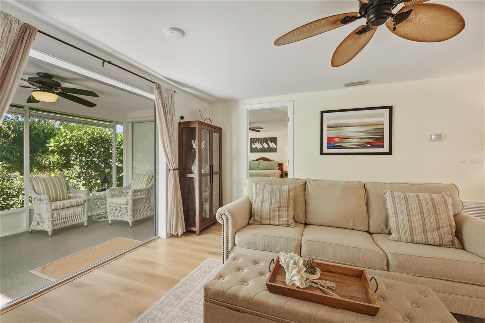 Discover the charm of this beautifully updated free-standing villa, offering over 1,000 square feet of inviting living space. With 2 bedrooms and 2 baths, this home is designed for comfort and style. Step outside to your private screened-in 126-square-foot lanai, perfect for relaxing evenings, plus an additional paved patio ideal for soaking up the sun.Built for peace of mind, the villa features impact windows, elegant plantation shutters, and recently installed smoke alarms. Modern conveniences include a recent washing machine, dishwasher, and water heater. Freshly painted inside and out, with maintenance-free gables added in 2025, this property exudes freshness and durability.The professionally landscaped grounds enhance the curb appeal, while inside, newer luxury vinyl flooring--accompanied by crisp baseboards and casings--creates a seamless, carpet-free flow. The efficient kitchen boasts warm wood cabinets, sleek granite countertops, and plenty of natural light, making it a bright and stylish heart of the home. Ceiling fans throughout keep things cool and comfortable.Nestled in an active community with a bustling calendar of events, and just a short drive from beautiful beaches, this villa is more than a home--it's a lifestyle waiting for you!