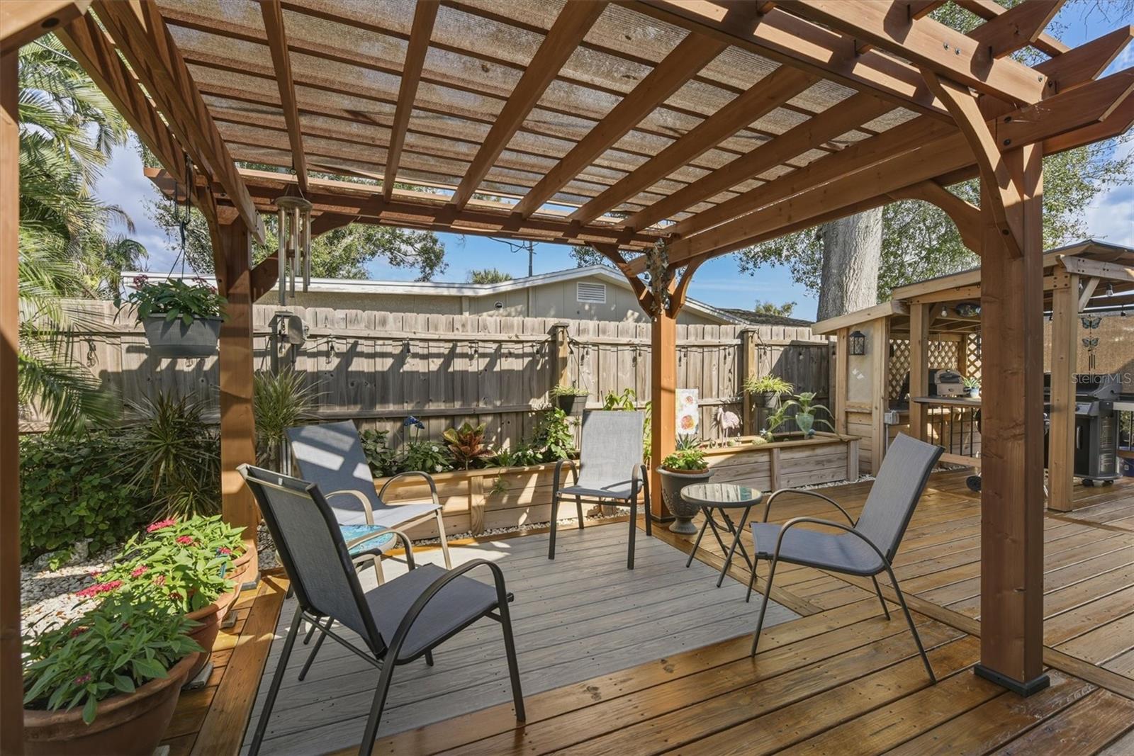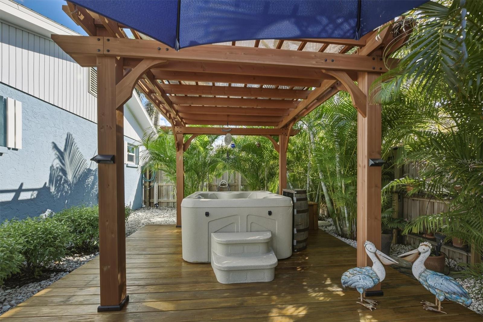 Back on the market! Buyer cancelled before inspections were complete - Welcome to this meticulously updated home where old Florida cottage meets modern comfort, and effortless outdoor living. This stunning property boasts a host of recent renovations, ensuring peace of mind and convenience for its new owners.Step inside to discover a fully remodeled kitchen (2021) with sleek new appliances, perfect for culinary enthusiasts. The main and guest bathrooms have been completely transformed (2023/2024), offering spa-like retreats. Fresh interior paint (2023) enhances the bright, inviting spaces, while whole-home impact windows and doors (2018) provide superior protection and energy efficiency. Upgrades abound: new A/C (2021) with transferable maintenance contract from Bowersox, a new water heater (2024), complete plumbing re-piping (2021), and an upgraded electrical system with all-new wiring and generator connections (2021), including an outdoor cabinet ready for your whole-house generator. An alarm system (2021) adds an extra layer of security.Outside, the magic truly unfolds. A new roof covers the home, lanai, and shed (2025, with transferable warranty), complemented by fresh exterior paint (2025). The enclosed lanai features a convenient counter area with sink and cabinetry, ideal for entertaining. Relax in the hot tub/spa under a beautiful pergola with sail fabric (pump and blower replaced 2024), or gather under additional pergolas shading the outdoor eating area and kitchen/grilling zone. All wood decking has been refinished with new stain/oil (2025), and a new irrigation system (2025) keeps the fantastic front and back landscaping lush. Landscape lighting highlights the beauty after dark, while a rainwater capture system, new water pump and filtration, and an outdoor potting/planting area with storage and bench promote sustainable living. The insulated shed (2024/2025) is a standout, complete with A/C, electricity, cabinetry, and finished plywood walls and floors--perfect for a workshop or studio.The regularly maintained Septic System with a recent inspection, should add peace of mind for potential new owners.This home is truly move-in ready and with no deed restrictions, CDD's or HOA, is perfect for your permanent home or rental opportunity. Embrace the Florida lifestyle in this oasis of updates and serenity!
