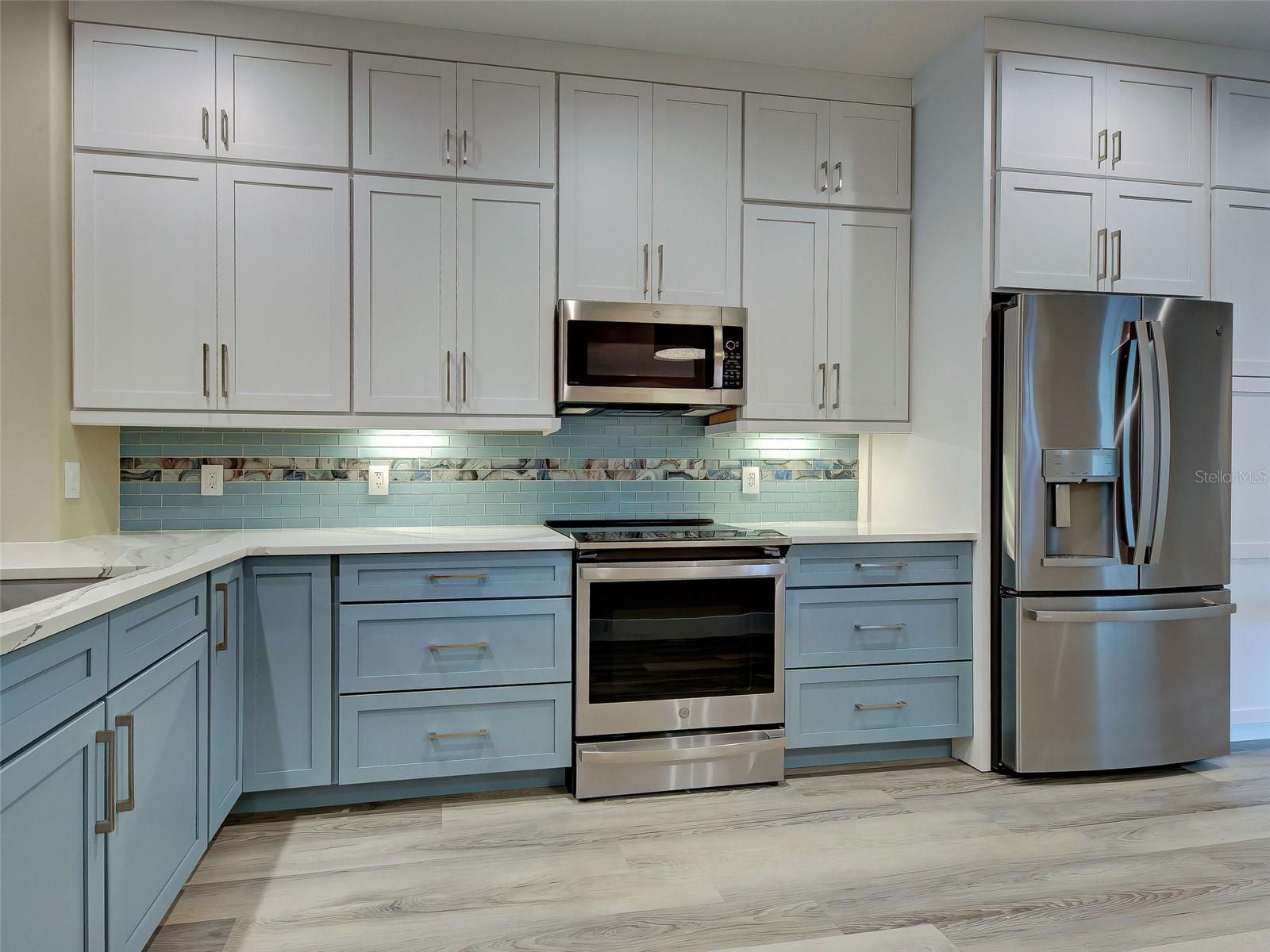NEW YEAR! NEW HOME! Completely Remodeled Standout Villa with Golf Course Views in Pelican Pointe! Why wait or renovate when you can move right in? This exquisitely remodeled 2-bedroom, 2-bath villa offers a rare combination of designer finishes, major upgrades, and peaceful golf course views--overlooking the 11th tee--within the highly sought-after Pelican Pointe Golf & Country Club. Inside, luxury vinyl plank flooring creates a seamless, contemporary feel throughout. The completely redesigned kitchen (2022) is a true showstopper, featuring soft-close floor-to-ceiling cabinetry, quartz countertops, custom pantry storage, and premium GE Profile appliances, including a state-of-the-art induction range--perfect for both everyday living and entertaining. The open, thoughtfully curated floor plan flows beautifully, maximizing both space and natural light. Both bathrooms have been fully transformed with sleek, spa-inspired finishes, while each of the split bedrooms boast oversized custom walk-in closets offering exceptional storage--an uncommon find in villa living. This home shines beyond the surface with significant, peace-of-mind upgrades rarely found at this price point: New roof & New Washer and Dryer (2023) New impact rated windows and exterior doors (2022) Entire home re-plumbed (2021). Additional features include a whole-home water softener, extended lanai with custom tile for relaxed outdoor living, fresh exterior paint (2025), and beautifully maintained landscaping for lasting curb appeal. A home warranty is included for additional peace of mind! Located in one of Venice's most desirable gated communities, Pelican Pointe offers 27 holes of championship golf (with optional membership), an active clubhouse with restaurant, fitness center, tennis and pickleball courts, resort-style pool, library, and a vibrant social calendar. This is a rare opportunity to own a truly move-in-ready, fully updated villa in a premier country club setting--without the hassle of renovations.