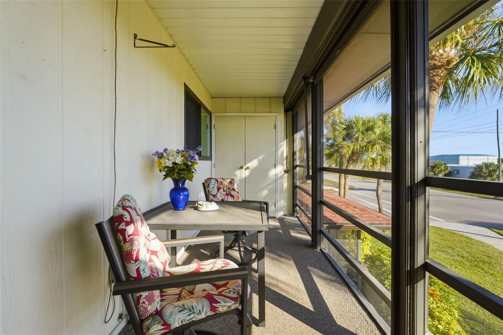 Now is your opportunity to own this second floor TURN-KEY FURNISHED condo located on the beautiful island of Venice! Situated less than half a mile from the popular Legacy Bike Trail and Intracoastal Waterway, exactly one mile to Venice Beach, and just a short few minutes' drive to the vibrant historic downtown hub of Venice Ave full of local shopping, restaurants, and bars, this location can't be beat. The condos at Glenwood Manor enjoy reasonable Condo fees that include cable, internet, ground maintenance, exterior maintenance, reserves for future paint and roof replacement, building insurance, water, sewer, and trash. There is also a community clubhouse and pool. Inside the unit you will have peace of mind with a newer A/C unit (2021), all new PGT Hurricane Impact windows and sliders (2022), and even a brand-new roof (2024). With the new HVAC and new impact windows, this unit is extremely energy efficient, resulting in a very low electric bill. This two-bedroom condo features new luxury vinyl floors that were installed in 2024. The kitchen is filled with light with a window over the sink and a convenient pass-through allows for a more open feel in the unit. The living room enjoys a new slider that leads to the large screened-in lanai. The lanai features storm shutters that roll down at the push of a button or turn of a crank. There is a large storage closet with a personal in-unit washer and dryer. Back inside you will find a large primary bedroom, with en-suite bathroom featuring an updated vanity top and fixtures with a walk-in shower, and a large walk-in closet. On the front of the unit there is a generous sized second bedroom with extra storage and a second full bathroom that has been updated with new vanity countertop and fixtures. This unit also comes with a deeded parking space. Living on the island of Venice offers endless opportunities with tons of area shopping, fantastic locally owned restaurants, a weekly farmers' market, and a calendar full of local events such as live music, craft fairs, and so much more! Just down the street from the famous Sharky's on the Pier, enjoy excellent local seafood and a beachfront sunset every single night if you like. If you have been dreaming of living in Florida and you are looking for your slice of coastal paradise, set up a private showing today!