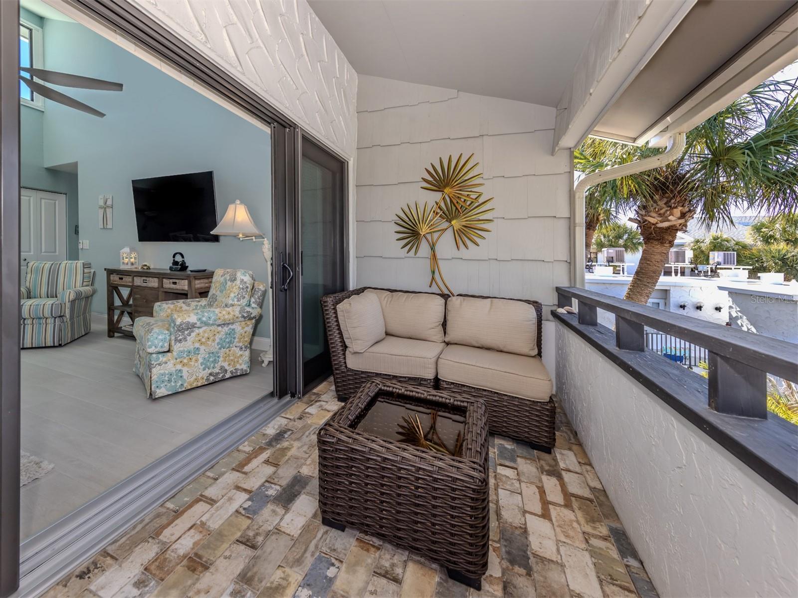 Fantastic view and a real WOW condo! You will love the view from this gorgeous condo, looking from your lanai straight out to the Gulf, a beautiful way to greet each perfect morning and evening in Paradise! The sellers have taken care of all the most important items in your "Tree House". Hurricane sliders and windows throughout for peace of mind. Newer kitchen with stainless appliances and gorgeous granite, complete with a waterfall at end of counter. The remodel was done so thoughtfully with cabinets and storage galore. This is an end unit so the great room is awash with light from the sliders to the vaulted ceilings, while the celestial window gives a daytime glow to the great room and will allow a peak at the moon at night. There are plantation shutters at the doors and windows for privacy and once again they allow you to control the amount of light you want to welcome in your condo. This condo was remodeled from front to back, bathrooms, floors, doors, windows. The furnishings are staying except for a few items that are reserved. Bahia Vista Gulf is a great complex located on Venice beach, and just a short walk to the Crow's Nest and a one mile walk to a very vibrant downtown. Venice is a gem and so is this condo. Come take a look!