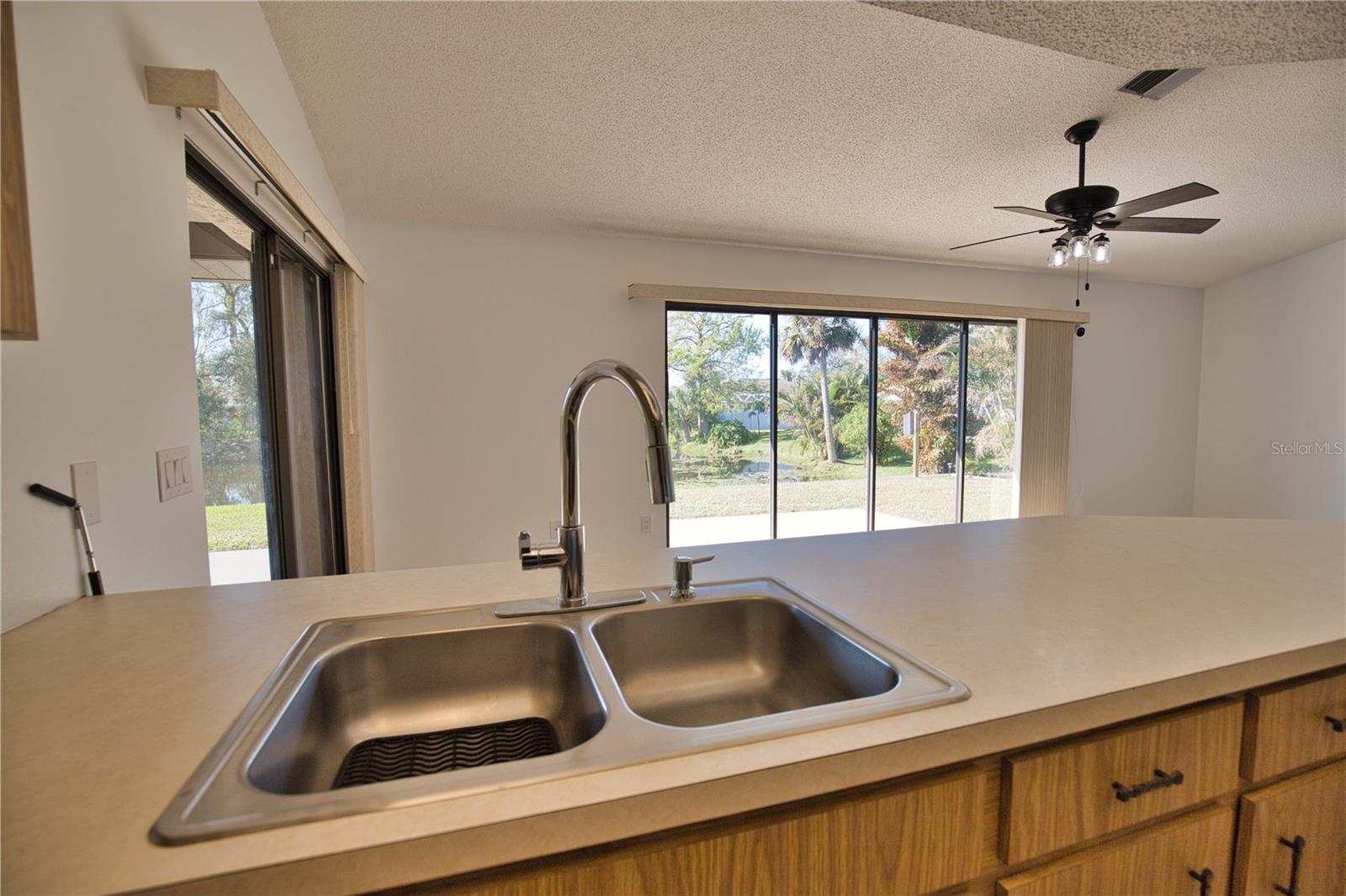 SPOTLESS and READY FOR YOUR TOYS. NO HOA Required, LAKEFRONT, 3 BED/2BATH/2CG SPLIT PLAN HOME ON OVERSIZED 5 LOT (200X100) PARCEL W/ DEEDED BEACH ACCESS in SOUTH VENICE. NEW STANDING SEAM METAL ROOF IN 2025!! If You've been waiting for the right one, This is it! This home has been meticulously maintained and is Move In Ready with a New Roof in 2025. Features include over 1800 sq ft of living area, Laminate flooring in master suite, guest bedrooms & front Living area with vaulted ceilings. Tile flooring in the kitchen and baths. Enjoy lots of natural lighting from the Sliding glass doors in the living room and master suite leading to covered screen porch and a Southwest view overlooking the lake. Enjoy watching the egrets, herons and other birds that frequent the lake throughout the day. You can feel Secure as this block home is equipped with clear lexan, removable hurricane shutters and has no damage from previous storms. You can find further comfort in knowing that the home itself is NOT in a flood zone and does NOT require flood insurance by most lenders. Have big toys? You'll have plenty of room for them on the remaining 120+/- ft of lot that extends to the corner. Don't miss this unique opportunity to own this large parcel and lovely home. Schedule a showing today!!
