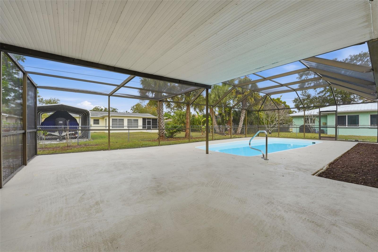 One or more photo(s) has been virtually staged. This is the spot! Score the winning combination with this rare blend of everyday comfort and exceptional convenience in one of Venice's few non-Deed restricted communities. Updated and move-in ready, this 1,682 sq ft Venice East POOL home is situated in the preferred X Flood Zone with a 2021 roof, modern tile plank flooring throughout, and a versatile bonus room--all with no HOA or CDD fees, and on public utilities! The open-concept living area provides endless design possiblities and includes a cozy fireplace. Sliders give direct access to the massive screened lanai and pool, adding an extra 1288 sq. feet of prime outdoor living space you can enjoy year-round. The primary suite also has sliders to the lanai, as well as a walk-in closet and ensuite bath, with the second bedroom and bath positioned on the opposite side of the home for maximum privacy. The additional bonus room at the back of the home would make a great office/den or guest space. The kitchen offers stainless steel appliances and ample workspace, flowing easily into the main living and dining areas. The laundry room is inside with a utility sink, and leads to the 2-car garage. Major improvements include a new roof in 2021, water heater 2020, updated electrical panel, plumbing relined in 2017. The central location provides immediate access to the Venice East Executive Golf Course, located just one mile away. Within a seven-mile radius, residents can reach Historic Downtown Venice, Downtown Wellen, the new Costco, CoolToday Park, and beautiful Gulf Coast beaches. With major infrastructure updated and no recurring HOA or CDD fees, this property offers a compelling cost of ownership and a strategic entry point into the Venice pool home market. Whether used as a primary residence, a high-performing rental, or a seasonal retreat, this home this home is a smart, high-value opportunity to own a private pool residence in a prime Venice location. It's an ideal fit for anyone looking for a well-priced home without giving up quality or lifestyle.