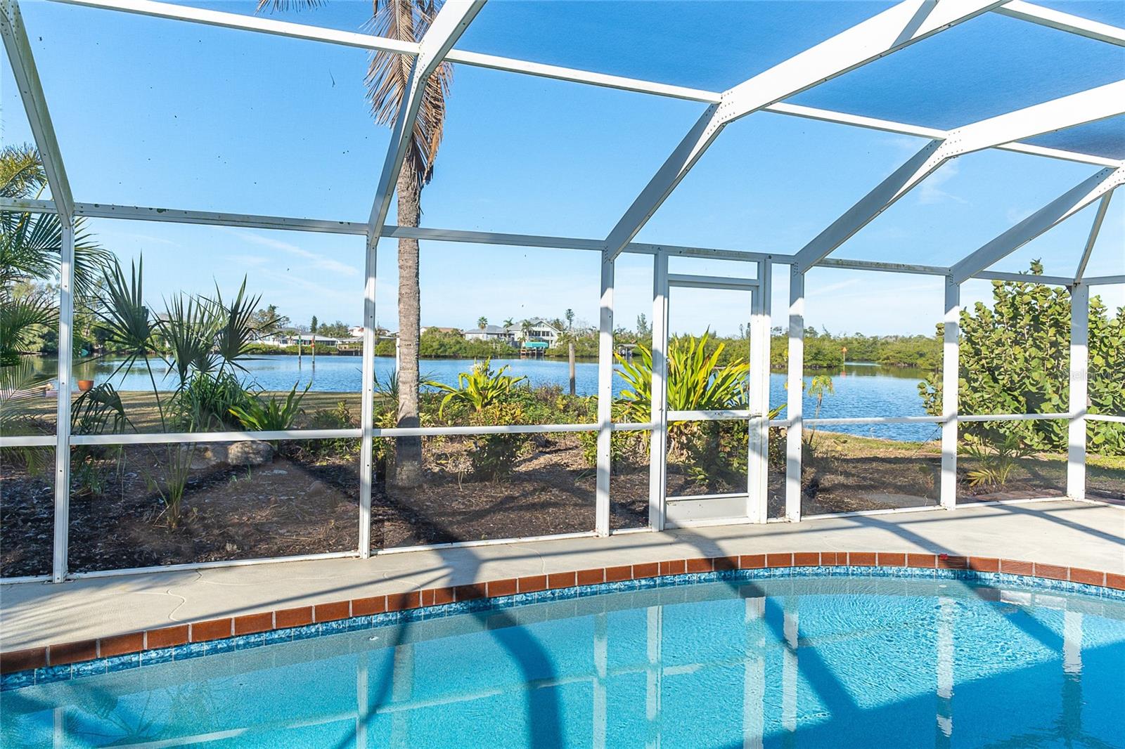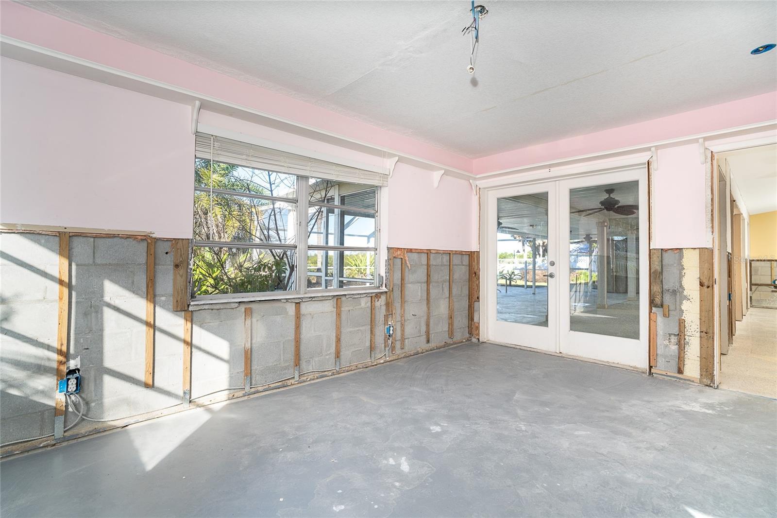 MOTIVATED SELLER - Fully remediated flood-damaged Gottfried Creek waterfront home offered AS IS. Featuring a Metal Roof, and brand new gunite in-ground freshwater pool 30' x 13' Kidney Shaped which was installed Post Fall 2024 Hurricanes. The main residence offers the room dimensions for four (4) bedrooms and two (2) full baths. A spacious Great Room, Florida Room, Patio, Screened in pool area and oversized two (2) car garage. A separate entrance, self contained Mother-In-Law suite is livable and contains a bedroom, bathroom, Kitchenette, and private laundry - ideal for extended family, guests or owner occupancy while the renovations are completed. Enjoy 215' of seawall frontage on Gottfried Creek. The brick paver waterside outdoor deck provides the perfect setting to watch Manatees and Dolphins glide by or take in the breathtaking evening sunsets over the water.