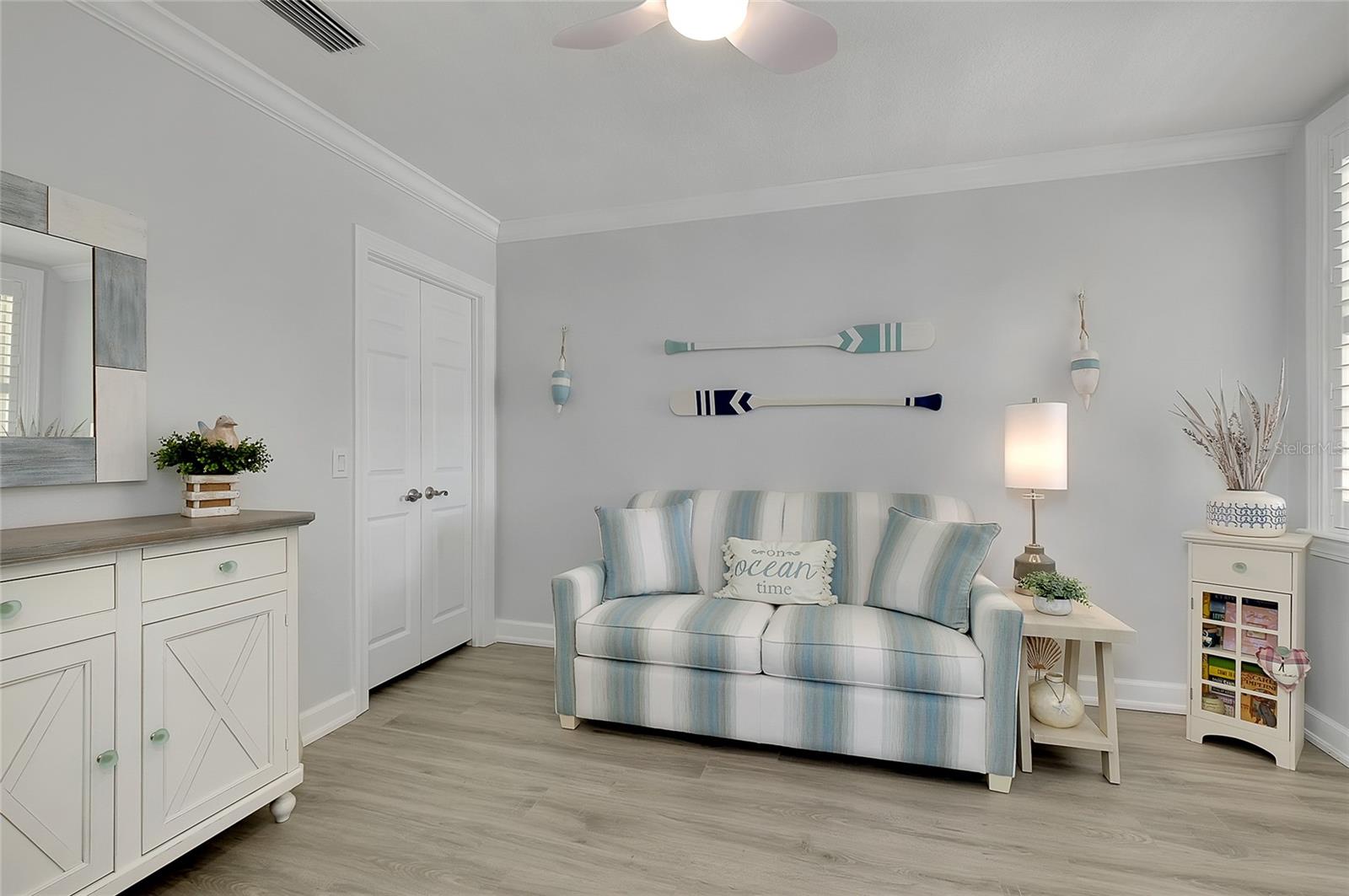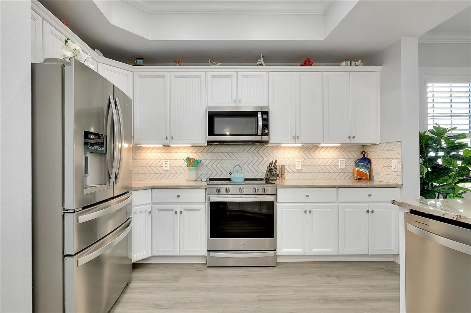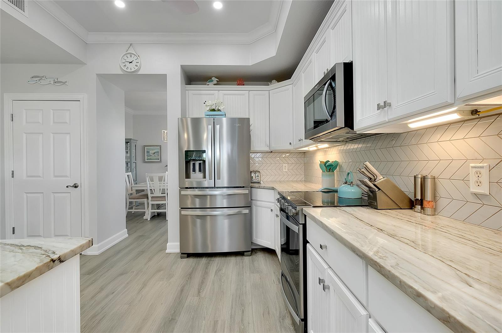 ENJOY THE INTERACTIVE TOUR OF THIS BEAUTIFULLY REMODELED HAMMOCKS PRESERVE CONDOMINIUM, OFFERING ONE OF THE MOST PEACEFUL AND SCENIC SETTINGS IN THE COMMUNITY. Located on the desirable 3rd floor of Building 10501, this end-unit residence enjoys expansive waterfront and nature preserve views over Lemon Creek, creating a tranquil and private retreat with abundant natural light from additional end-unit windows. The well-designed floorplan features three bedrooms, two full bathrooms plus a half bath, interior laundry, formal dining, and an open-concept layout with a spacious kitchen flowing into the large great room. A covered porch extends the living space and is ideal for enjoying the peaceful preserve and water views.The residence was completely remodeled in 2022-2023 with approximately $125,000 in tasteful upgrades that modernize the interior while maintaining a relaxed coastal feel. Improvements include new flooring throughout, crown molding in every room, fresh interior paint, plantation shutters, upgraded Quartzite countertops, tiled kitchen backsplash, upgraded stainless steel appliance package with slide-in stove, renovated bathrooms with upgraded vanities, dual primary vanity, garden tub, separate walk-in shower and toilet room, and a primary walk-in closet with custom built-ins and storage. The interior laundry room includes a utility sink and full-size washer and dryer. Recent improvements also include a 2025 water heater and 2016 A/C system.All existing windows are high impact, and the association has approved the installation of new hurricane-rated replacement windows, excluding the front entry and den window, with completion planned by the end of summer 2026. Unique to only a limited number of units, this residence includes two assigned covered parking spaces and a private storage unit. The building's concrete construction with poured concrete between floors provides exceptional sound insulation and comfort.Hammocks Preserve is a gated, deed-restricted community offering a low-maintenance, resort-style lifestyle with a heated beach-entry pool and spa, fitness center, tennis and pickleball courts, clubhouse with gathering spaces and billiards, boardwalks, nature trails, and a private fishing pier on Lemon Creek. The HOA covers cable TV, high-speed internet, water, trash, building insurance, roof repair and replacement, exterior maintenance, landscaping, pool service, and professional management. Ideally located on the Cape Haze peninsula just minutes from Englewood Beach, Boca Grande, Cape Haze Marina, shopping, and dining, this move-in-ready home is ideal for full-time living or a refined coastal retreat.
