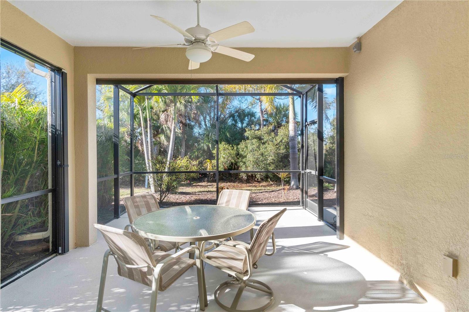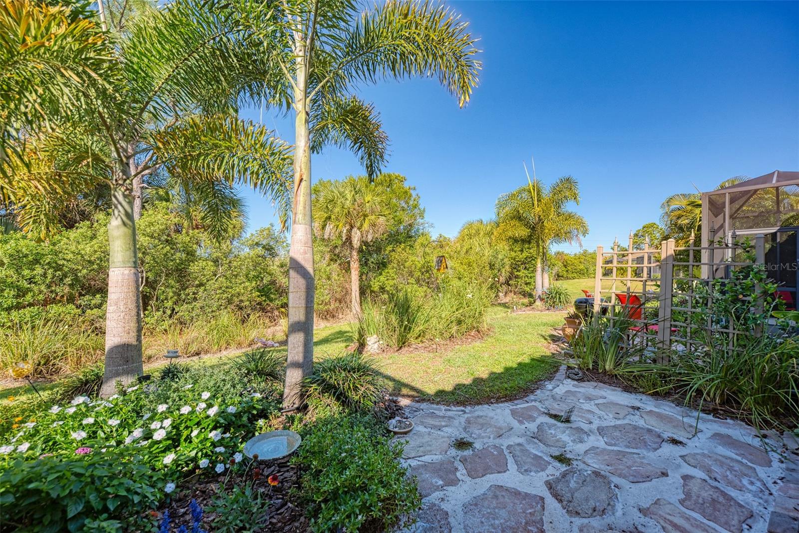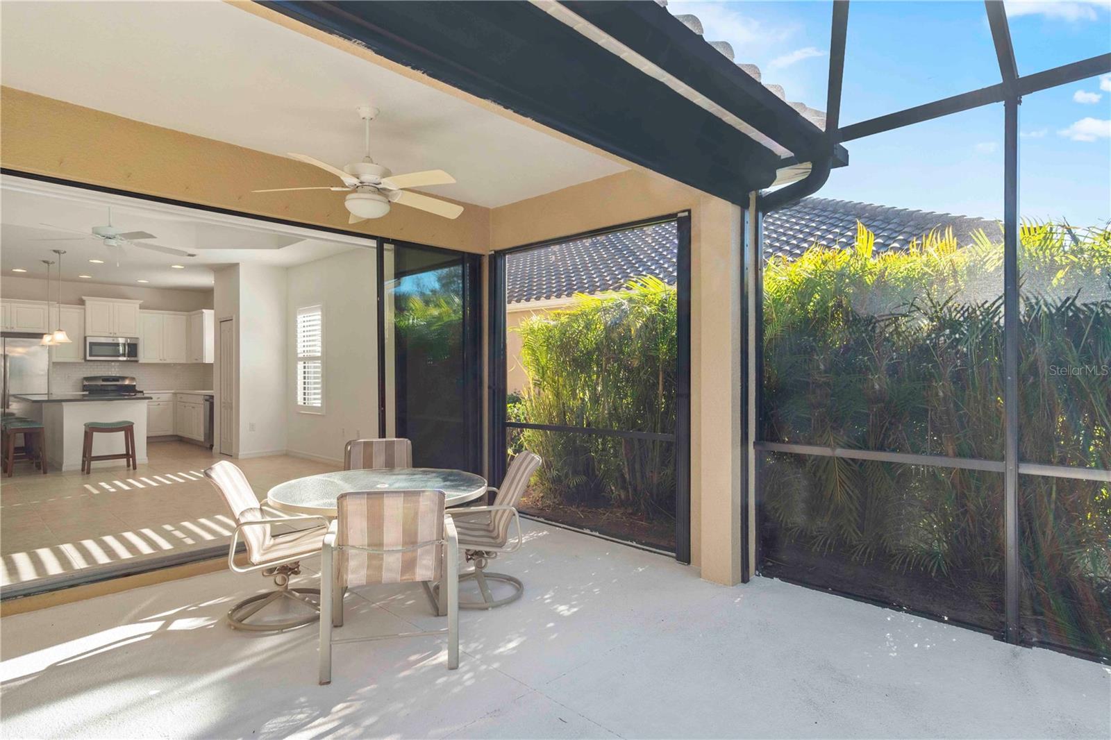 Just listed in the highly desirable Grand Palm community. This 2016 Crystal Sand model villa is maintenance-assisted and truly move-in ready. The light and airy open-concept floor plan features ceramic tile throughout and is thoughtfully designed for both comfort and effortless entertaining. The home offers two bedrooms, two baths, a den, a split-floor plan layout, and a two-car garage. The spacious living room and kitchen combination creates an inviting gathering space, enhanced by plantation shutters, a tray ceiling, ceiling fans throughout, and abundant of natural light. Sliding pocket doors open to an extended lanai overlooking tranquil gardens and a natural preserve, providing a peaceful indoor-outdoor living experience. An added courtyard area offers additional outdoor space, ideal for relaxing or entertaining guests. Hurricane shutters provide added peace of mind, along with a privacy screen for evening comfort. Additional upgrades include reverse osmosis, pull out drawers, a whole-house water purification system, a radiant barrier shield in the attic to help keep the attic and garage cooler, and foam insulation added to the exterior concrete block walls for improved energy efficiency. Residents of the Okaloosa neighborhood enjoy a private pool and spa, as well as a BBQ area and seating for social gatherings. Grand Palm's resort-style amenities include three community pools, a social club, the Palm House state-of-the-art fitness center, scenic walking trails, parks, and pickleball courts. This exceptional villa offers the perfect blend of low-maintenance living and the relaxed Florida lifestyle you've been looking for.