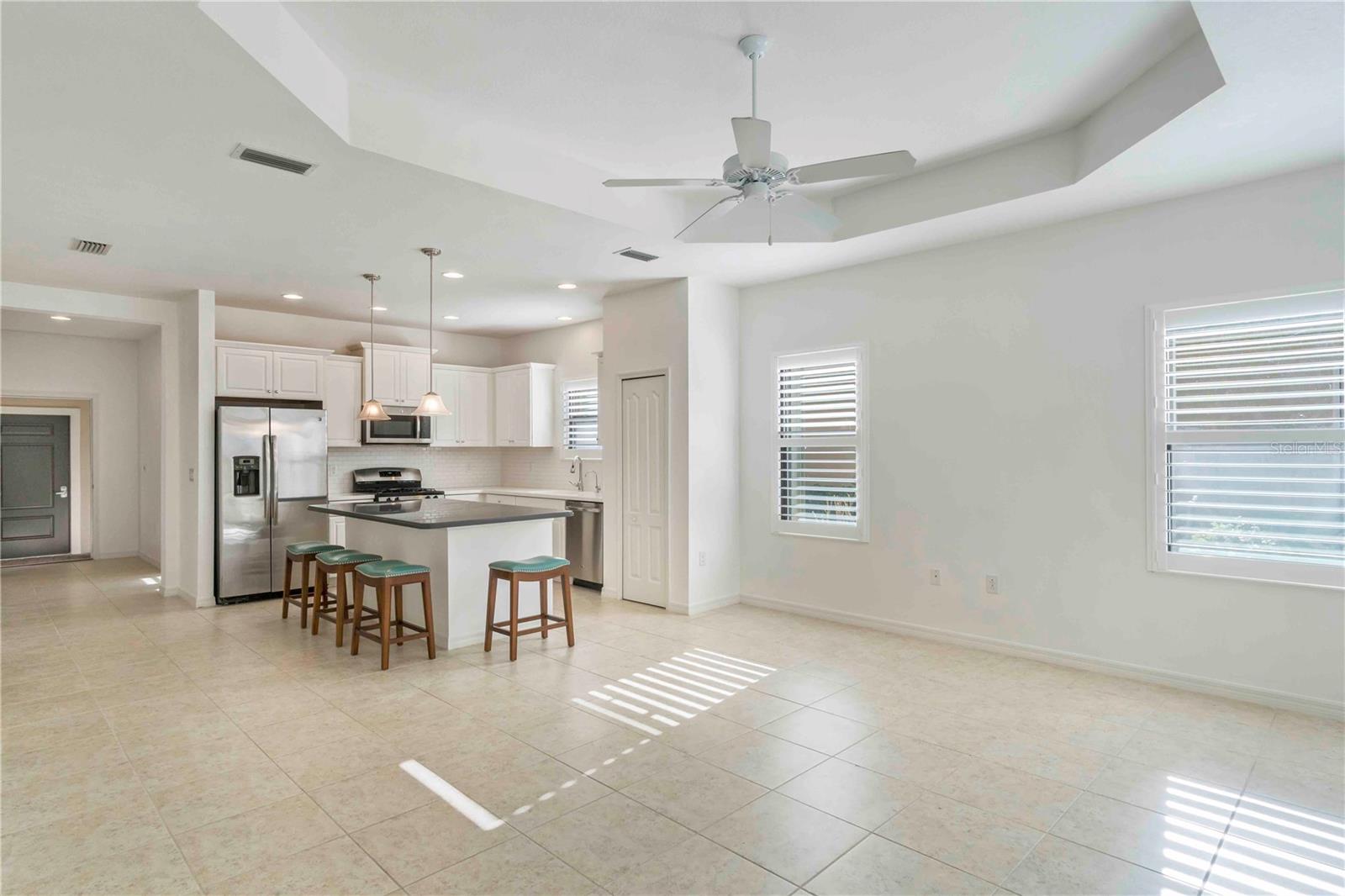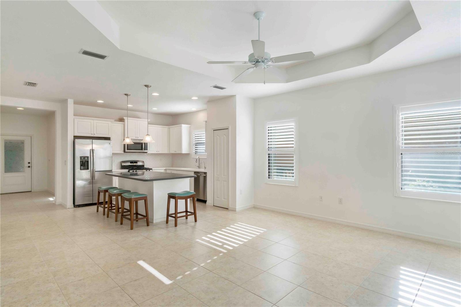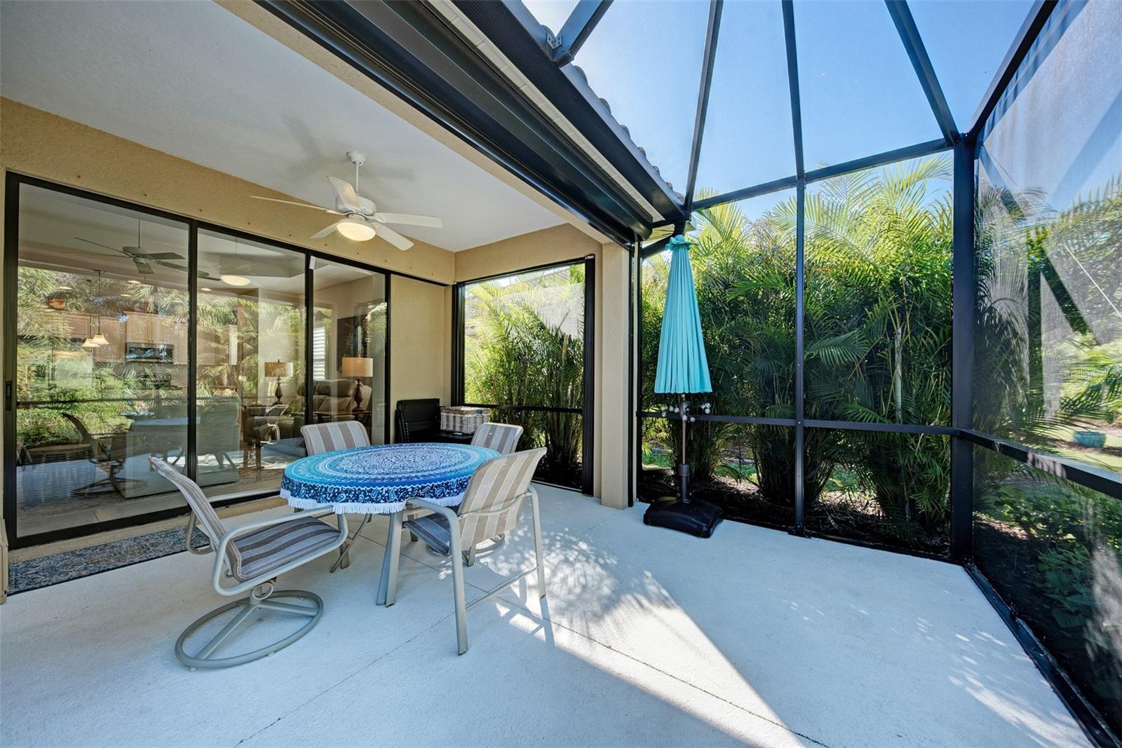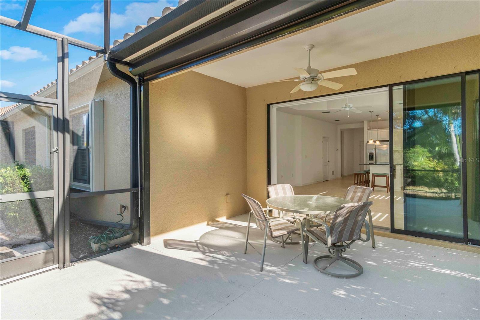 Just listed in the highly desirable Grand Palm community. This 2016 Crystal Sand model villa is maintenance-assisted and truly move-in ready. The light and airy open-concept floor plan features ceramic tile throughout and is thoughtfully designed for both comfort and effortless entertaining. The home offers two bedrooms, two baths, a den, a split-floor plan layout, and a two-car garage. The spacious living room and kitchen combination creates an inviting gathering space, enhanced by plantation shutters, a tray ceiling, ceiling fans throughout, and abundant of natural light. Sliding pocket doors open to an extended lanai overlooking tranquil gardens and a natural preserve, providing a peaceful indoor-outdoor living experience. An added courtyard area offers additional outdoor space, ideal for relaxing or entertaining guests. Hurricane shutters provide added peace of mind, along with a privacy screen for evening comfort. Additional upgrades include reverse osmosis, pull out drawers, a whole-house water purification system, a radiant barrier shield in the attic to help keep the attic and garage cooler, and foam insulation added to the exterior concrete block walls for improved energy efficiency. Residents of the Okaloosa neighborhood enjoy a private pool and spa, as well as a BBQ area and seating for social gatherings. Grand Palm's resort-style amenities include three community pools, a social club, the Palm House state-of-the-art fitness center, scenic walking trails, parks, and pickleball courts. This exceptional villa offers the perfect blend of low-maintenance living and the relaxed Florida lifestyle you've been looking for.