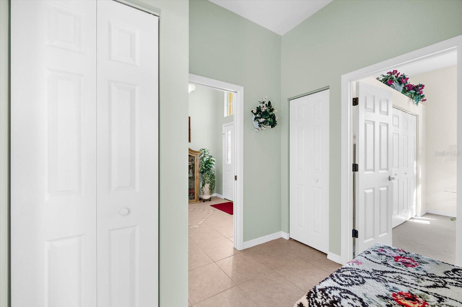 Custom built by J&J Homes, known for solid block construction and thoughtful design, this expansive 4-bedroom, 2-bath residence with an optional flex room sits on an oversized ?-acre lot with plenty of room for a pool and exceptional indoor-outdoor living. Flooded with natural light, the home feels bright and welcoming throughout. Soaring 12-foot ceilings, crown molding, and an open dining-living combination create an immediate sense of volume and comfort.The massive primary suite is a true retreat, featuring 12-foot ceilings, a large walk-in closet, and generous proportions rarely found. Storage is abundant throughout--double closets in every bedroom, linen closets in both bathrooms, additional hallway closets in the guest wing, and a laundry room complete with a utility sink and double closet.The newly remodeled kitchen features beautiful quartz countertops, abundant cabinetry, above- and below-cabinet lighting, and generous prep space--ideal for entertaining or everyday living. Natural light pours into the kitchen and main living areas, illuminating every space and enhancing the home's open, airy feel.Enjoy both front and rear covered porches, offering inviting spaces to gather, relax, and entertain while taking advantage of desirable east and western exposure for morning light and evening sunsets. Recent upgrades include impact windows (2022), a new tile roof (2022), HVAC (2019), hot water heater (2023), well pump (2023), and kitchen appliances just 2.5 years old. Accordion shutters on the front and rear doors provide added hurricane protection. A 3-car garage offers ample space with room for overhead storage.Located in Flood Zone X, Lakes of Jacaranda offers a community pool, clubhouse, pickleball courts, scenic walking paths, no CDD fees, and a low annual HOA of approximately $900. All community roads have recently been repaved with no special assessments.This is a home defined by space, smart upgrades, and effortless Florida living. Schedule your private showing today.