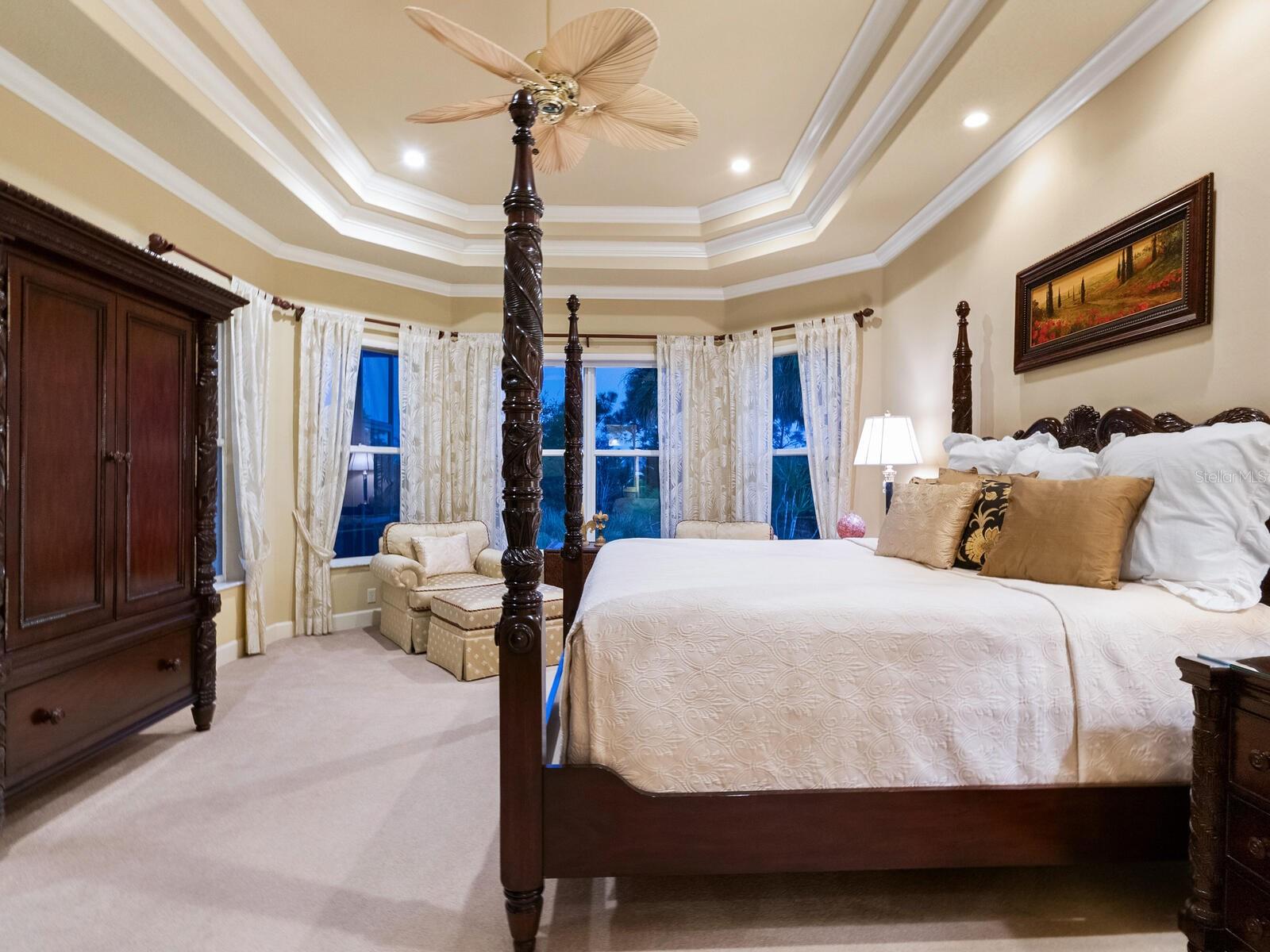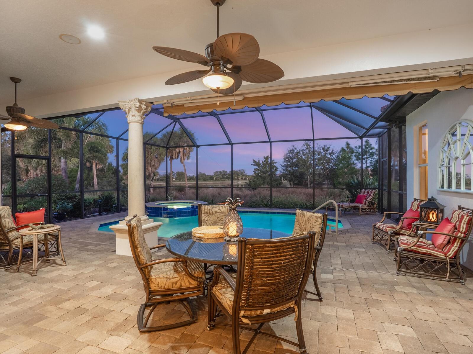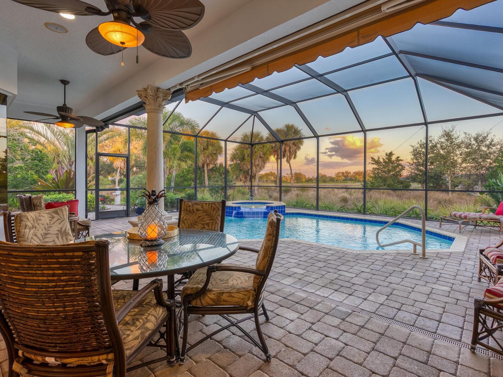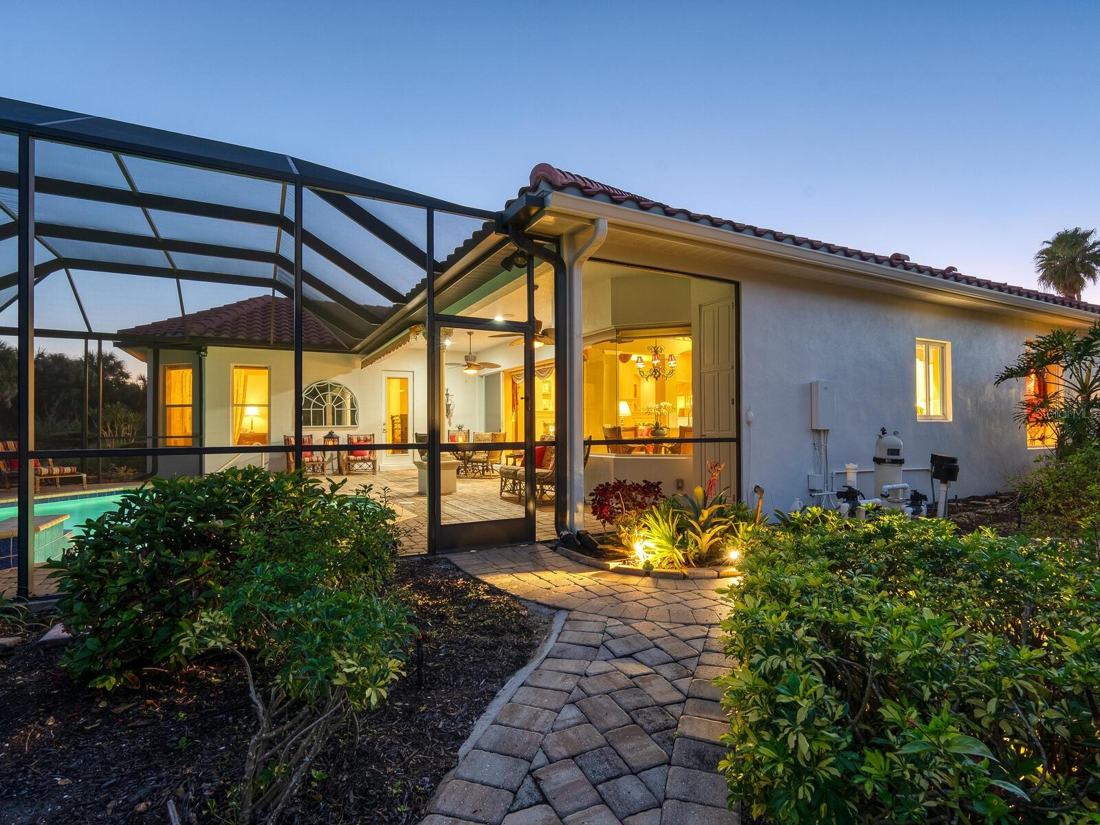 This custom Arthur Rutenberg Bardmoor II is in pristine condition and maintenance free! The dramatic Tuscan exterior has actual stone appointments. As you enter through the double leaded glass doors, you are greeted by grand archways, tray and waffle ceilings and detailed built-ins. An ideally sized home with great room, formal dining room, three bedrooms and three baths (den or fourth bedroom). The gourmet kitchen with stainless appliances, quartz, custom cabinetry and a pass-thru wet bar open to grand views through aquarium windows in the breakfast nook. The den/library boasts hardwood flooring and detailed moldings. The large primary bedroom has a double tray ceiling, expansive bay window and private entry to the pool. The spacious paver outdoor living area has a Jacuzzi and pool overlooking a private preserve with grand lake views. The oversized garage has a separate door for your golf cart. Feel secure with the new barrel tile roof. The Country Club offers golf, tennis, pickleball, restaurant, bar and many activities, phenomenal dog park and close to the beach! Soon, Boca Royale's gates will open in Wellen Park for dining, shopping and the ballpark.