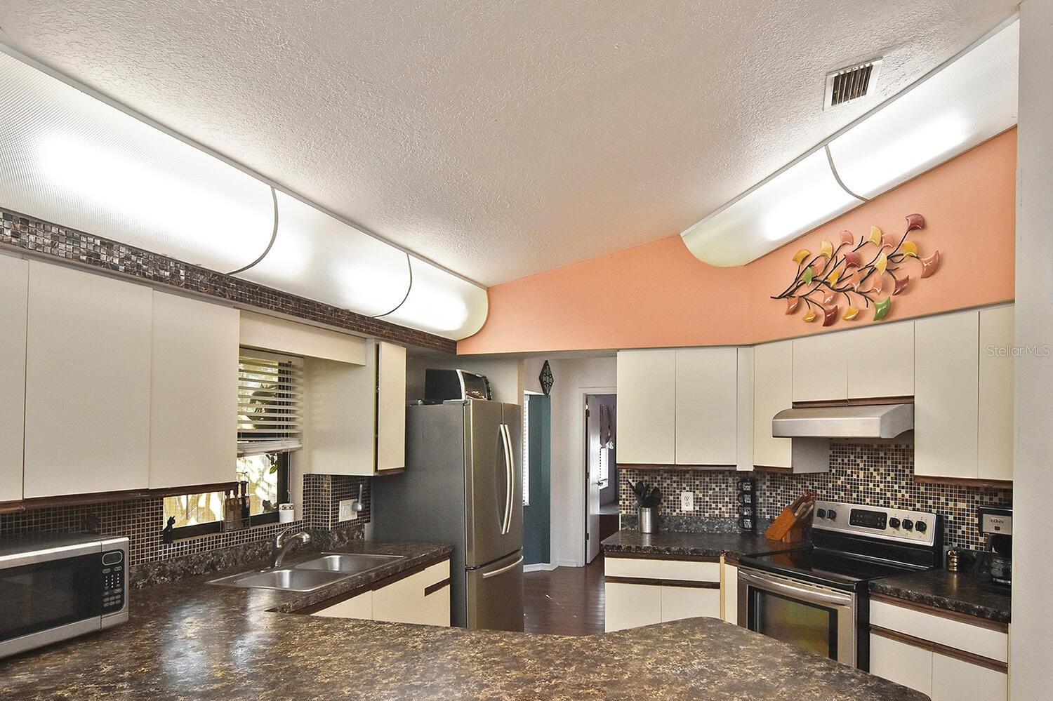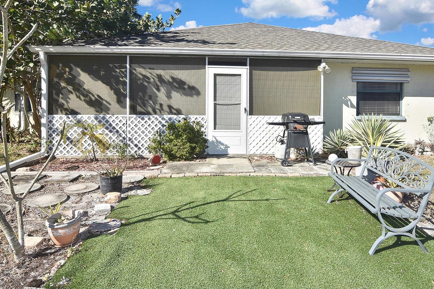 Centrally located and close to shopping, dining, and everyday conveniences, this home offers a functional split floor plan with vaulted ceilings in the kitchen, living room, and primary bedroom. An additional eating space off the kitchen can easily serve as a family room, home office, or flex space.BEDROOMS & BATHS: The split layout provides privacy, with two secondary bedrooms separated by a full bath and a pocket door that can close off this wing from the main living area. The primary suite features two walk-in closets and an en-suite bath with dual sinks and a walk-in shower.OUTDOOR LIVING: Enjoy a nicely landscaped yard and a spacious screened lanai with bamboo blinds--ideal for relaxing or entertaining. Two storage sheds convey, including a 10x12 and a 6x8.UPDATES & MECHANICALS: Important big-ticket updates include a new A/C (2024), roof replacement (2022), whole-house repipe (2016), and water heater (2016). 240V Hard wire for hot tub on lanai.LOCATION BONUS: Located directly across the street from Larry Taylor Kiwanis Park and Playground, offering green space and recreational amenities just steps from your front door.