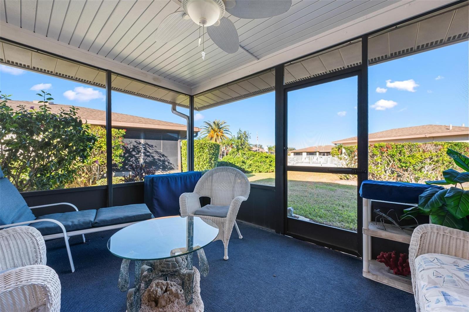 Welcome to your dream villa in the vibrant 55+ community of Vivienda West! This standalone villa with excellent curb appeal, is located on the outskirts of the neighborhood, giving the owner their own private mailbox and easy access to Shamrock. This bright home features two elegant suites for privacy. A formal dining room flows into a cozy living area, perfect for gatherings. Arrange the large family room, a perfect space for games, lounging or crafting depending on your interests. Off the family room are both of the two exterior screened areas - one is set for a garden or pet play area. The kitchen boasts new Corian counter tops, which blend beautifully with the cabinetry, a breakfast bar for a quick snack as well as a dinette area. Check out the awesome pantry for all your essentials and more! The second screened lanai is also accessible thru the dinette and offers a place to enjoy the morning sunrise or curl up with a good book and relax. The laundry center is in the garage along with a fold-up workshop area and a ton of overhead storage. See if you can find the built-in wall safe! The villa is maintenance free, so enjoy your short walk to the club house and pool and leave the work to others. Lots of social activities are offered if you wish to mingle! Vivienda West is located close to shopping, restaurants, the beach and Historic downtown Venice! Come and call this your new home today!