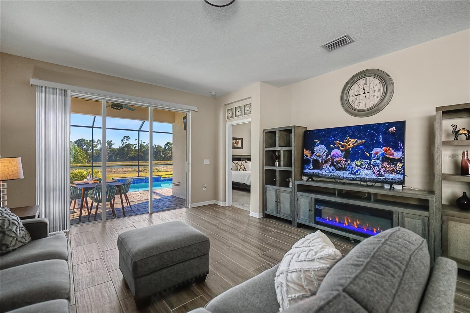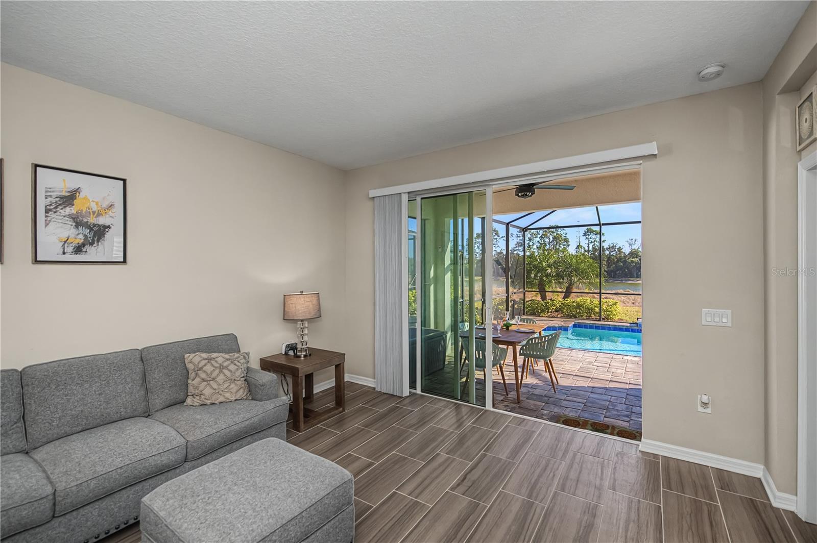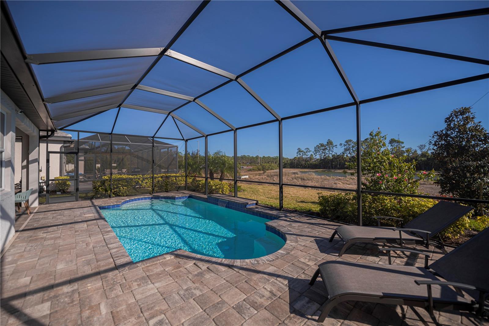 Experience Florida living in this exceptional 4-bedroom, 3-bath POOL home within the gated Oasis community of Wellen Park and is thoughtfully designed to display elegance, privacy, and effortless indoor-outdoor living. From the moment you enter, you're captivated by tranquil views of a shimmering blue pool, a peaceful pond, and a lush preserve backdrop, creating a truly serene setting.At the heart of the home, the kitchen stuns with light-gray cabinetry, granite countertops, and an oversized island with sink, perfect for gathering and entertaining. The kitchen includes all stainless-steel appliances such as wall oven, microwave, dishwasher, and a sleek range hood. The primary suite is impressively spacious and enhanced by a flexible bonus area that could be used for lounging area. The spa-like primary bath showcases his and her sinks, luxurious soaking tub, glass-enclosed shower.This home's layout is thoughtfully layed out for privacy. Two guest bedrooms are tucked into their own wing off the kitchen with a shared bath, while the fourth bedroom at the front of the home features its own bathroom, making it perfect for guests, a den, or a home office.The outdoor living space offers ample room for sunbathing and entertaining, along with a convenient outdoor shower for rinsing off after a swim. Residents of Oasis enjoy exclusive access to amenities such as a heated community pool, pickleball courts, community clubhouse, scenic walking paths, and the peace of mind of a gated community.Oasis is a maintenance-free, gated community with secure access to walking trails, dog park, community pool, and pickle ball courts. It is located in the highly sought after Wellen Park which is close by Gulf beaches, shopping dining, entertainment, schools, medical facilities, Atlanta Braves Training Facilities, and the new Wellen Park Costco. Don't miss the opportunity to make it yours!