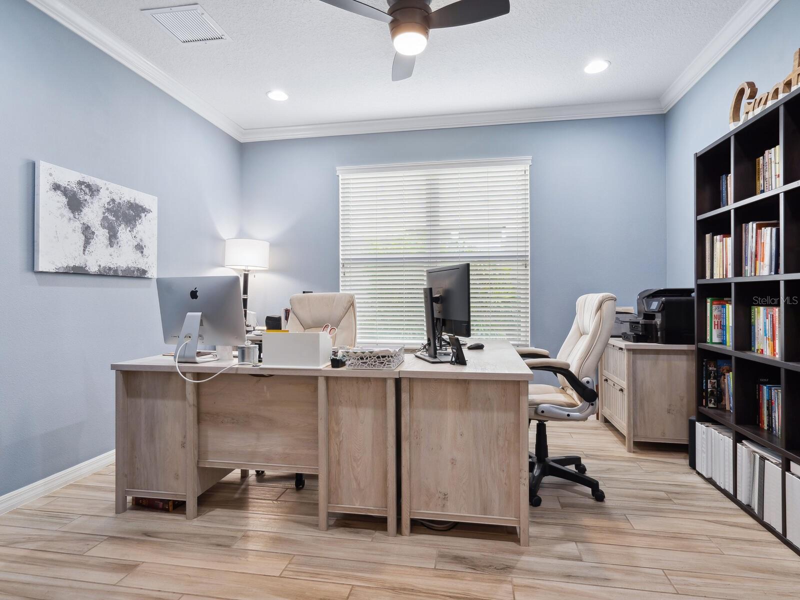 Welcome to the Eden model, perfectly positioned on a beautifully landscaped lakefront lot in the highly sought-after, family-friendly community of Arbor Lakes on Palmer Ranch. This exceptional residence offers 4 BR, 3.5 BA, a private office, flex room, loft, and 3,487 square feet of thoughtfully designed living space with over $100,000 in upgrades, blending elegance, comfort, and functionality for everyday living and effortless entertaining. The backyard is truly a private retreat, highlighted by a custom 14x28 saltwater pool with a sundeck entry, built-in table, in-pool sitting area, two water bowl features, and a 24-inch sheer descent waterfall. The outdoor kitchen is already plumbed and ready for design, while newly added privacy landscaping and a wrought iron fence with two gates provide both beauty and peace of mind for children and pets. The moment you enter, stunning wood-plank tile flooring leads you into the heart of the home where a gourmet chef's kitchen awaits, complete with 42" cabinetry, a large center island, built-in oven and microwave, stainless steel appliances, under-cabinet lighting, tile backsplash, pantry, and an inviting eat-in space. Sliders open seamlessly to the enclosed pool area, creating the perfect indoor-outdoor flow. The great room features soaring ceilings and a custom fireplace media wall that adds warmth and architectural interest, while the downstairs dining room, office, and flex space provide versatility for working from home and hosting guests. A timeless hardwood staircase leads to the second level where a spacious loft offers additional living space. Upstairs you will find two bedrooms connected by an updated Jack and Jill bathroom, a guest bedroom with its own en-suite bath, and a beautifully designed primary suite featuring a charming second-story porch ideal for morning coffee or evening relaxation. The primary bath includes a soaking tub, walk-in shower, dual vanities, and generous walk-in closets. Additional features include hurricane shutters for the entire home, an in-wall pest control system, and pool door alarms for added safety. Arbor Lakes has low HOA fees and no CDD, residents enjoy resort-style amenities including a pirate playground, community pool and spa, splash park, volleyball and basketball courts, dog park, fishing areas, and a gas fire pit. This home is zoned for top-rated schools, including the new state-of-the-art Skye Ranch K-8 School, and is just 15 minutes from Pine View School for the Gifted. Conveniently located near shopping, dining, downtown Sarasota, and the world-famous beaches of Siesta Key, this property offers not just a home, but an exceptional Florida lifestyle.