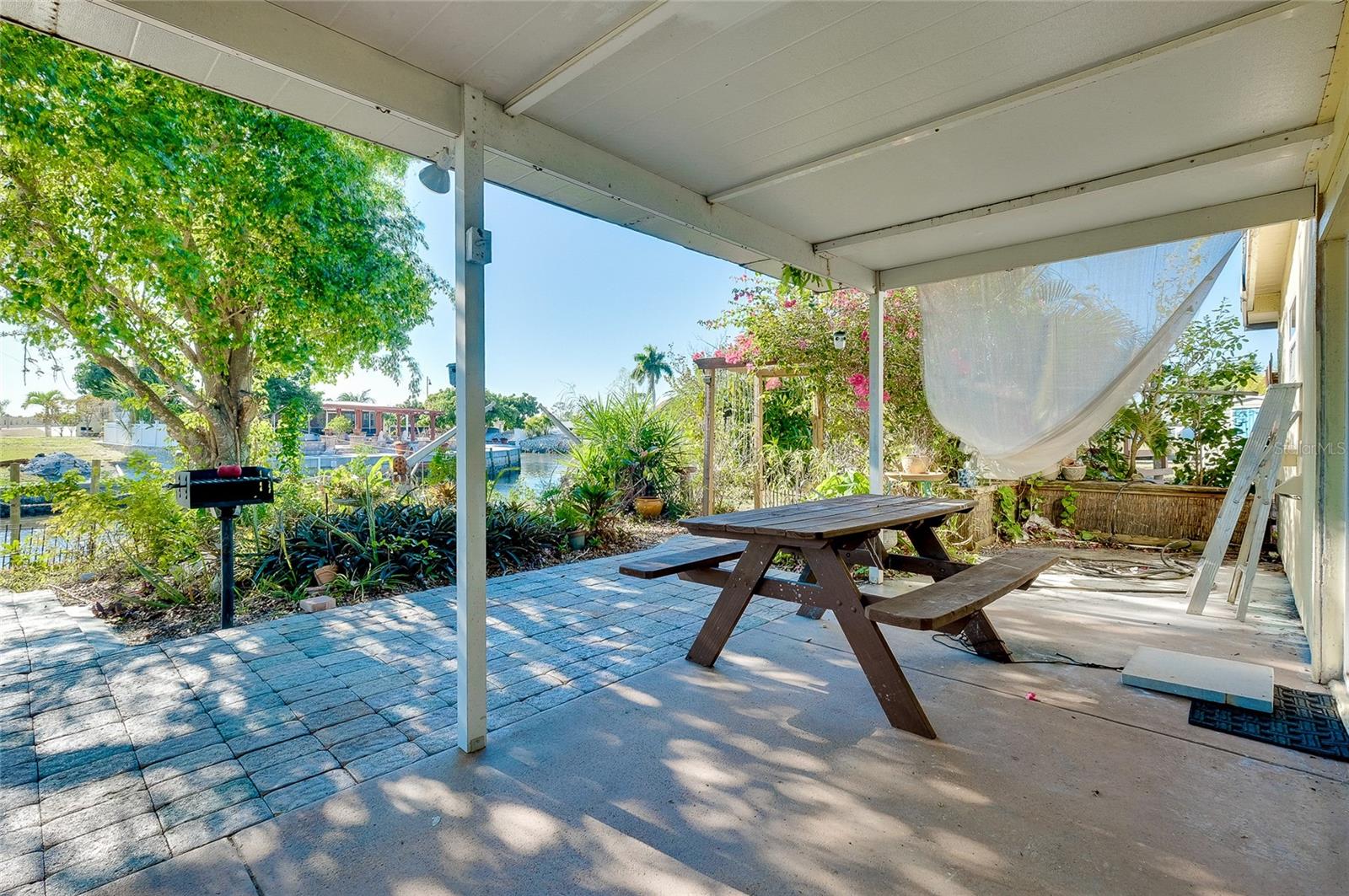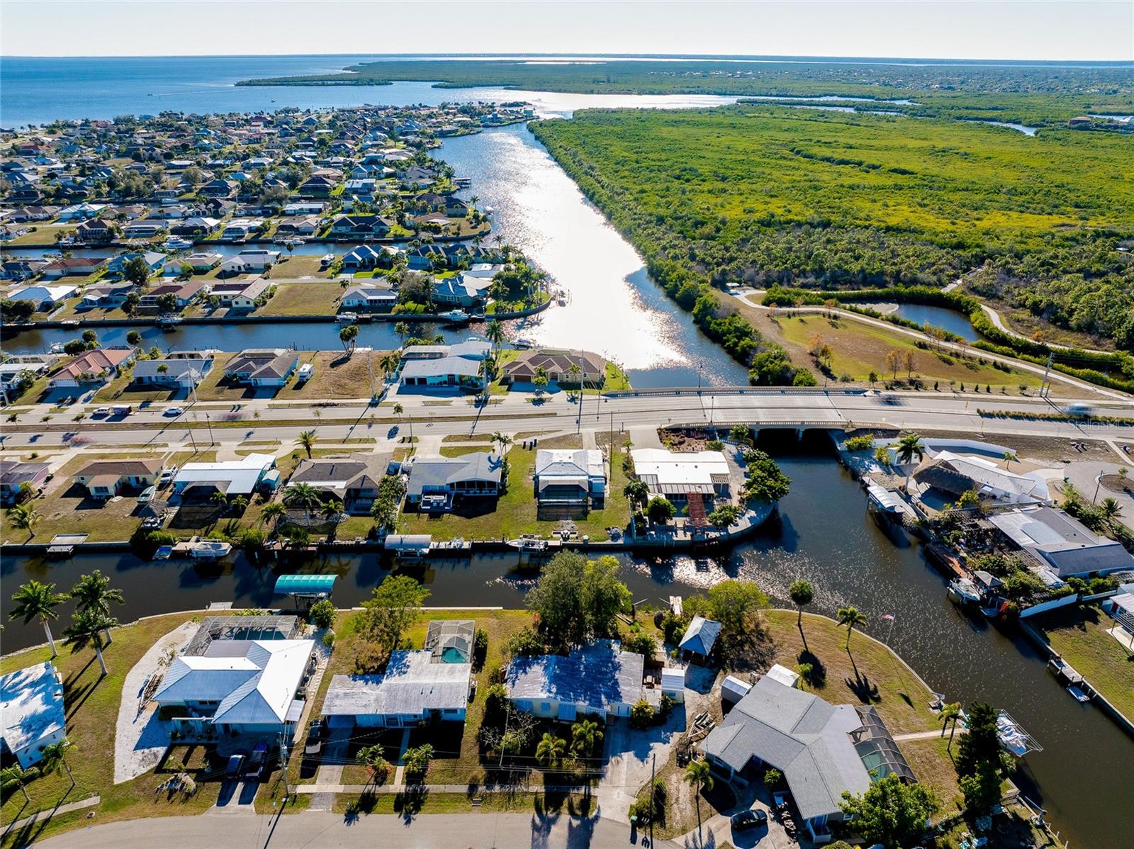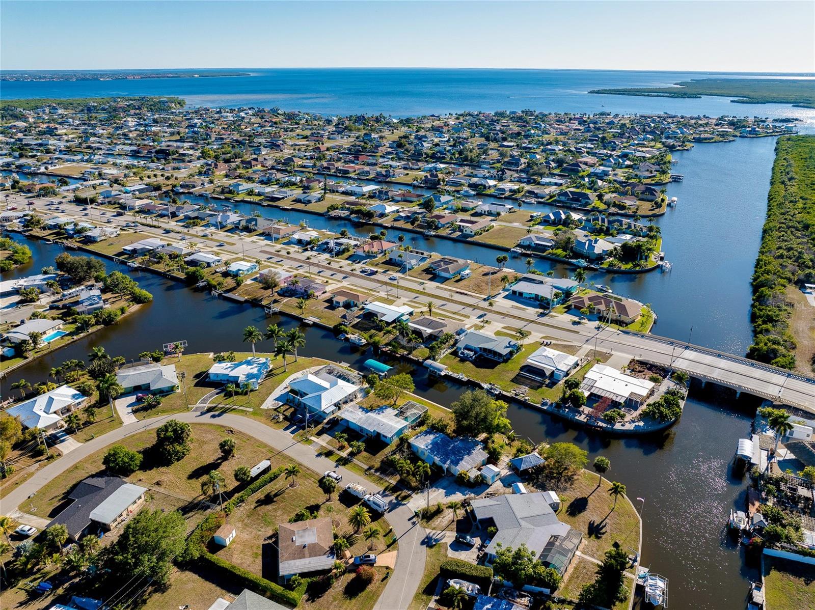 TURNKEY WATERFRONT HOME WITH BONUS MOTHER-IN-LAW SUITE AND QUICK HARBOR ACCESS: Perfectly situated on an oversized, nearly 14,000 square foot pie-shaped waterfront lot with approximately 148 feet of canal frontage and intersecting canal views, this move-in ready residence offers a rare blend of boating access, exceptional outdoor space, privacy, and flexible living options. Whether enjoyed as a single-family home, a multi-generational living setup, or an income-producing opportunity, this waterfront property delivers a unique lifestyle. Located just 0.9 miles from Charlotte Harbor with only one high-clearance bridge, this home provides easy access to open water while maintaining a peaceful and private setting. Showcasing flexibility and opportunity, the property is divided into two living spaces. The main residence features three bedrooms, one bathroom, a large living room, open kitchen, interior laundry room and a bonus Florida room currently configured as a game room, creating additional living and entertaining space. This area is fully equipped with a foosball table, two stand-up arcade systems, a dartboard, and board games, making it ideal for gatherings or relaxed evenings at home. The additional separate mother-in-law suite with its own private entrance affords a studio-style space including a bedroom, full-size bathroom, kitchenette, dining area, living space, and its own laundry closet. The kitchenette is equipped with a range, refrigerator, and microwave. This setup is perfect for visiting guests, extended family, or as a separate rental opportunity. The suite also offers future potential to be reconnected to the main dwelling if desired and features a brand-new split unit air conditioning system. The outdoor living space is truly exceptional, offering a tranquil backyard designed to maximize the waterfront setting and privacy. Features include a large covered outdoor 12x27 tiki style gazebo with metal roof, outdoor grilling stations, a kayak launch, and two hot tubs--one located off the main residence and another on the mother-in-law suite porch. Mature trees enhance the natural setting, and a separate storage shed adds additional functionality. Offered fully furnished and turnkey, the home is ready for immediate use as a primary residence, second home, or rental investment. Recent updates include new washer/dryers (with 3 year warranties), flooring, interior paint, fixtures, 2025 water heater, and a fully updated electrical system with a new 200-amp service panel. This coveted location puts you minutes from boating, fishing, and water sports on Charlotte Harbor, with marinas nearby including Charlotte Harbor Yacht Club, Fishermen's Village Marina, and Safe Harbor Burnt Store offering slip access and services. Explore local waterfront dining, shopping, and entertainment at Fishermen's Village in Punta Gorda. For beach days, world-class sands like Englewood Beach, Stump Pass Beach State Park, Manasota Key, and Gasparilla Island State Park are a short scenic drive west, offering swimming, shelling, boating, and sunshine along the Gulf Coast. The area is also known for outstanding golf, premier fishing waters, and easy access to restaurants, shopping, and community amenities throughout Port Charlotte, Punta Gorda, and nearby coastal towns.
