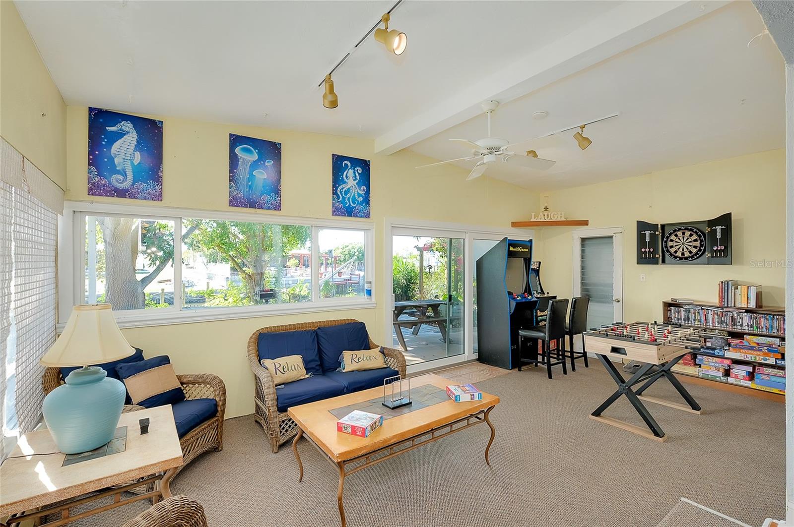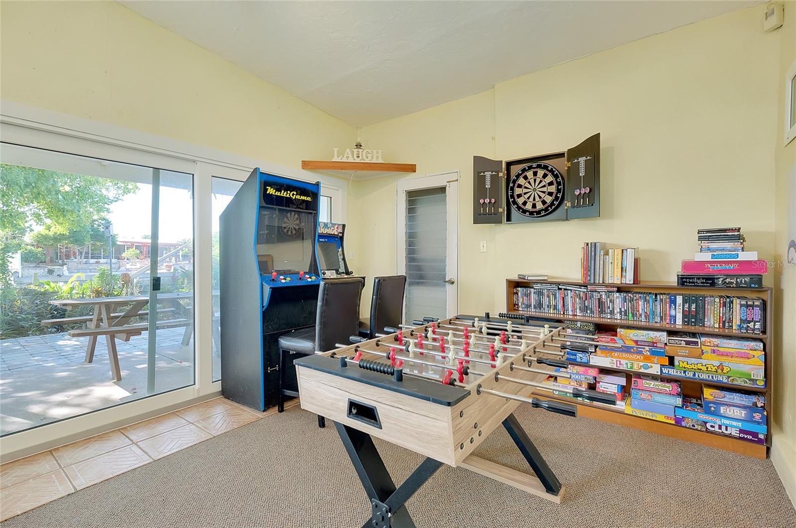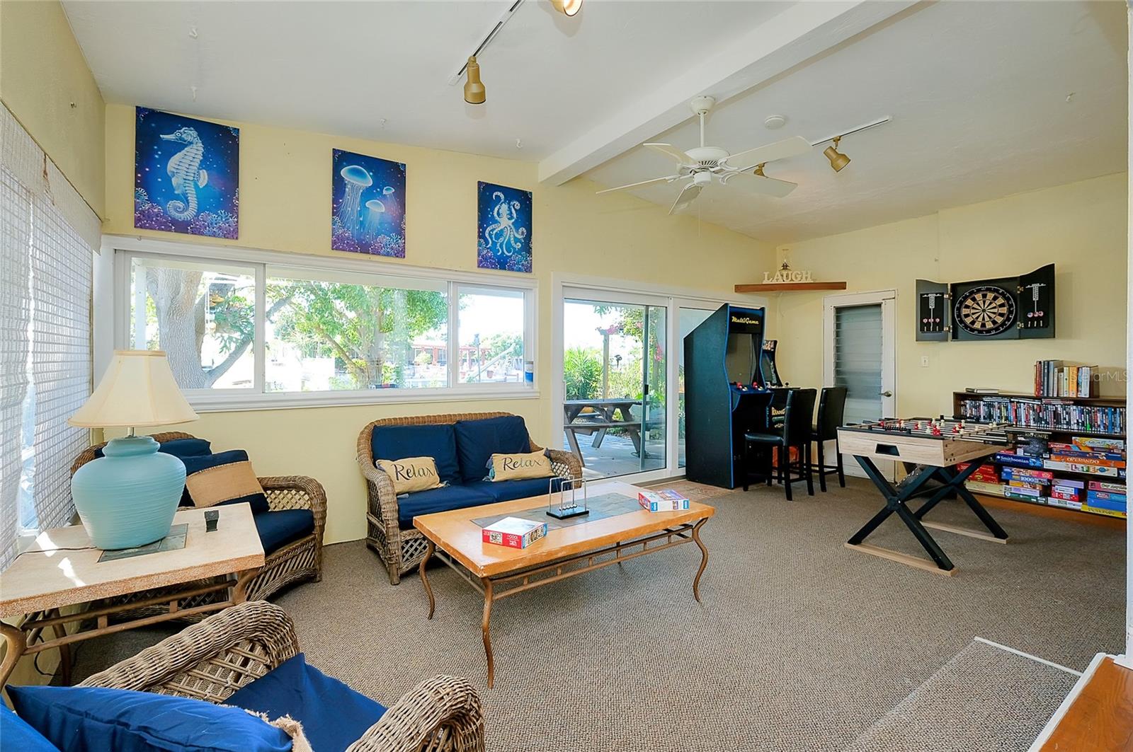 TURNKEY WATERFRONT HOME WITH BONUS MOTHER-IN-LAW SUITE AND QUICK HARBOR ACCESS: Perfectly situated on an oversized, nearly 14,000 square foot pie-shaped waterfront lot with approximately 148 feet of canal frontage and intersecting canal views, this move-in ready residence offers a rare blend of boating access, exceptional outdoor space, privacy, and flexible living options. Whether enjoyed as a single-family home, a multi-generational living setup, or an income-producing opportunity, this waterfront property delivers a unique lifestyle. Located just 0.9 miles from Charlotte Harbor with only one high-clearance bridge, this home provides easy access to open water while maintaining a peaceful and private setting. Showcasing flexibility and opportunity, the property is divided into two living spaces. The main residence features three bedrooms, one bathroom, a large living room, open kitchen, interior laundry room and a bonus Florida room currently configured as a game room, creating additional living and entertaining space. This area is fully equipped with a foosball table, two stand-up arcade systems, a dartboard, and board games, making it ideal for gatherings or relaxed evenings at home. The additional separate mother-in-law suite with its own private entrance affords a studio-style space including a bedroom, full-size bathroom, kitchenette, dining area, living space, and its own laundry closet. The kitchenette is equipped with a range, refrigerator, and microwave. This setup is perfect for visiting guests, extended family, or as a separate rental opportunity. The suite also offers future potential to be reconnected to the main dwelling if desired and features a brand-new split unit air conditioning system. The outdoor living space is truly exceptional, offering a tranquil backyard designed to maximize the waterfront setting and privacy. Features include a large covered outdoor 12x27 tiki style gazebo with metal roof, outdoor grilling stations, a kayak launch, and two hot tubs--one located off the main residence and another on the mother-in-law suite porch. Mature trees enhance the natural setting, and a separate storage shed adds additional functionality. Offered fully furnished and turnkey, the home is ready for immediate use as a primary residence, second home, or rental investment. Recent updates include new washer/dryers (with 3 year warranties), flooring, interior paint, fixtures, 2025 water heater, and a fully updated electrical system with a new 200-amp service panel. This coveted location puts you minutes from boating, fishing, and water sports on Charlotte Harbor, with marinas nearby including Charlotte Harbor Yacht Club, Fishermen's Village Marina, and Safe Harbor Burnt Store offering slip access and services. Explore local waterfront dining, shopping, and entertainment at Fishermen's Village in Punta Gorda. For beach days, world-class sands like Englewood Beach, Stump Pass Beach State Park, Manasota Key, and Gasparilla Island State Park are a short scenic drive west, offering swimming, shelling, boating, and sunshine along the Gulf Coast. The area is also known for outstanding golf, premier fishing waters, and easy access to restaurants, shopping, and community amenities throughout Port Charlotte, Punta Gorda, and nearby coastal towns.