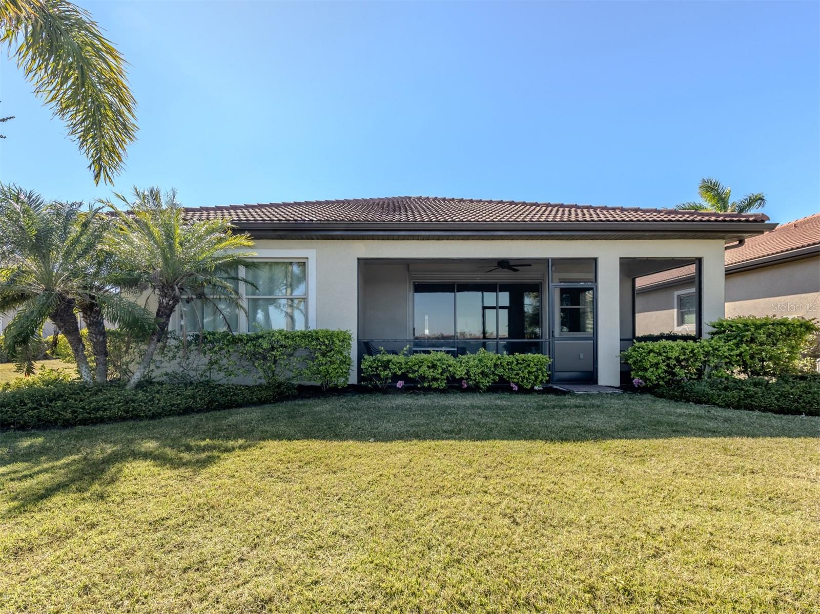 Exterior: Hurricane Shutters, Rain Gutters, Sidewalk, Sliding Doors