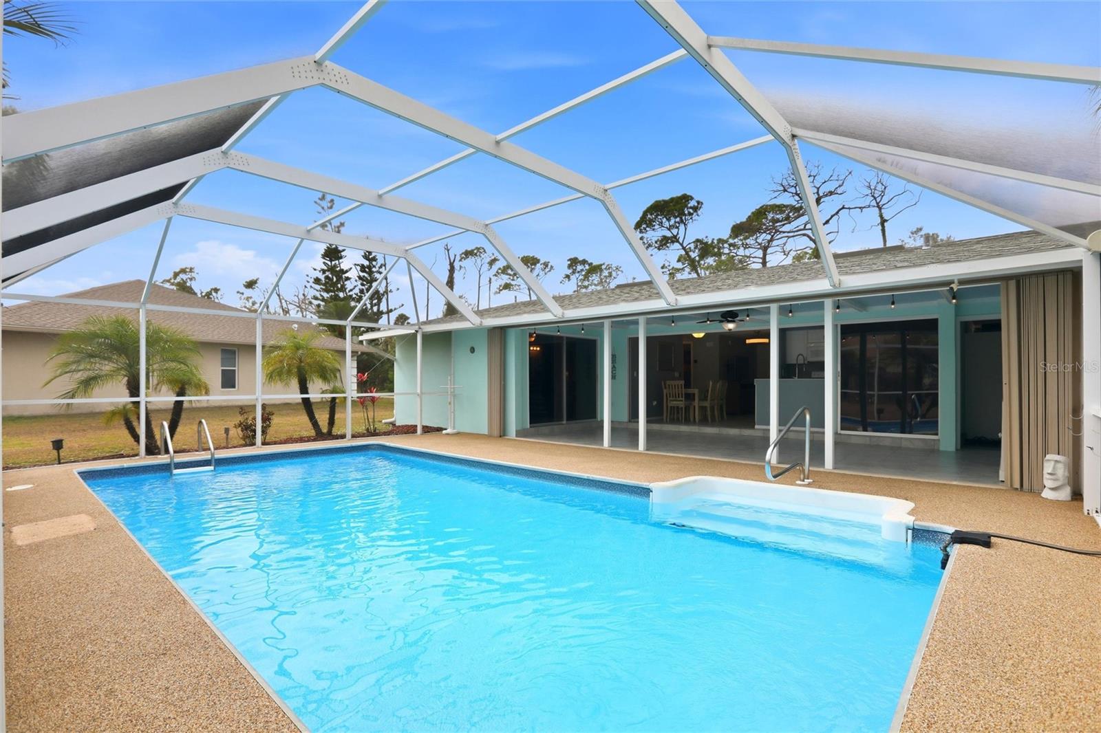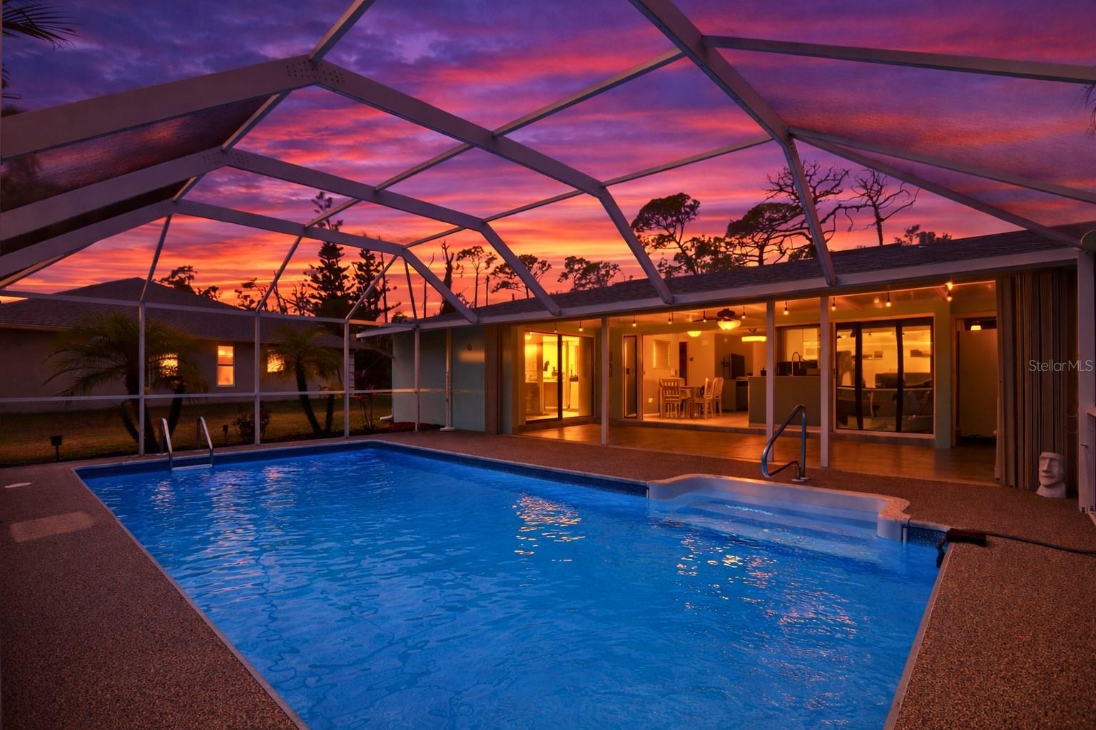 Outside, the screened pool enclosure, hosting a sparkling keeps pool days low-maintenance and enjoyable, and recent improvements make it even more turnkey, including new pool screens (2025) and a newer pool liner. While the recently painted exterior and lanai adds beautiful curb appeal. Practical upgrades support easy-living, including kitchen updates (2015), new roof (2022), A/C (2018), water heater (2017), pool pump (2019), interior paint (2020-2021). Add to it easy to use attached accordion hurricane shutters, an installed Arlo security system, city water and sewer, and the freedom of no HOA or CDD fees, and you've got a simple, comfortable home base designed for the Florida lifestyle--whether you're here for the season or here to stay.
