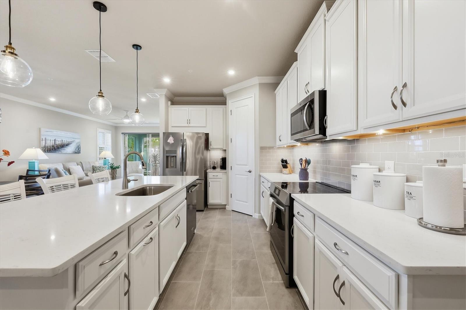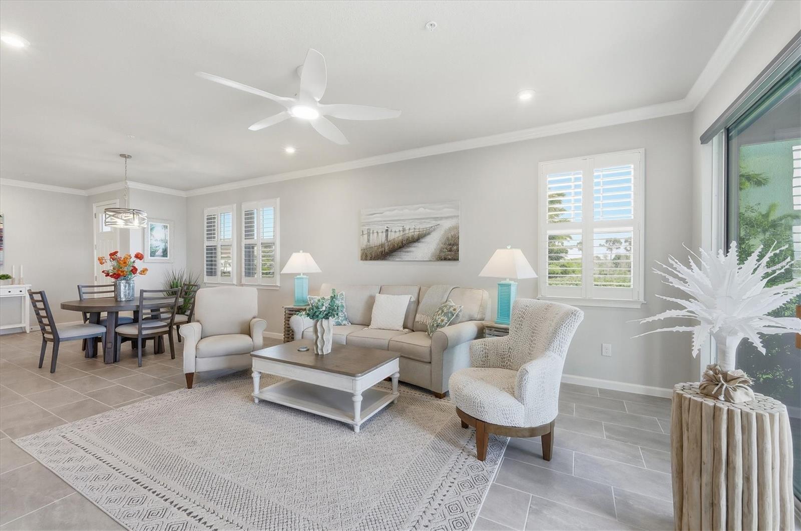 Welcome to your dream home in the newly established gated community Sunstone, located in one of the top ranked master planned communities, Wellen Park! This 3 bedroom, 2 bathroom, flex room end-unit villa is packed with thoughtful upgrades designed for both style and peace of mind. The kitchen features an induction stove, upgraded appliances, under cabinet lighting and extra pendant lighting over the kitchen island, delivering efficiency and modern performance for everyday living and entertaining. A whole-house surge protector adds an extra layer of protection, while the epoxy-finished garage floor offers a sleek, durable space for storage or hobbies. The common area features crown molding throughout that also flows into the primary bedroom.Step outside to enjoy the south facing patio equipped with hurricane screens--perfect for year-round comfort. Inside, plantation shutters throughout the home add timeless elegance, privacy, and natural light control. Every detail has been carefully chosen to create a move-in-ready home that blends function, comfort, and quality.This gated community offers a wealth of amenities to enhance your lifestyle. Located in the center of the community, and a short walk from your next home, you will have access to a resort style pool, pickleball courts, fitness center, club house, dog park and green space. Sunstone also has a full time lifestyle director who plans community events. If you are looking to spend more time with friends and family at the pool, this community is maintenance free so you no longer have to cut your own grass!Conveniently located in the heart of Wellen Park, this home is less than 2 miles from Downtown Wellen Park which features brand new shops, restaurants, live music, weekly farmers market and monthly signature events. If you are a beachgoer, this property is 20 minutes away from 3 pristine Florida beaches! Wellen Park offers A-rated schools including Prodigy Early Learning, Primrose School, College Preparatory Academy at Wellen Park, and the State College of Florida. State of the art Wellen Park High School is currently under construction and opening for the 2026-2027 school year. Sarasota County has plans to add a future K thru 8 school to the campus. With numerous hospitals and medical providers nearby Wellen Park, and even more to come, you can be assured quality healthcare is close to home including Sarasota Memorial Hospital, HCA Florida Wellen Park, Millennium Physician Group, and more. Located in Flood Zone X so flood insurance is not required. Schedule your private showing today!