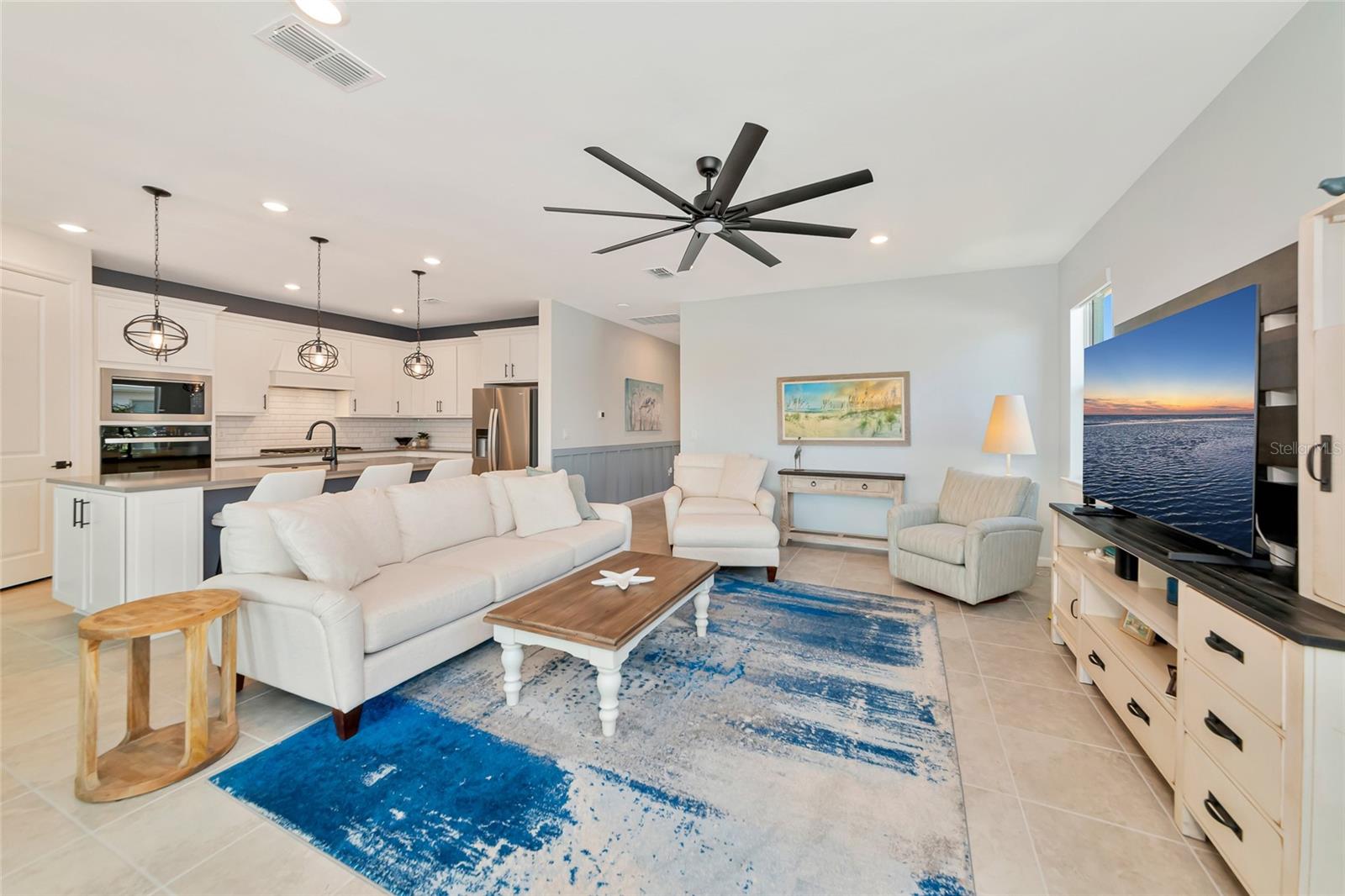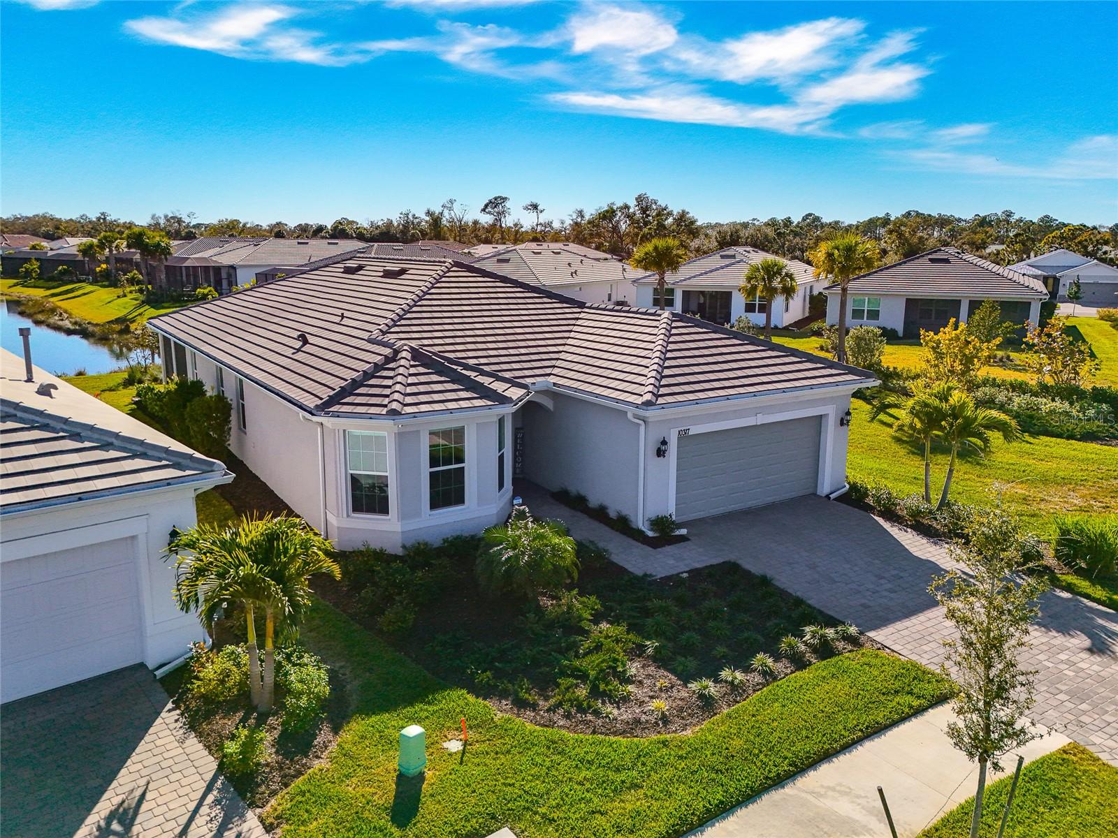 Welcome to this beautifully appointed 3 bedroom 3 bath Mystique model home located ON THE WATER in the highly desirable Beachwalk by Manasota Key community. ONLY 2.5 MILES TO THE BEACH. This thoughtfully designed home offers a bright, open-concept layout that blends comfort, style, and everyday functionality ideal for embracing the Florida lifestyle. The spacious kitchen serves as the heart of the home, featuring 42' white shaker cabinets, Quartz countertops, center island and modern stainless steel appliances GAS COOKING, all flowing seamlessly into the main living and dining areas. The 8 FOOT DOORS and Natural light enhances the airy feel, creating a warm and inviting atmosphere throughout. DECORATVE WALL MOLDINGS add to the chic beachy vibe. IMPACT GLASS WINDOWS & DOORS. The private primary suite provides a relaxing retreat with a well-appointed bathroom and walk-in closet, while the additional bedrooms and flex living space offer versatility for guests or a home office. Designed with indoor/outdoor living in mind, EXIT THE ZERO CORNER DOORS TO THE EXTENDED LANAI is an inviting outdoor space perfect for enjoying morning coffee, evening sunsets, or entertaining friends and family. Enjoy a resort style lifestyle which includes the ON SITE HIGH TIDE TIKI BAR, the Waterline upscale restaurant (opening in 2026), 21 sports courts for PICKLEBALL, tennis, and bocce ball, a resort style pool with beach entry and attached lap pool, amenities center, Cafe', fitness center, boardwalk, Veterans memorial park, community garden, dog park, and miles of trails. The full time activity directors ensure a vibrant and engaging social calendar. Conveniently located near some of Florida's most beautiful beaches, boating, exceptional dining, shopping, schools, and endless outdoor recreation. This home offers the perfect blend of luxury, comfort, and location, so don't miss your opportunity to live in Paradise!
