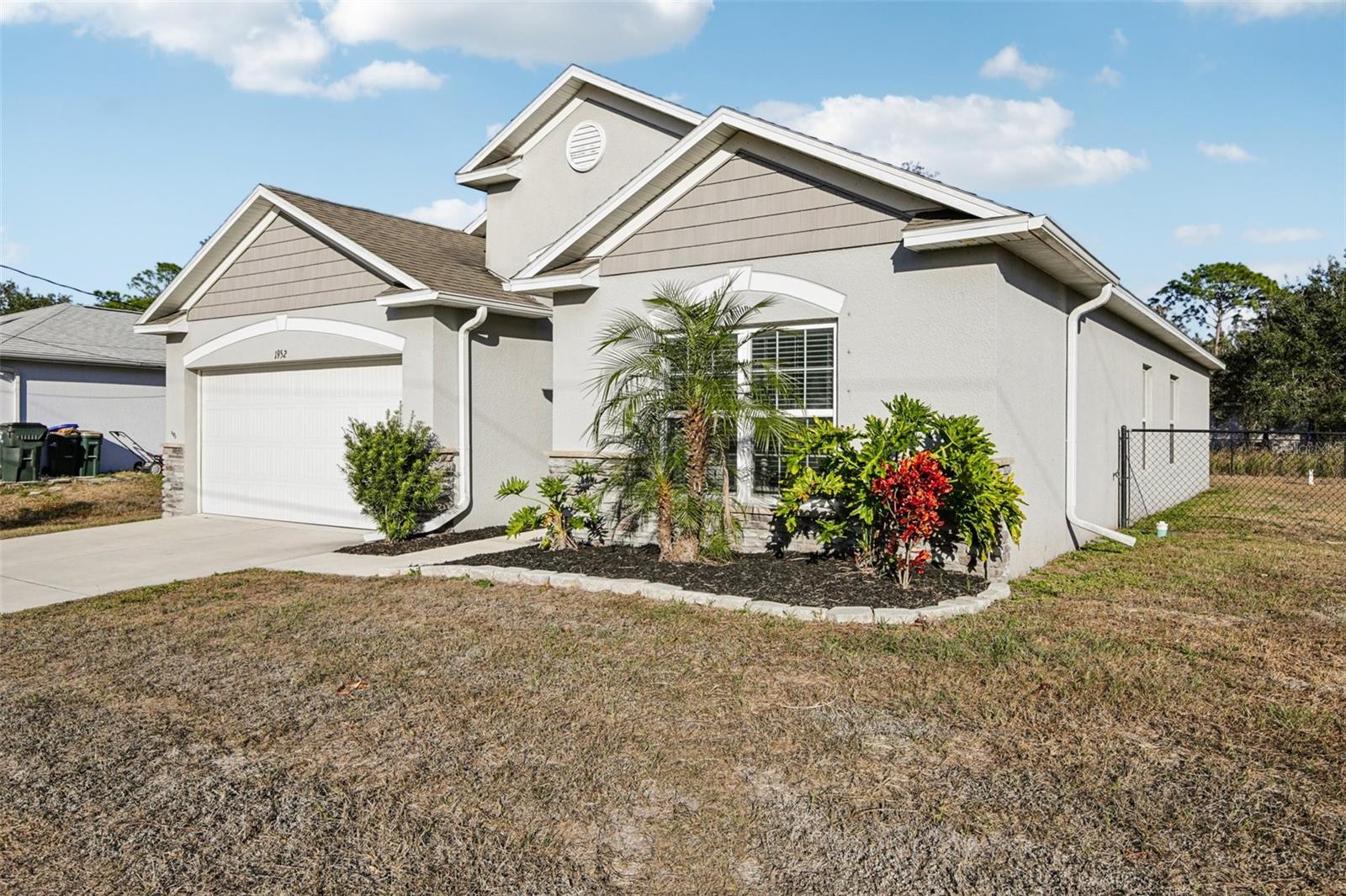 One or more photo(s) has been virtually staged. PRICED TO SELL. Seller motivated and ready for next chapter. Potential FHA assumable mortgage at approximately 3.5% interest rate, subject to lender approval. Check out this 4-bedroom, 2-bath concrete block home located on a spacious, fully fenced lot in a quiet North Port neighborhood. The open floor plan offers abundant natural light, ceiling fans in every bedroom, and a functional kitchen with 42-inch cabinetry and ample counter space. The primary suite features a private en-suite bath. The backyard includes an irrigation system and provides ample space for pets, recreation, or a future pool. Exterior features include soffit lighting for added curb appeal. Additional features include a smart front door lock, Ring doorbell, and MyQ smart garage door opener. Seller is also providing a 1-year home warranty. No HOA or CDD. Conveniently located near shopping, dining, schools, Warm Mineral Springs, and I-75 with easy access to Venice, Sarasota, and Gulf beaches.