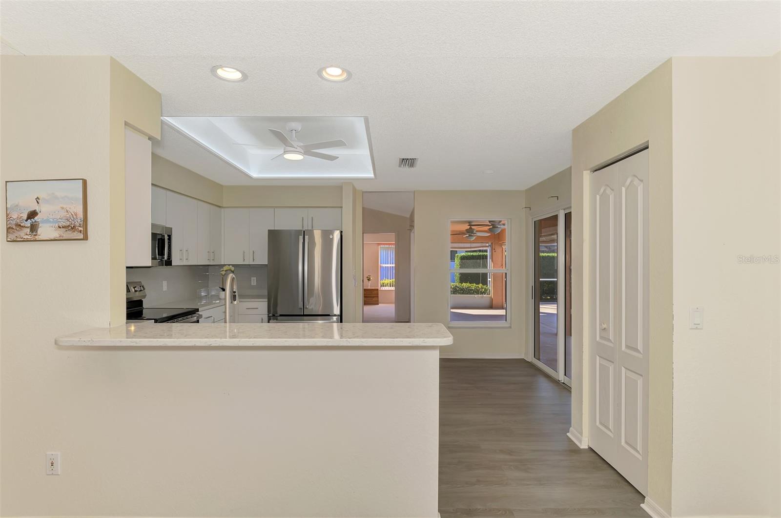 Some homes feel like a Florida experiment. This one feels like a Florida decision. Discover your slice of paradise in Gulf View Estates, one of Venice's most sought-after "Hidden Gem" communities. This spacious, thoughtfully updated home offers the comfort, privacy, and practicality that discerning seasonal and full-time buyers seek. Refined without being flashy and designed for real living, it offers lasting value beyond first impressions. The private solar-heated pool and expansive screened lanai create a quiet, resort-style setting for year-round enjoyment, framed by mature hedging for exceptional privacy. Ideal for morning coffee, winter afternoons, and evening entertaining, the outdoor living space is efficient, low-maintenance, and easy to enjoy. Inside, vaulted ceilings enhance the sense of volume and natural light throughout the formal living room, dining room, kitchen, and family room. Luxury vinyl plank flooring offers a clean, modern aesthetic while providing durability and ease of maintenance, making it especially appealing for part-time or seasonal ownership.The updated kitchen features quartz countertops, a designer backsplash, recessed lighting, a ceiling fan, and a full suite of brand-new stainless steel appliances, including a refrigerator, range, microwave, and dishwasher, creating a functional and attractive hub for daily living and entertaining. A true split-bedroom floor plan ensures privacy for owners and guests, with three generously sized bedrooms, all offering walk-in closets, including dual walk-ins in the primary suite, a rare and highly desirable feature. This home has been carefully maintained and improved with a roof replaced in 2015, a solar pool system added in 2015, an exterior repaint in 2018, a water heater replaced in 2019, the pool was resurfaced in 2022 with rotating in-floor cleaning heads for efficient circulation and heating, hurricane shutters throughout, in-ground irrigation, and public water and sewer service. All this is located in Gulf View Estates, a friendly, deed-restricted community with LOW HOA fees of just $350/year and NO CDD fees, offering long-term stability and exceptional value. You're only 5 minutes from Manasota Key Beach and moments from Venice's shopping, dining, golf, and entertainment, including CoolToday Park, home of the Atlanta Braves Spring Training, providing the perfect balance of relaxation and activity. This is Florida living done right, established, efficient, comfortable, and move-in ready, offering buyers confidence, quality, and immediate enjoyment from day one. Live the Florida lifestyle you've been dreaming of--schedule your private showing today!