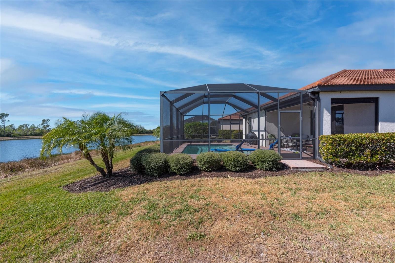 Welcome to your dream retreat at 10475 Medjool Drive in the estimable Sarasota National Golf and Country Club! This stunning 4-bedroom, 3-bathroom home boasts tile flooring throughout, offering a seamless blend of elegance and functionality. Step into a bright, sun-filled space with southern exposure that floods the interior with natural light. The heart of the home features solid wood cabinets topped with granite countertops, complemented by convenient pullout shelves in the lower kitchen cabinets. Crown molding, chair rails, and decorative millwork add stylish touches throughout, while the primary bedroom showcases a striking feature wall for added style. Outside, enjoy ultimate relaxation in your private oasis: a heated saltwater pool overlooking a beautiful water view with a preserve beyond, ensuring total privacy. The rear lanai is equipped with a remote-controlled hurricane storm shade, accordion hurricane shutters, and a freshly re-screened lanai cage in 2024 for peace of mind during stormy seasons. Sarasota National is an Audubon Sanctuary-certified community, spanning over 1,300 acres of preserved lakes and conservation land, delivering breathtaking views and abundant wildlife right at your doorstep. Indulge in resort-style living with amenities including a fabulous pool, tennis courts, pickleball, bocce courts, a library and coffee lounge, and a 7,000 sq ft fitness facility--all part of a 30,000 sq ft clubhouse featuring a dining room, restaurant, and poolside tiki bar. This is more than a home--it's a lifestyle. Don't miss your chance to own this slice of paradise!