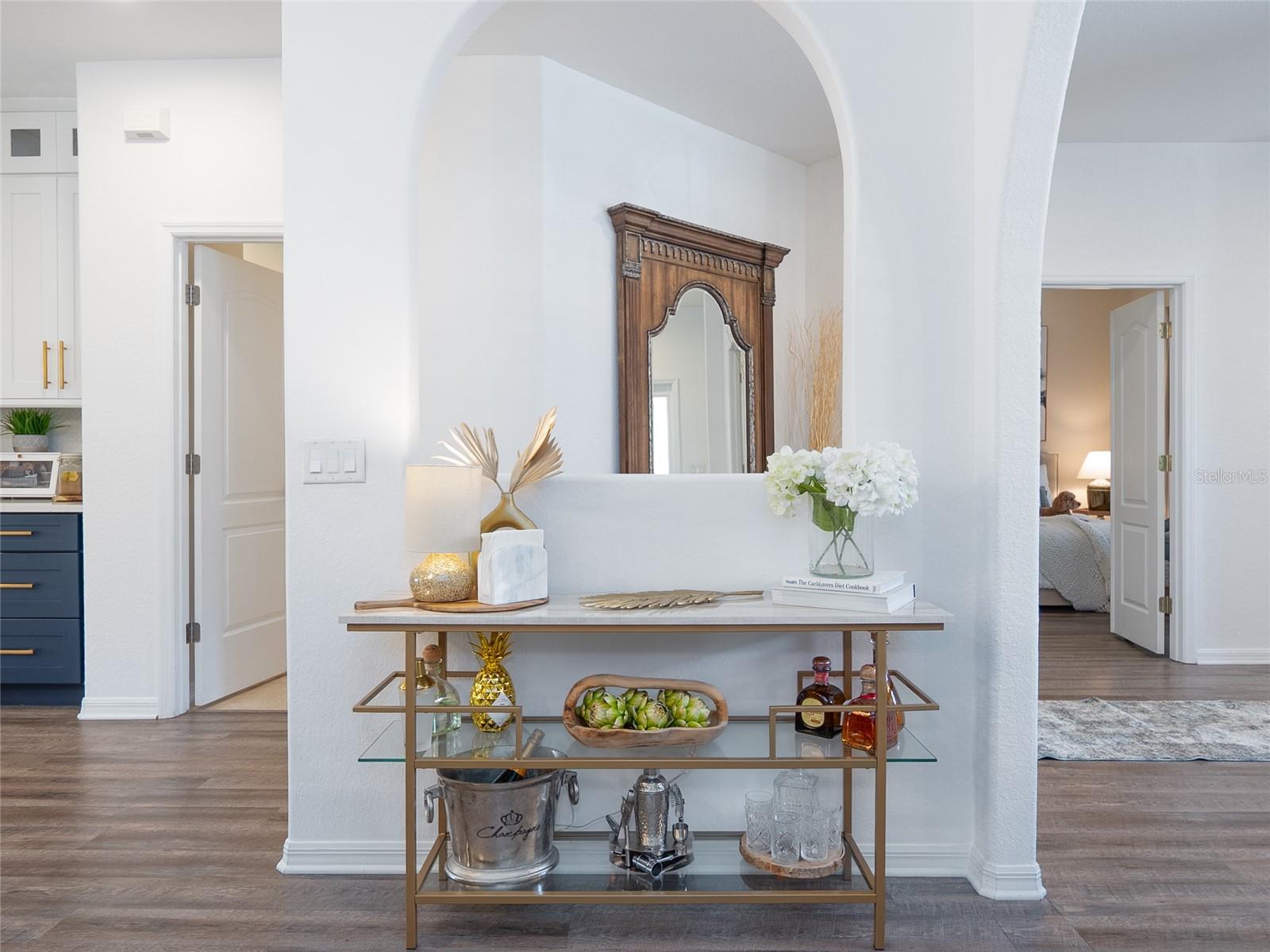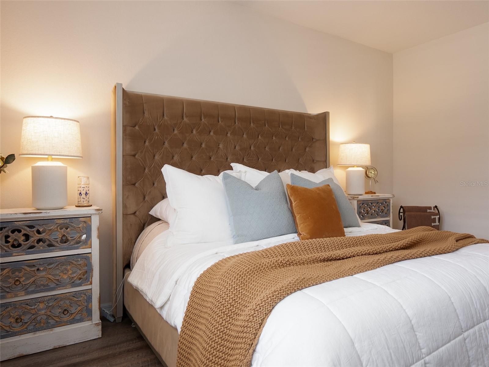 LUXURY LAKEFRONT POOL HOME - 4 BEDROOMS, 3 BATHS, DUAL PRIMARY SUITES, BONUS LOFT This elegantly renovated cul-de-sac residence blends sophisticated style with modern comfort, offering 4 bedrooms, 3 baths, a spacious loft, and two primary suites. Recent upgrades (2023) include: a complete custom kitchen remodel with wine fridge, new dishwasher and range, custom laundry cabinetry, high-end LVP flooring in loft and stairs, electric fireplace, fresh interior and exterior paint, custom accent walls and ceilings, upgraded lighting throughout, enhanced door and closet hardware, garage overhead storage, new salt cell and pool pump motor, and more. The open-concept great room boasts tray ceilings, crown molding, plantation shutters, and peaceful lake views. The upstairs loft offers flexible living space, while the screened 50' x 24' lanai with heated saltwater pool creates a private resort-style escape. Community amenities include an 18-hole golf course (no mandatory fees), resort pools, spa, tennis, pickleball, fitness center, and walking trails--minutes to Anna Maria Island, Sarasota, Lakewood Ranch, UTC Mall, and I-75.