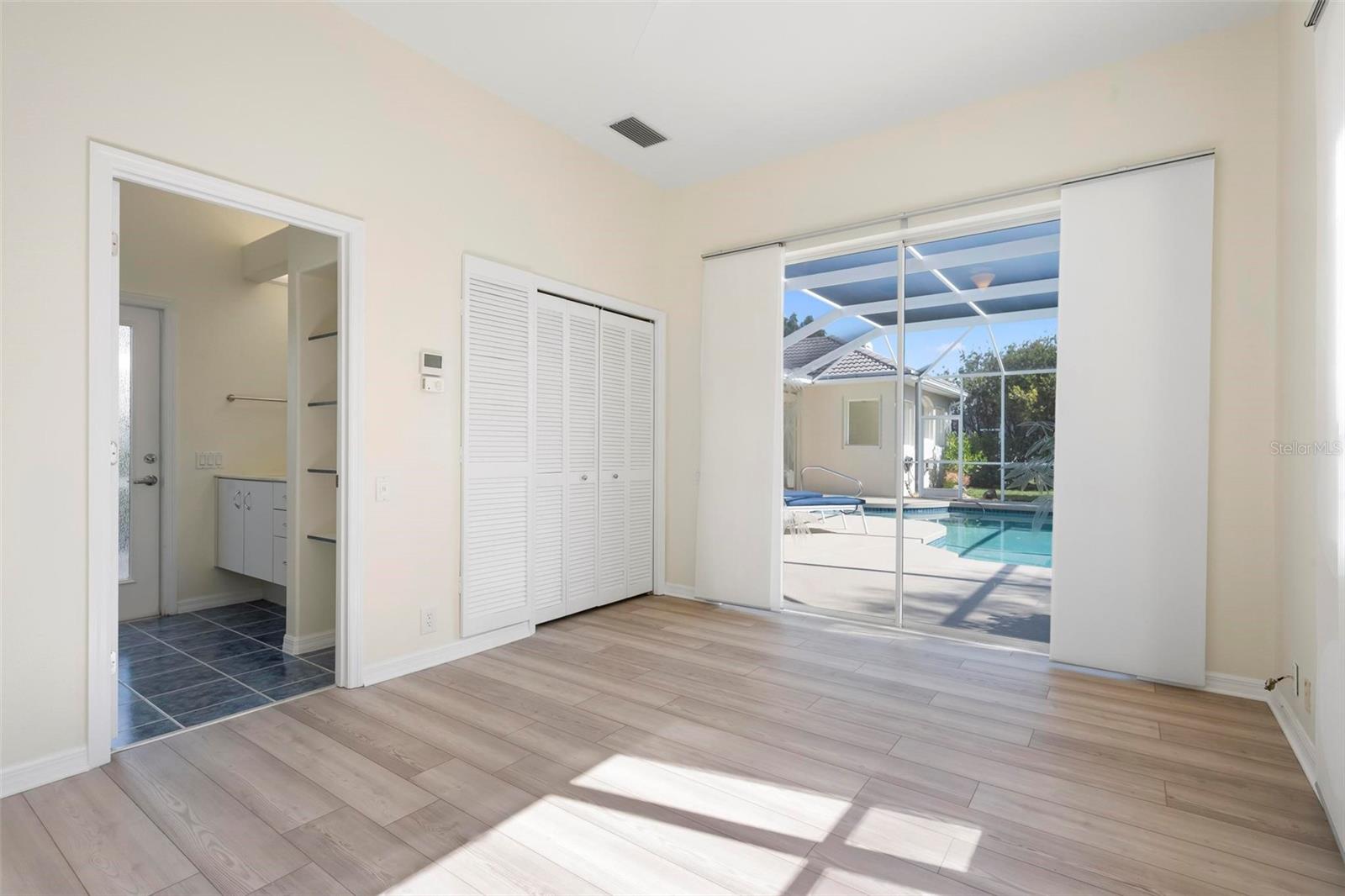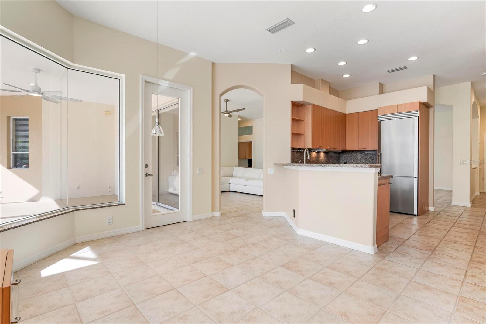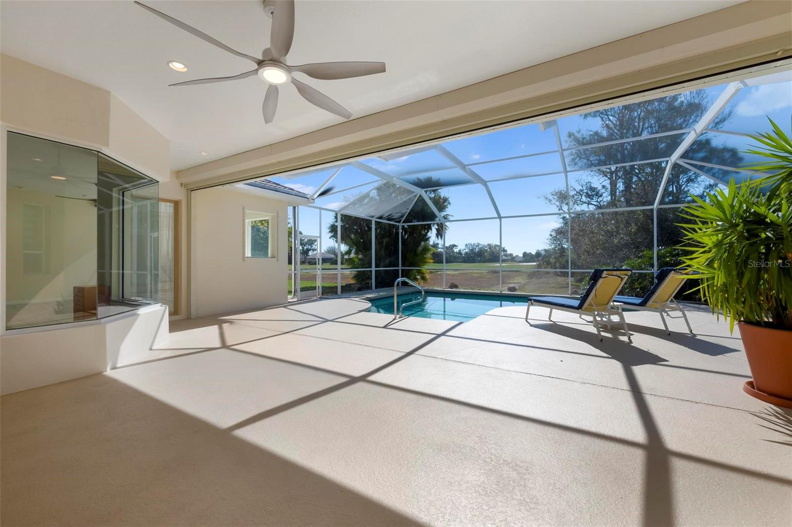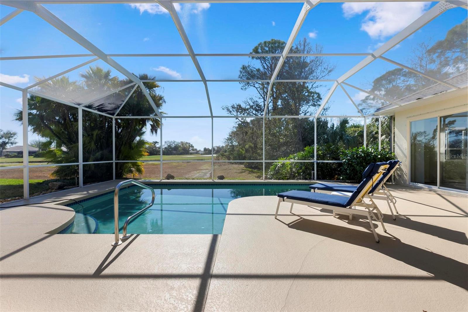 One or more photo(s) has been virtually staged. A serene, view-filled retreat where refined architecture meets effortless indoor outdoor living, framed by water, golf, and wooded views. Offering 2,900 sq. ft. with 3 bedrooms and 3 baths, including a poolside en-suite casita ideal for guests or in-law use. Volume ceilings enhance both formal and casual living spaces, complemented by a built-in study and a contemporary European-style kitchen with premium appliances, granite counters, and a breakfast bar. An aquarium window frames tranquil pool and nature views. The spacious family room features a fireplace and natural media wall. The remodeled primary suite offers dual walk-in closets and a spa-style bath with soaking tub and frameless glass shower, while guest baths are similarly updated with quality finishes. Outdoor living is designed for privacy and entertaining, with expansive covered areas, a built-in grill, heated pool with new equipment, and a rescreened lanai for year-round enjoyment. In addition to interior renovations, recent mechanical and structural upgrades include two HVAC systems, all new pool equipment, pool enclosure screening, interior and exterior paint, Storm Smart Kevlar hurricane protection, hurricane-rated garage door, hot water tank, whole-house water filtration, and a kitchen water filter.Located in Pelican Pointe Golf & Country Club, residents enjoy clubhouse dining with no minimums, fitness center, heated community pool, tennis, new pickleball courts, 24/7 guard entry, and HOA fees that include lawn care, cable, and high-speed internet. Optional 27-hole golf membership or pay-as-you-play. Just minutes from Venice Island beaches, boating, dining, boutiques, and cultural venues.