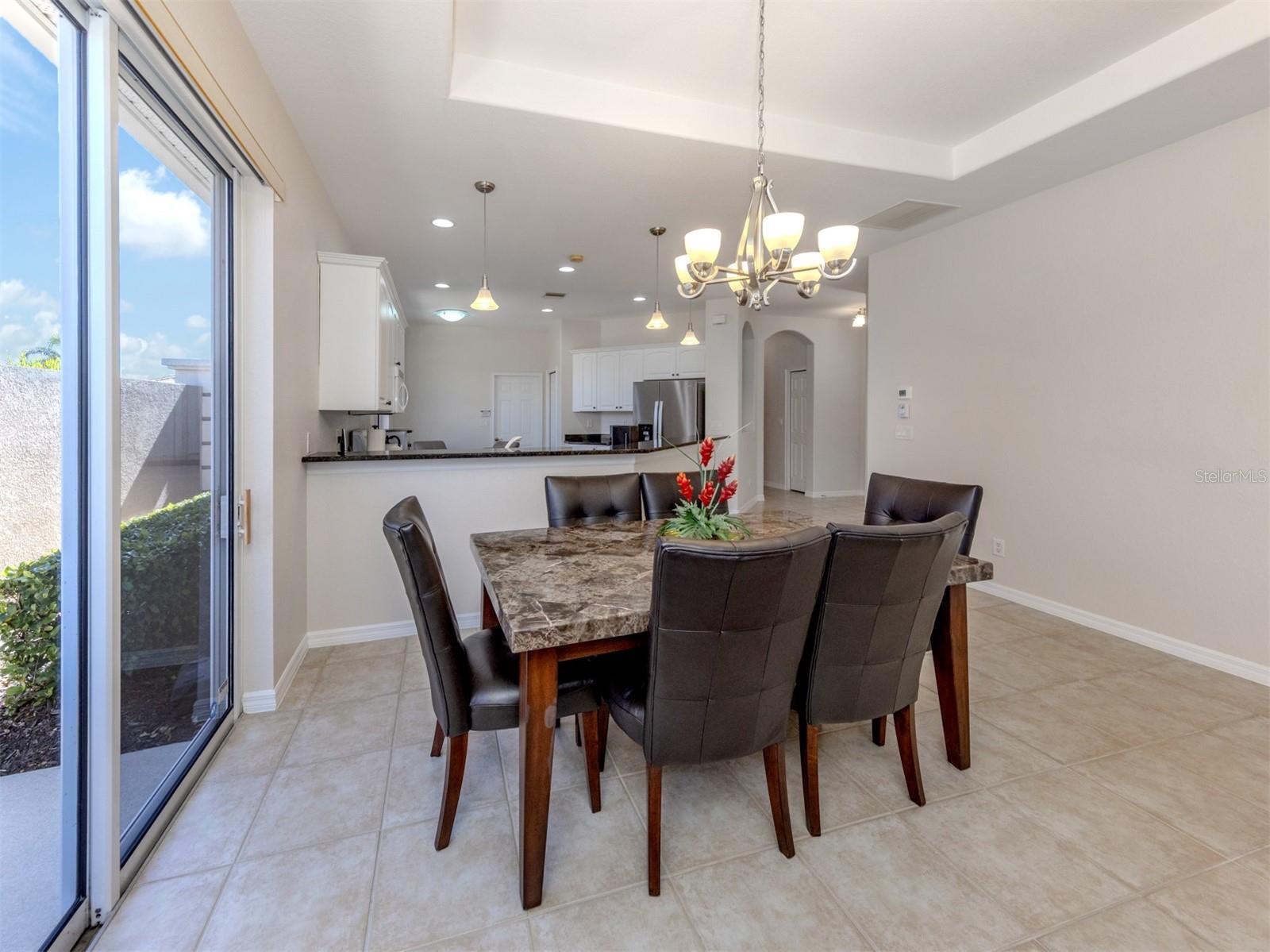 Welcome to this charming WCI-built residence, a beautifully maintained two-bedroom, two-bath home with a versatile den/study, offering an effortless and relaxing lifestyle. Go inside to an inviting open floor plan filled with natural light, freshly painted and move-in ready. The spacious living area flows seamlessly to a screened lanai, where soothing water views create a backdrop for unwinding. The open kitchen is ideal for everyday cooking and entertaining, featuring attractive cabinetry, granite countertops, a breakfast bar, gas range, refrigerator and a new dishwasher, all illuminated by sunlight streaming through sliders that open to a peaceful side garden. The lovely owner's suite includes two walk-in closets, dual vanities and a walk-in shower. For added peace of mind, the home is equipped with hurricane-impact windows. Elegant touches such as tray ceilings in the main and great room, along with architectural niches and arches, enhance the home's character. In the exclusive Venetian Golf & River Club in North Venice, this community offers an unparalleled lifestyle just minutes from Gulf beaches and shopping. Savor exceptional dining with picturesque views at The River Club, overlooking a tranquil 70-acre nature park along the Myakka River. Stay active with a full fitness center, aerobics studio, lap pool and a luxurious resort-style pool with cabana bar. Tennis lovers will appreciate the six Har-Tru courts, and pickleball players have their dedicated space. Golf enthusiasts can enjoy the stunning 18-hole championship course inspired by legendary designs. Experience a community where every day feels artfully crafted and every moment invites you to live beautifully.