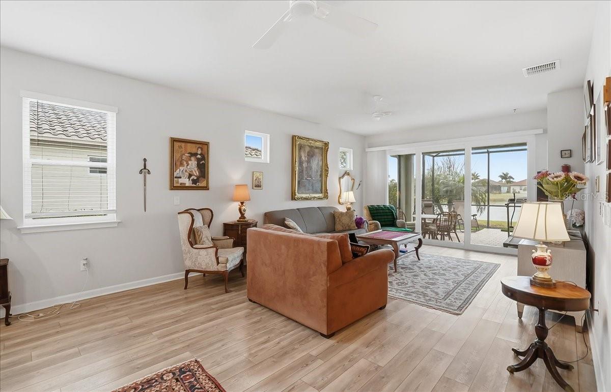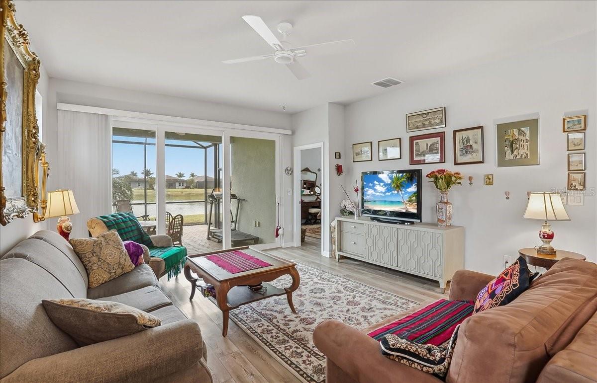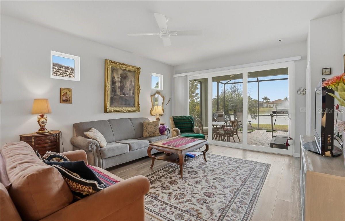 This Villa has it all! This stunning 2 bedroom, 2 bathroom Oceana model is perfectly situated on a premium water lot in the highly sought-after Renaissance at West Villages. Enjoy peace of mind with hurricane impact windows and an extended screened lanai cage, ideal for relaxing and enjoying tranquil water and fountain views.Inside, the home features luxury vinyl plank flooring, adding a modern, elegant look and easy maintenance throughout the main living areas. The open floor plan is light, bright, and perfect for entertaining or enjoying the Florida lifestyle.The 2-car garage with epoxy flooring provides a clean, finished look and extra durability--perfect for storage, hobbies, or showcasing vehicles.Renaissance at West Villages offers beautiful surroundings, resort-style amenities, and a convenient location near shopping, dining, and Gulf Coast beaches. This waterfront villa is a rare opportunity--don't miss it!