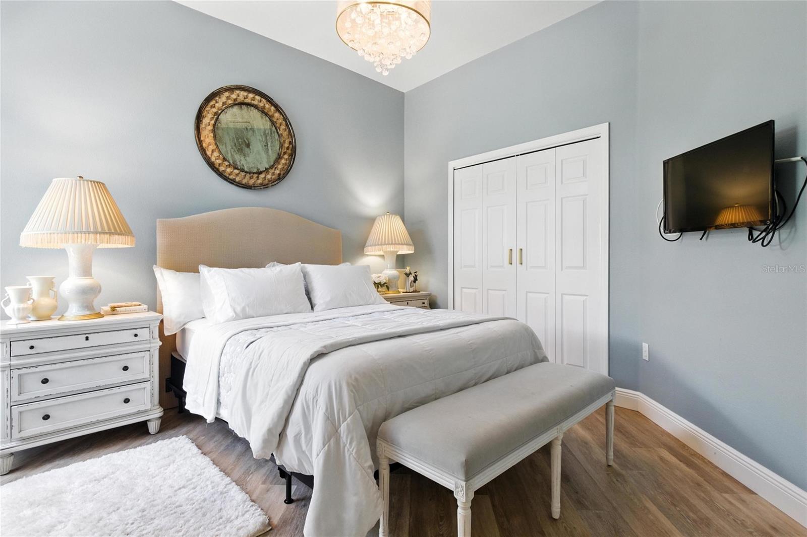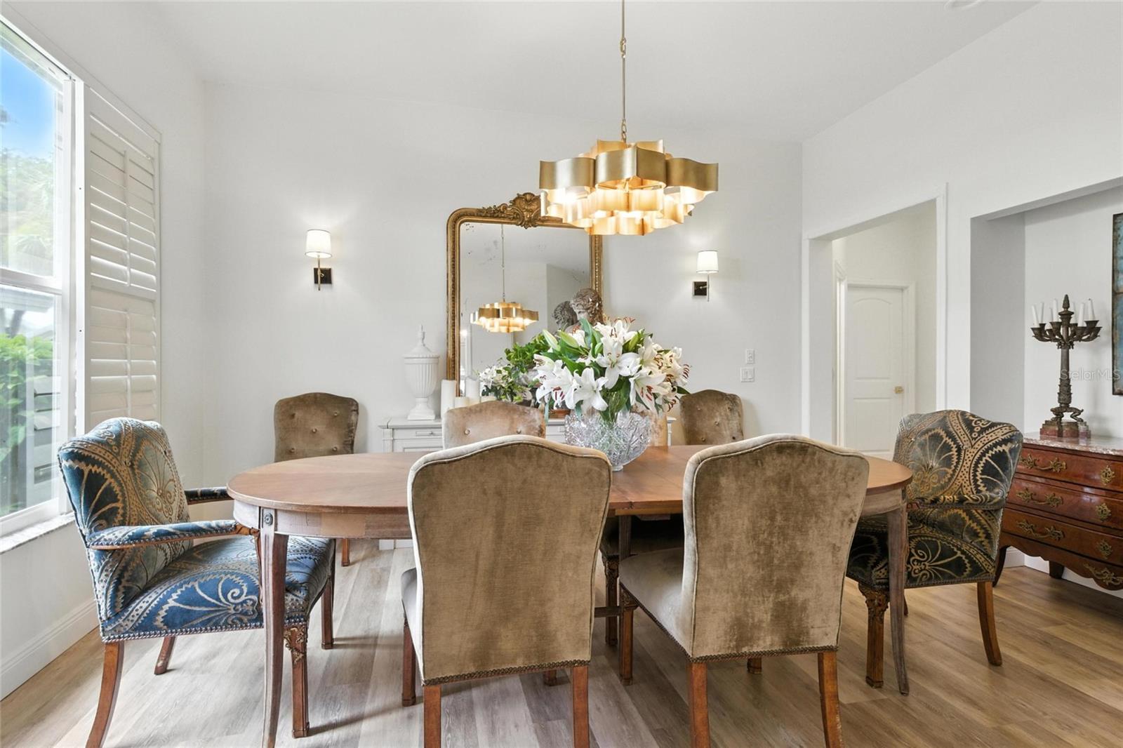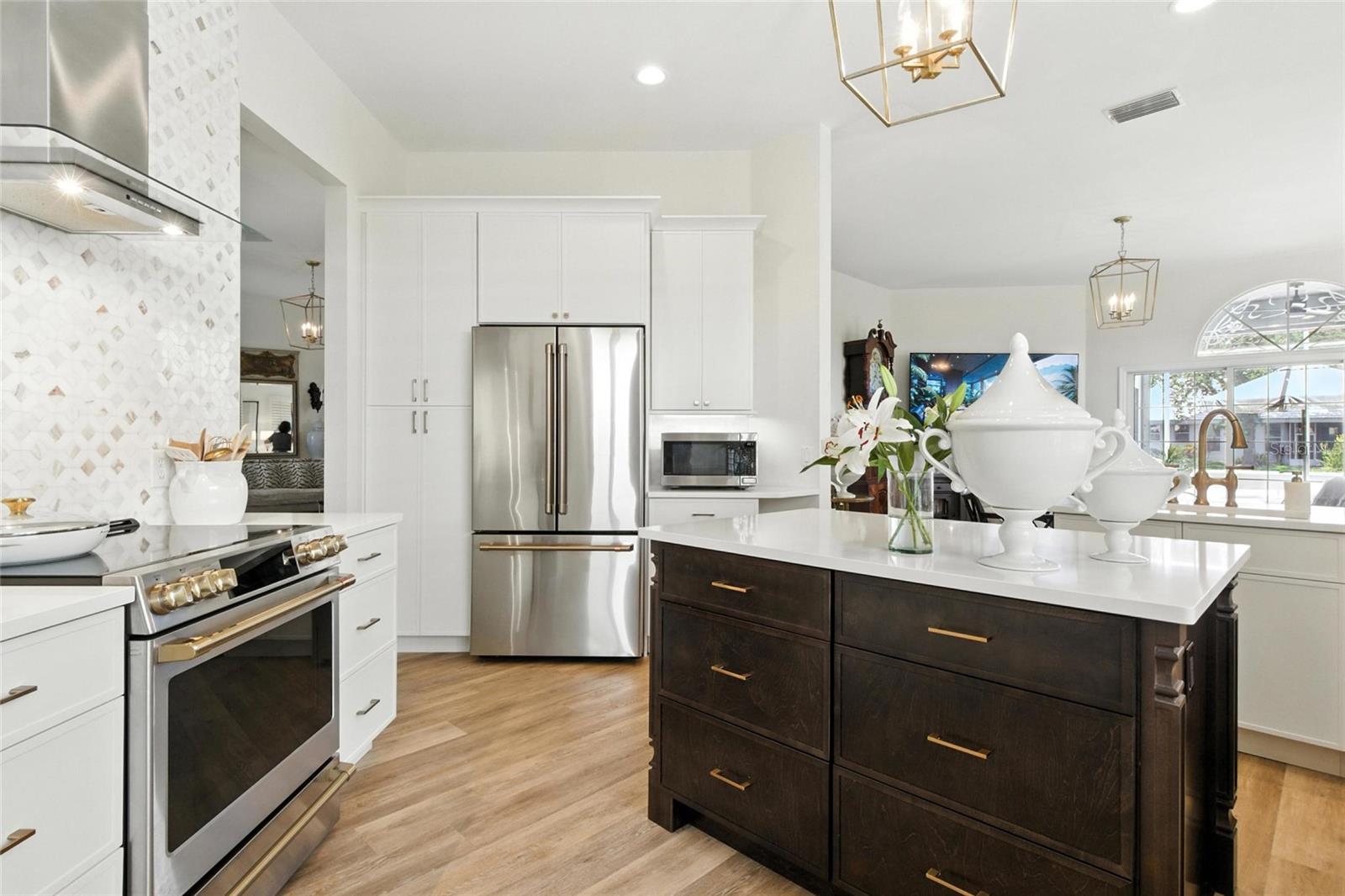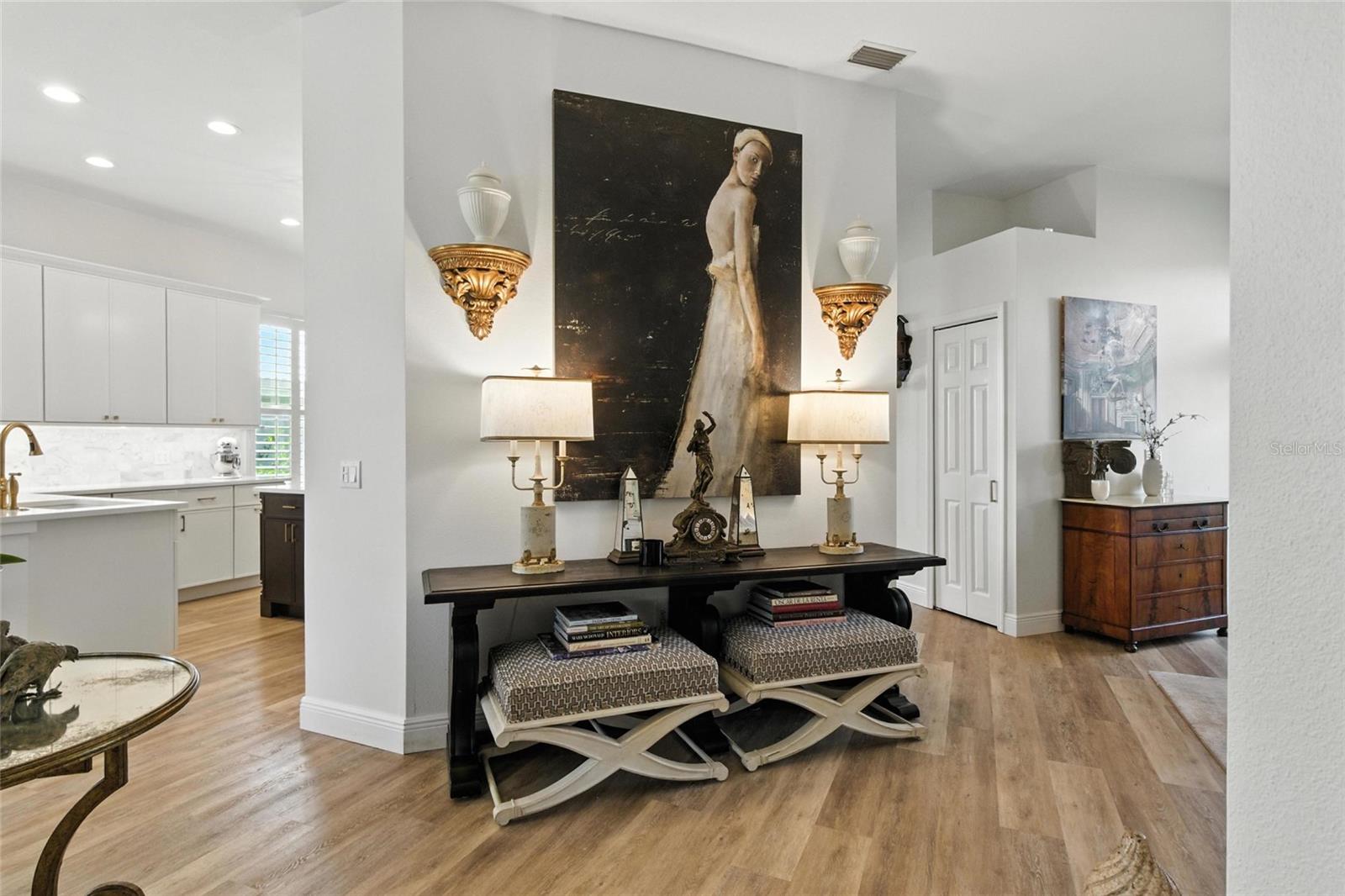 Should you be fortunate enough to live in a home designed by a well-known Chicago designer, you'll immediately appreciate the artistry, craftsmanship, and attention to detail found throughout this EXTRODINARY RESIDENCE.Welcome to the Patios of Chestnut Creek in the heart of Venice. Enter a community, unlike any other--where a tunnel of majestic trees lines the street, guiding you toward a peaceful lake that glows with natural beauty. As evening falls, graceful white birds gather in the trees, creating a serene setting perfect for a quiet morning coffee or a relaxing glass of wine at dusk.From the BRAND-NEW ROOF and PAVER DRIVEWAY to LUXURY VINYL PLANK FLOORING throughout, this home radiates ELEGANCE and QUALITY.Step inside to discover UPSCALE CUSTOM CABINETRY topped with QUARTZ countertops, a STUNNING MARBLE BACKSPLASH, and GE CAF' APPLIANCES that seamlessly blend beauty and function. Stylish CHAMPAGNE BRONZE FIXTURES add a warm, sophisticated touch. The open, flowing floor plan is ideal for entertaining, with a dining area that comfortably seats 8 to 10 guests.The main suite is a true sanctuary, featuring soaring 12-foot ceilings, oversized windows, and an en suite bath that defines luxury and relaxation.Embrace the Florida lifestyle from your EXPANSIVE LANAI overlooking a peaceful pond. Enjoy plenty of covered seating, an extended outdoor area perfect for gatherings or gardening, and space to add a tranquil fountain to complete the ambiance.Additional highlights include HURRICANE ACCORDIAN SHUTTERS , a brand-new garage door, and DESIGNER FINISHES typically reserved for homes priced well over one million dollars. All that and NO CDD Fees, LOW HOA fees and easy access to Historic Downtown Venice, restaurants, shopping and the beaches.