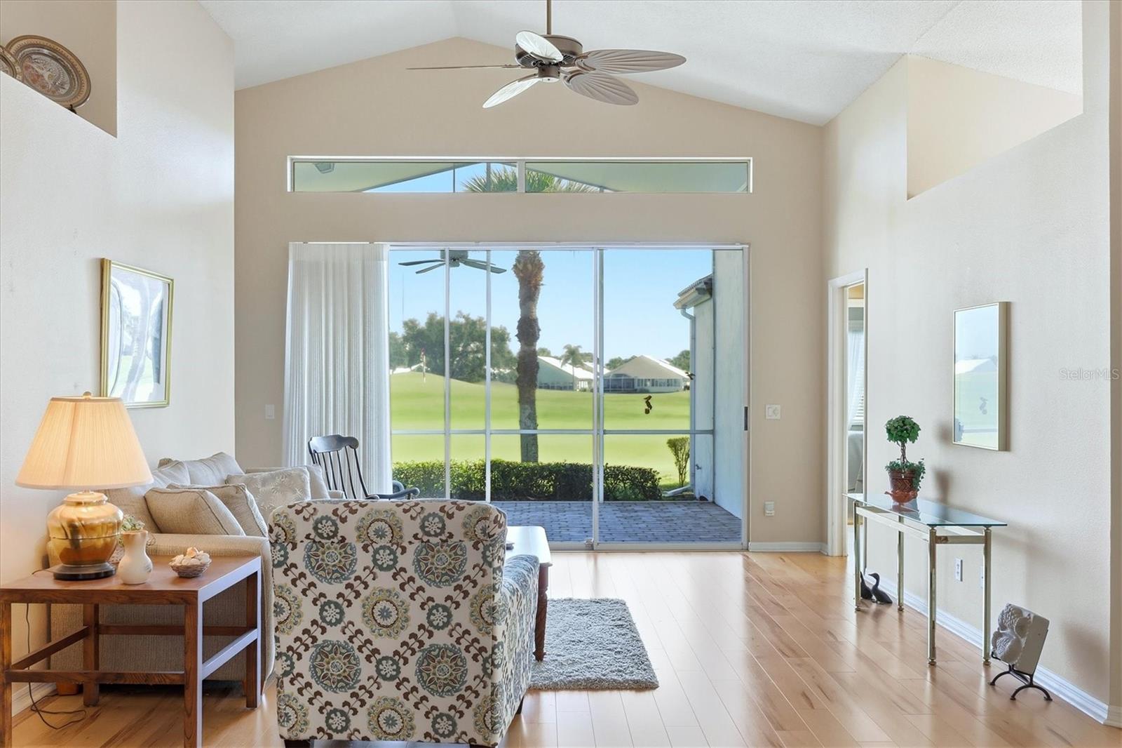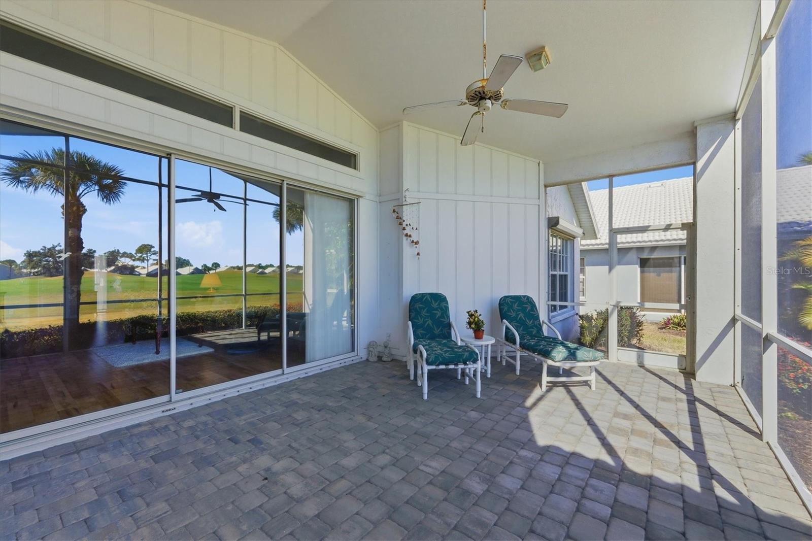One or more photo(s) has been virtually staged. Lovely 2 bedrooms, 2 baths, 2 car garage single family villa home in Waterford. Open and light with cathedral ceilings in greatroom/living room and out to screened lanai with newer paver brick floors and screen. Home is a split bedroom floor plan with master bedroom, walk in closet, large ensuite bathroom, large vanity, corner shower, water closet all getting beautiful sunshine light from overhead skylight! Bedroom 2 is open and light with views of golf course, but still gives privacy. Bath 2 serves nicely just steps away in hallway that closes off for privacy and adjacent to laundry room. Dining room is nicely accommodating just out of kitchen area/great room. Kitchen is nicely appointed with multiple cabinets, granite counters along with breakfast room and views or landscaping and street! A 2 car garage serves this home well with added cabinetry, automatic garage door opener out to concrete driveway. Enjoy the comfort of Protective hurricane panels for inclimate weather! Located in Waterford, a highly sought after community within minutes to Historical Downtown Venice and beaches on the Gulf of Mexico and Intracoastal Waterway! Waterford is complimented with updated community clubhouse, junior Olympic sized heated pool, spa, Hartru Tennis courts with viewing deck, grills and picnic area, new pickle ball court/basketball, state of the arts gym inside clubhouse with newer kitchen and meeting rooms, library and on-site management. Golf is separate, not included but reasonable There are no CDD fees here!!