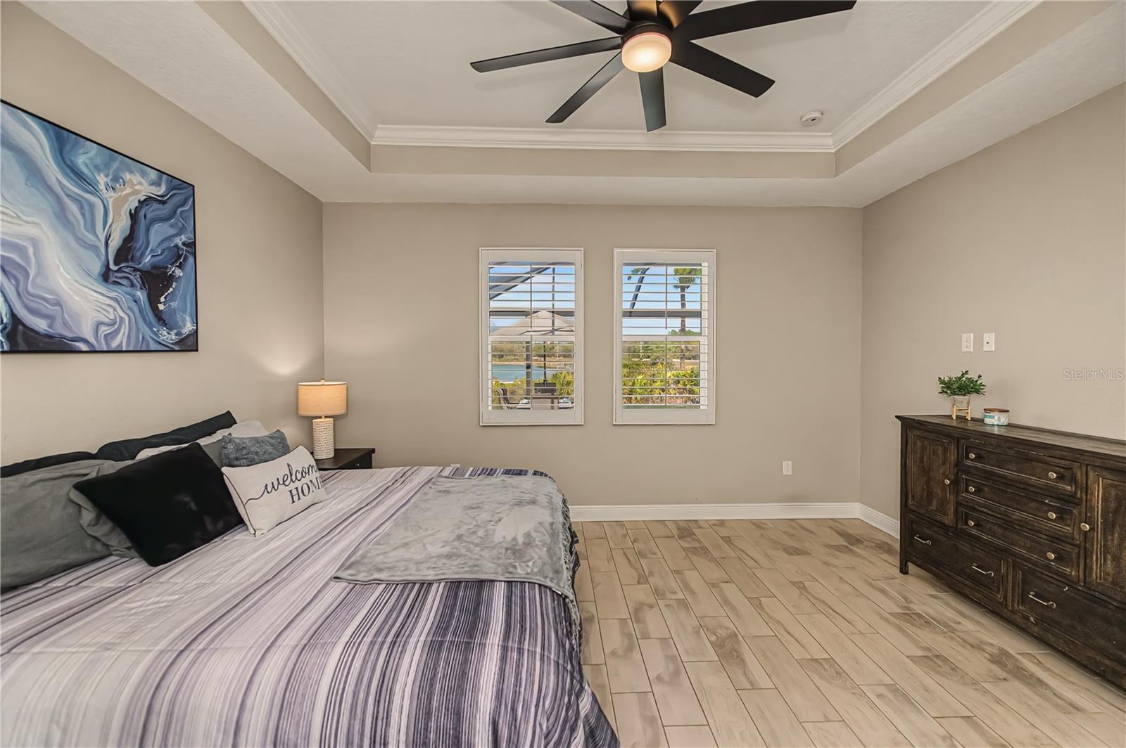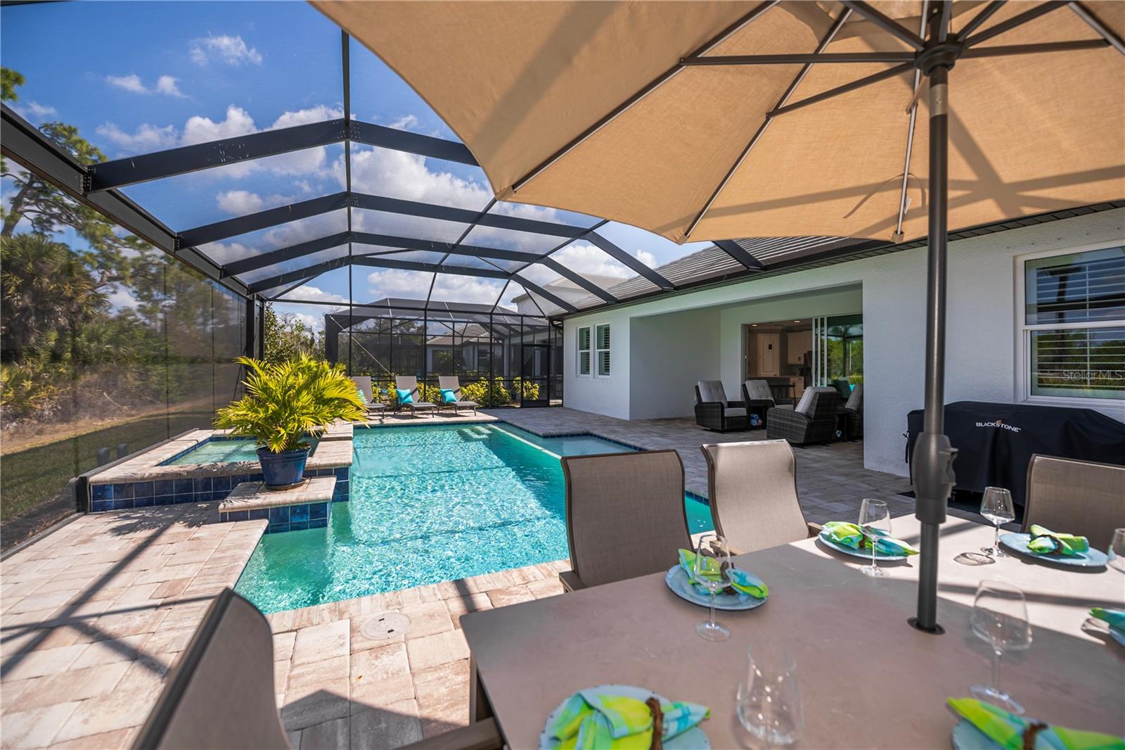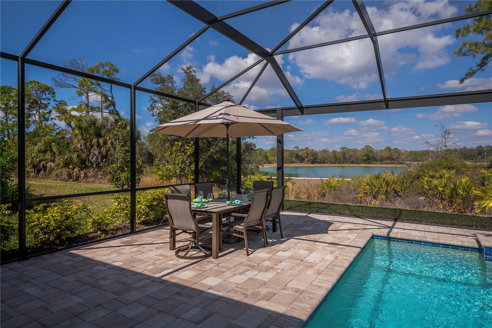 Welcome to this impressive POOL home featuring 4 bedrooms, 3 baths, a versatile flex space, and a 3-car garage in the gated community of Oasis. Built by MI Homes, this residence centers around an open-concept layout that seamlessly connects the kitchen, living, and dining areas -- perfect for both everyday living and entertaining.Some of the key features of this home include a 60-foot lot, tall ceilings, tray ceilings, crown molding, upgraded baseboards, plantation shutters, ceiling fans, and tile flooring throughout the entire home.The kitchen is a true showstopper and features a gourmet design with stainless steel appliances, a stainless hood, large walk-in pantry, coffee bar, oversized island with sink, and upgraded quartz countertops. Just off the kitchen and living area, sliding glass doors open to your private lanai featuring expansive panoramic screening, a heated saltwater pool and spa with tranquil water features and colorful nighttime lighting, plus a sun shelf perfect for lounging -- all overlooking peaceful, picturesque pond views.The primary bedroom suite offers a very large walk-in closet with custom built-ins, stunning views of the pool and pond, and a modern en-suite bathroom with dual sinks. The remaining bedrooms are thoughtfully positioned on opposite sides of the home, offering privacy, and each has access to its own bathroom.This home is a true gem, offering the perfect blend of style, comfort, and impressive modern conveniences.Residents of Oasis enjoy exclusive access to amenities, including a heated community pool, pickleball courts, clubhouse, scenic walking paths leading to a park and dog park -- all within a maintenance-free, gated setting.Located in highly sought-after Wellen Park, you are just minutes from Gulf beaches, shopping and dining, entertainment, schools, medical facilities, the Atlanta Braves Spring Training facility, and the new Wellen Park Costco.Don't miss the opportunity to make this exceptional home yours!