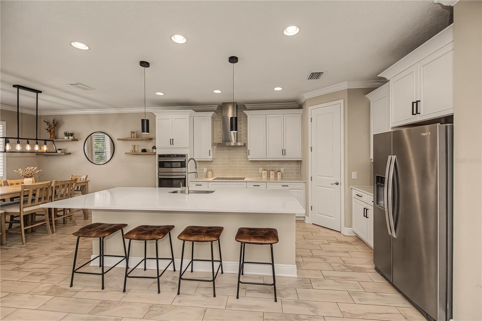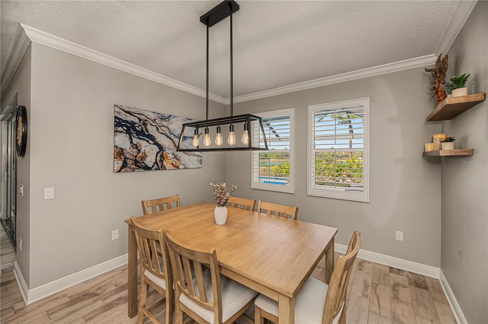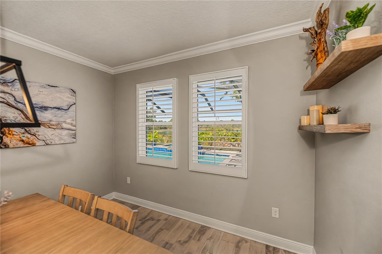 Welcome to this impressive POOL home featuring 4 bedrooms, 3 baths, a versatile flex space, and a 3-car garage in the gated community of Oasis. Built by MI Homes, this residence centers around an open-concept layout that seamlessly connects the kitchen, living, and dining areas -- perfect for both everyday living and entertaining.Some of the key features of this home include a 60-foot lot, tall ceilings, tray ceilings, crown molding, upgraded baseboards, plantation shutters, ceiling fans, and tile flooring throughout the entire home.The kitchen is a true showstopper and features a gourmet design with stainless steel appliances, a stainless hood, large walk-in pantry, coffee bar, oversized island with sink, and upgraded quartz countertops. Just off the kitchen and living area, sliding glass doors open to your private lanai featuring expansive panoramic screening, a heated saltwater pool and spa with tranquil water features and colorful nighttime lighting, plus a sun shelf perfect for lounging -- all overlooking peaceful, picturesque pond views.The primary bedroom suite offers a very large walk-in closet with custom built-ins, stunning views of the pool and pond, and a modern en-suite bathroom with dual sinks. The remaining bedrooms are thoughtfully positioned on opposite sides of the home, offering privacy, and each has access to its own bathroom.This home is a true gem, offering the perfect blend of style, comfort, and impressive modern conveniences.Residents of Oasis enjoy exclusive access to amenities, including a heated community pool, pickleball courts, clubhouse, scenic walking paths leading to a park and dog park -- all within a maintenance-free, gated setting.Located in highly sought-after Wellen Park, you are just minutes from Gulf beaches, shopping and dining, entertainment, schools, medical facilities, the Atlanta Braves Spring Training facility, and the new Wellen Park Costco.Don't miss the opportunity to make this exceptional home yours!