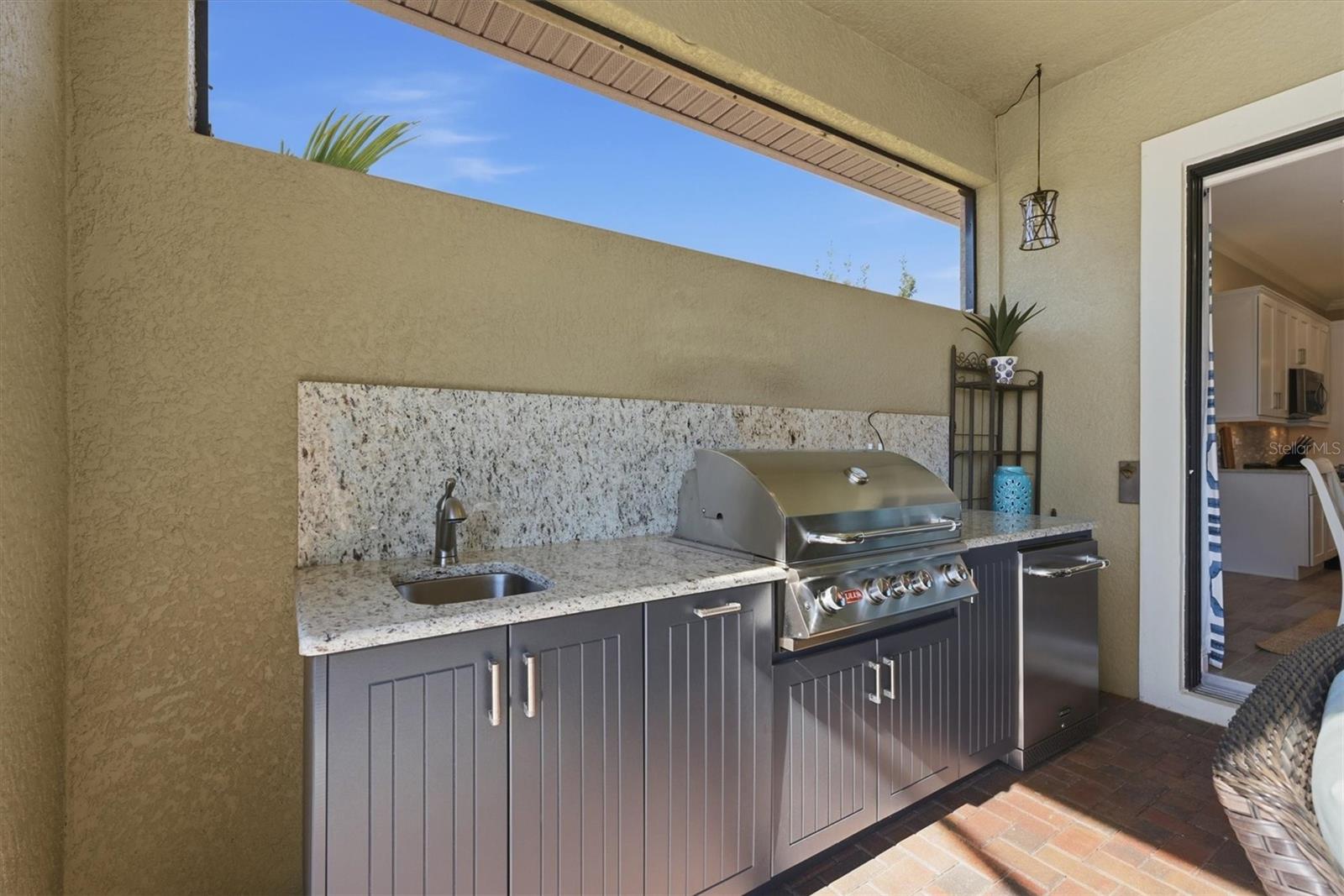 Exterior: Awning(s), Hurricane Shutters, Lighting, Outdoor Kitchen, Rain Gutters, Sliding Doors