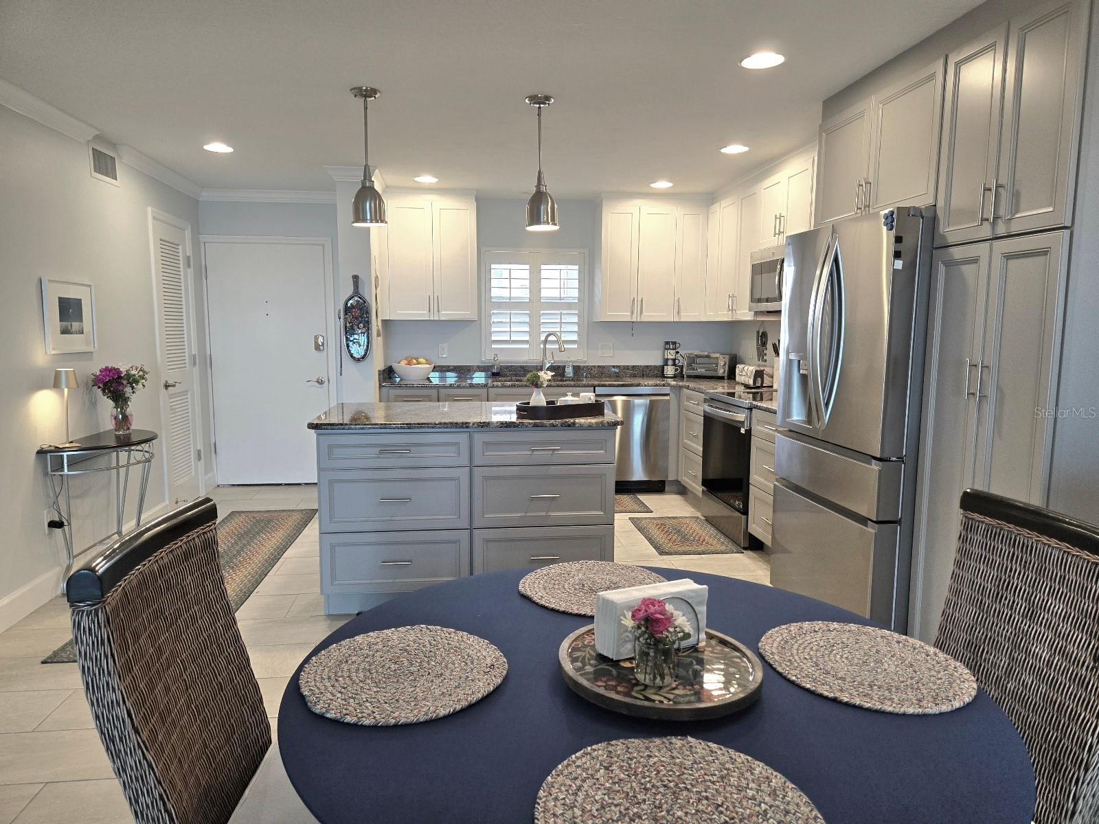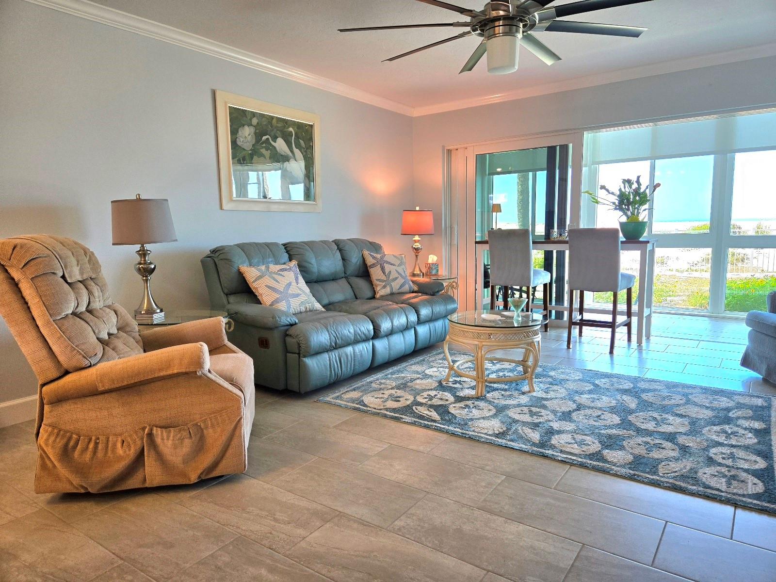 Get the beach vibe! Located on a gorgeous stretch of Venice beach, this fabulous ground floor condo is everything you are craving to own. Crystal clear blue gulf waters and soft sands are calling you. Salt air and salt life are just steps away from your door. Grabbing a drink at the nearby tavern, dancing & vibrant nightlife & music downtown, are all close at hand. Unit 102 has been beautifully re-designed interior with high-end quality construction throughout, totally renovated and completed in 2025. Like new and like no other, you will enjoy 2 large bedrooms, each with it?s own en-suite bathroom, with the primary bedroom having a walk-in closet and sliding doors to the glass enclosed lanai, private inside laundry room, and of course, a door to the beach. You will love the comfortable, extra wide, enclosed lanai featuring all new hurricane-impact safety rated PGT windows and doors. The showcase kitchen is gorgeous with brand new appliances, custom light-gray color wood cabinetry, granite stone counter tops & a center island, new overhead lighting, and Plantation shutters. This spacious condo features an open dining area and great room and all with a view of the gulf. Attractive smooth ceramic plank tiled flooring throughout makes accessibility easy. The Imperial House is a 6-story mid-rise condominium, financially well-managed & maintained, has up-to-date building inspections completed as required. A public boat ramp, pickleball courts, tennis, and golf available, The public 27-hole golf course is just down the road on the island. What a great find, these condos are rarely available for sale and priced under $1M with low condo association fees. And it is located nowhere else but here in SW Florida. Pet friendly association allows extra-large DOG size. The sellers will consider all offers.