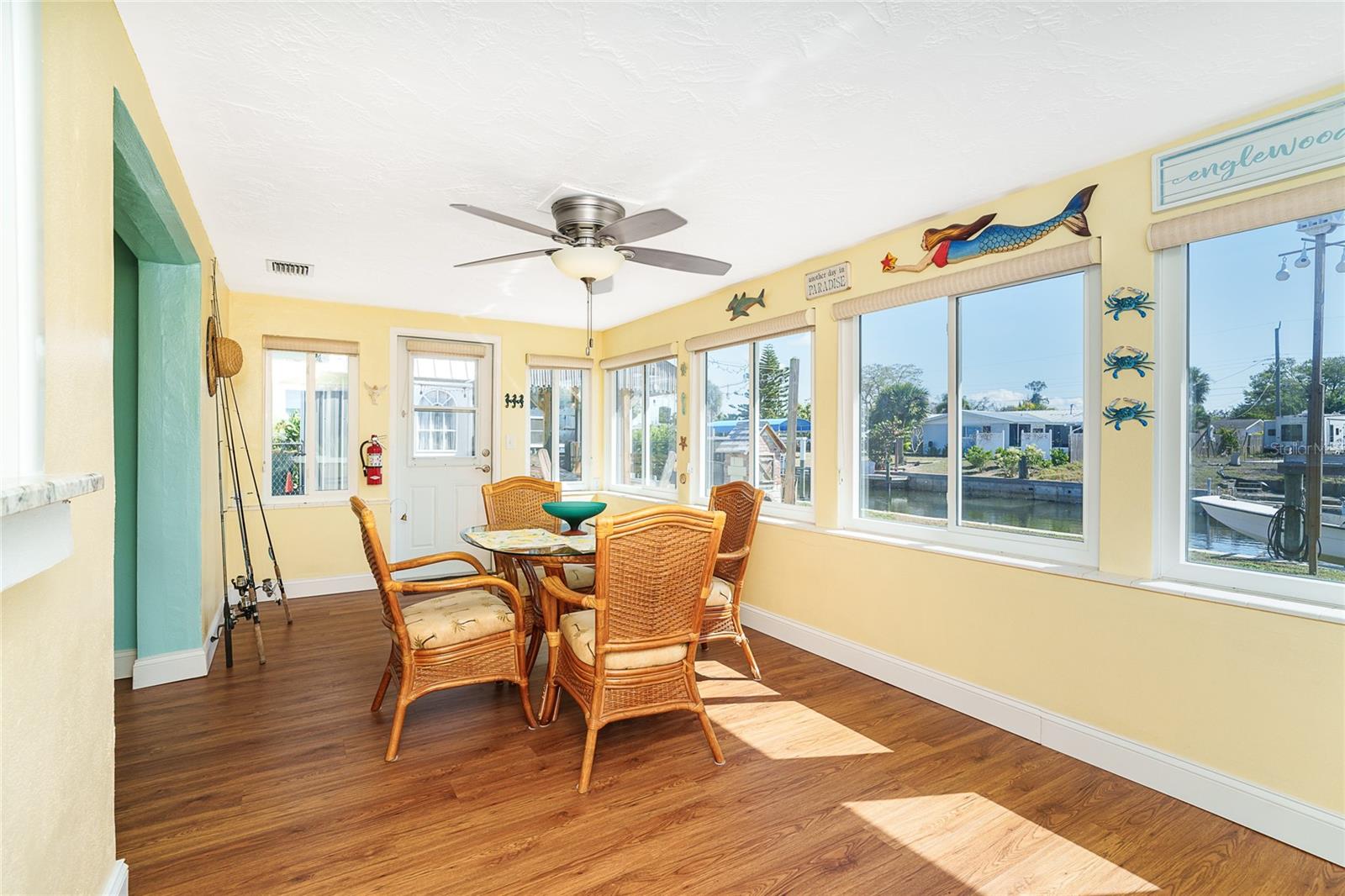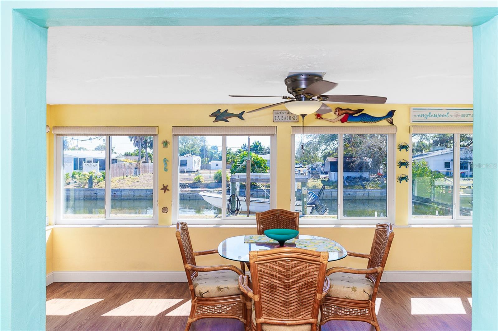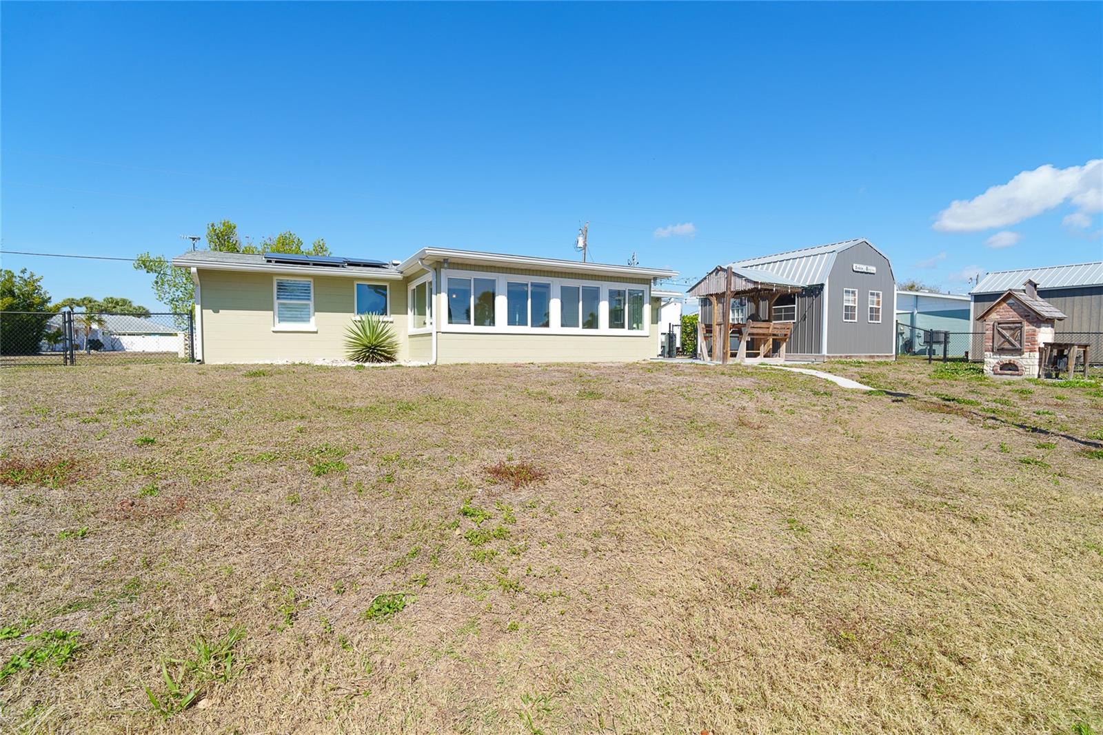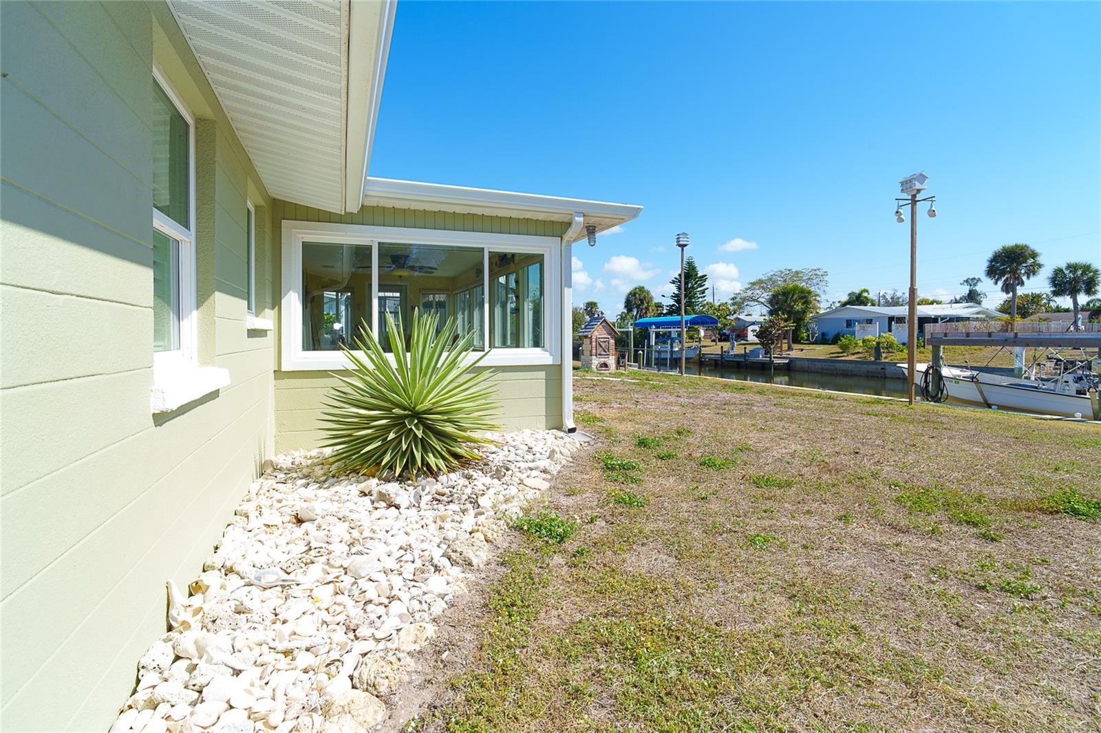 Attention BOATERS, and outdoor enthusiasts, this exceptional 2 Bed, 1 and 1/2 Bath home, in Rock Creek community of Englewood offers quick and easy access via Rock Creek Canal to our Intra-Coastal Waterway and Gulf of America. After a memorable day of fishing or exploring our local beaches relax on your Cabana and enjoy the Purple Martin birds nesting in the bird houses. There is a masonry smoker in the back yard for the perfect dinner. The carport features a Utility Room and RV hookup with electric and water for your motorhome guests. In addition, there is a large shed with a loft, ideal for workshop hobbies and storing your hand tools and yard tools. As you step inside, you'll be impressed by the beautiful vinyl plank flooring throughout the home. Plantation Shutters add warmth and elegance throughout. The Sun Room off the kitchen offers lovely views of the canal and the generous space is perfect for family and friends. The updated kitchen, featuring granite countertops is a chef's dream, boasting modern appliances, ample counter space and stylish finishes. Pride of ownership is evident throughout every corner of this home, making it a rare find as an affordable waterfront home. You will have peace of mind with Impact Windows and Doors and a new roof in 2023/2024. A Solar System was added making this an energy efficient home. Beyond its exquisite interior and exterior, this property offers the perfect blend of convenience and leisure. Situated within a fifteen-minute drive to our Gulf of Mexico beaches, you'll have easy access to sun, sand and sea, while the vibrant Historic Dearborn Street is just a short ten-minute drive, offering an array of dining, shopping, and entertainment options. Whether you're looking for a tranquil retreat to escape the cold winter temps or a place to create lasting boating and fishing memories with loved ones, this property truly has it all. Reach out to schedule a private tour and experience the beauty and serenity that awaits within.The Home Improvements made to house are many. A copy will be available.