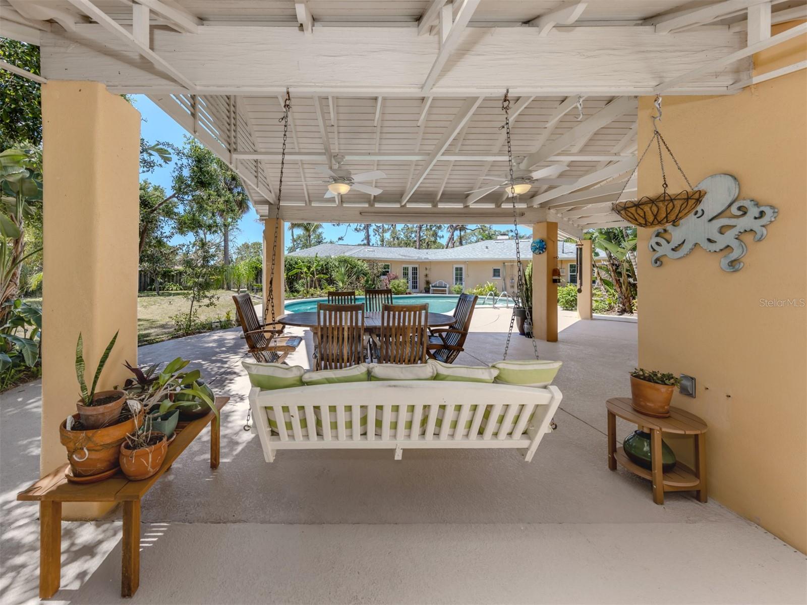 One or more photo(s) has been virtually staged. Hey, don't skip this very special Island of Venice home because of its age. This was home was constructed with some of the finest native materials to withstand the Florida climate. Modern assembly-line construction techniques and materials lack the quality and craftsmanship of the earlier days.This incredible and truly unique home is perhaps the most ideal location on the Island of Venice. This exceptional 2220 sq. ft. home features: 3 bedrooms, 3 baths, plus office, art studio, workshop and huge parklike backyard with an extra large, deep pool. Originally built in 1952 but has been extensively remodeled and major additions added including a large guest bedroom with a nursery or office with its own private entrance as well as a pool cabana with a large art studio and a large workshop. Almost the entire interior including ceilings was repainted in August 2025 and over $25,000 of updated landscaping was recently completed. Located in the original Venezia Park neighborhood, you are surrounded by many 100 year old homes with their Northern Italian architectural design. What you will probably love most is this amazing location; Only 1/2 block to West Blaylock Park and Arboretum and only 1/2 block to Venezia Park and playground both with picnic areas and walking trail. Just about 3 blocks away is the Venice Cultural Campus with a new Venice Library, the Venice Art Center, The Venice Community Center and the Historic 100 year old Triangle Inn now the Venice History Center. Its an easy stroll of about 4 blocks to historic downtown Venice with its shops, excellent restaurants, galleries and Venice Theatre. Venice Beach is just about 4-5 blocks away. If you want to take a bike ride you are only about 6 blocks to the beautiful Venetian Waterway Trail that connects to the popular Legacy Trail in downtown Venice at the historic train station. The kitchen is all newer as are most of the household appliances. All closets are cedar-lined wood. There is crown molding in almost every room. There are original wood ceilings in some of the main living areas and all copper water lines have been re-piped with PEX pipe. The roof is 9 years old. The air conditioner is less than 2 years old. The pool is perhaps the largest in all of Venice (38x18) and 9 feet deep. The pool pump and filter are about 2 years old. And most importantly the many windows and doors are all hurricane impact rated. The attic is extremely large with abundant storage space too with heart of yellow pine roof decking. You won't find the privacy and convenience of this TWO LOT Island paradise anywhere on the Island. This property is nearly one half acre plus a large front lot line easement with sidewalks and sits with a large circular drive. The back yard is extremely large and private with ample room for possible detached garage with guest quarters and/or an accessory dwelling unit which are permitted in the City of Venice. You could make this a large family compound with this extra large and premium 2 lot location. Come and take a look today. You will be enchanted by all of the light that fills every room and the many windows and French doors letting in the beautiful sunlight, the Florida native greenery, mature trees, amazing colorful flowers, plants and spectacular sunsets into the home.There is just a very special feeling in this impressive home along with its beautiful location. So come and see for yourself. You will certainly be glad you did. Thank You.