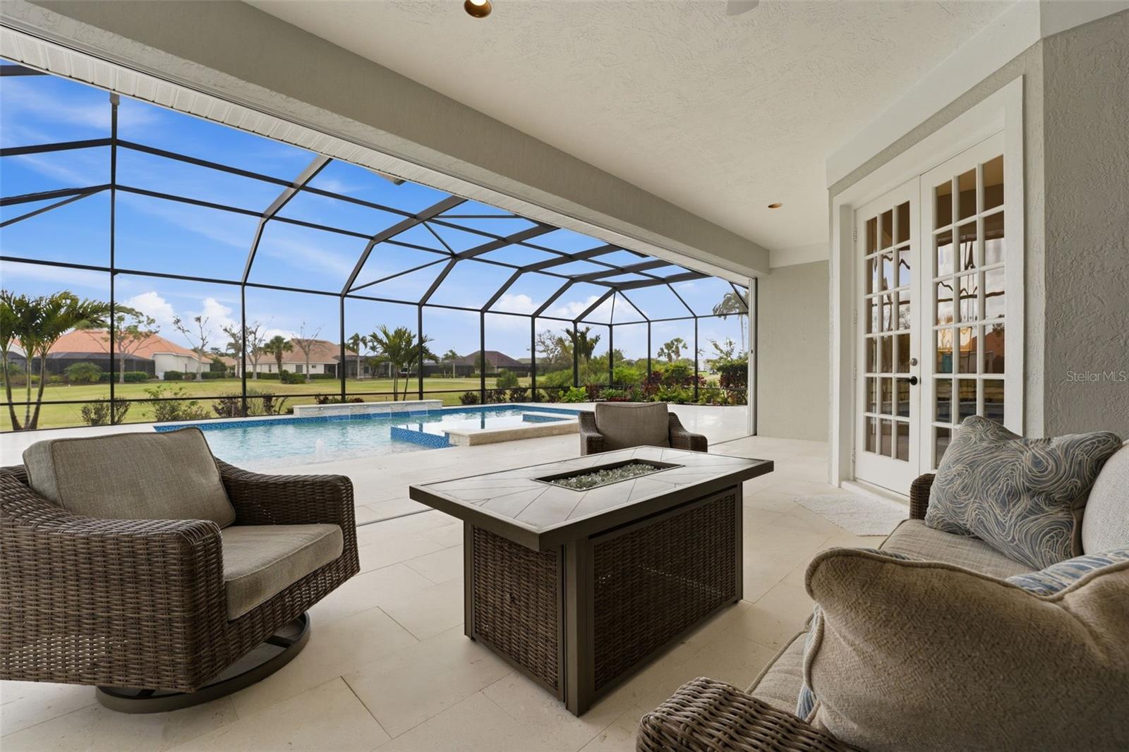 Huge Price Improvement! Set on a beautifully manicured homesite in The Reserve, overlooking the 6th tee of the Panther Course and directly across from Plantation Golf & Country Club, this distinguished estate residence offers nearly 3,800 square feet of thoughtfully designed living where timeless architecture meets exceptional modern upgrades.The outdoor living experience is truly extraordinary. A newly constructed heated saltwater pool and spa create a private resort-style sanctuary, framed by shimmering glass tile, elegant white shell pavers, and stacked stone accents. The expansive screened lanai--with hurricane-protected enclosures, outdoor shower, and tranquil golf course views--offers the perfect setting for quiet mornings, sunset gatherings, and effortless Florida entertaining.Inside, expansive living spaces blend comfort and sophistication. The grand living room is anchored by a striking fireplace and framed by sweeping views of the lanai and fairway beyond. A beautifully designed kitchen features extensive KraftMaid soft-close cabinetry, abundant storage, and seamless flow into the home's entertaining spaces. A built-in wine bar with refrigerator connects the kitchen, dining, and living areas, creating a natural hub for hosting.The private primary suite is a peaceful retreat, offering French doors to the lanai, dual walk-in closets, and a beautifully appointed marble bath. Generous guest bedrooms, a renovated pool bath with direct outdoor access, and a vaulted office or den provide both flexibility and comfort for family and guests.Meticulously maintained and extensively upgraded, the home reflects over $280,000 in recent improvements, including the resort-style pool and spa, a newly constructed 3.5-car hurricane-rated garage addition, updated plumbing throughout, new landscaping, upgraded lighting and fans, fresh interior paint, and new pool enclosure screening and doors. An oversized driveway accommodates up to eight vehicles, complementing the rare 3.5-car garage.Additional features include hurricane windows across the front of the home, easy-close hurricane shutters including full lanai protection, insulated interior walls, plantation shutters, a spacious laundry room with abundant storage, and a unique interior garden space within the lanai.Located in a welcoming neighborhood with low HOA fees and no CDD, and offering convenient access to golf, tennis, pickleball, and dining at Plantation Golf & Country Club, this exceptional residence embodies the elegance, privacy, and effortless lifestyle that define luxury Florida living.