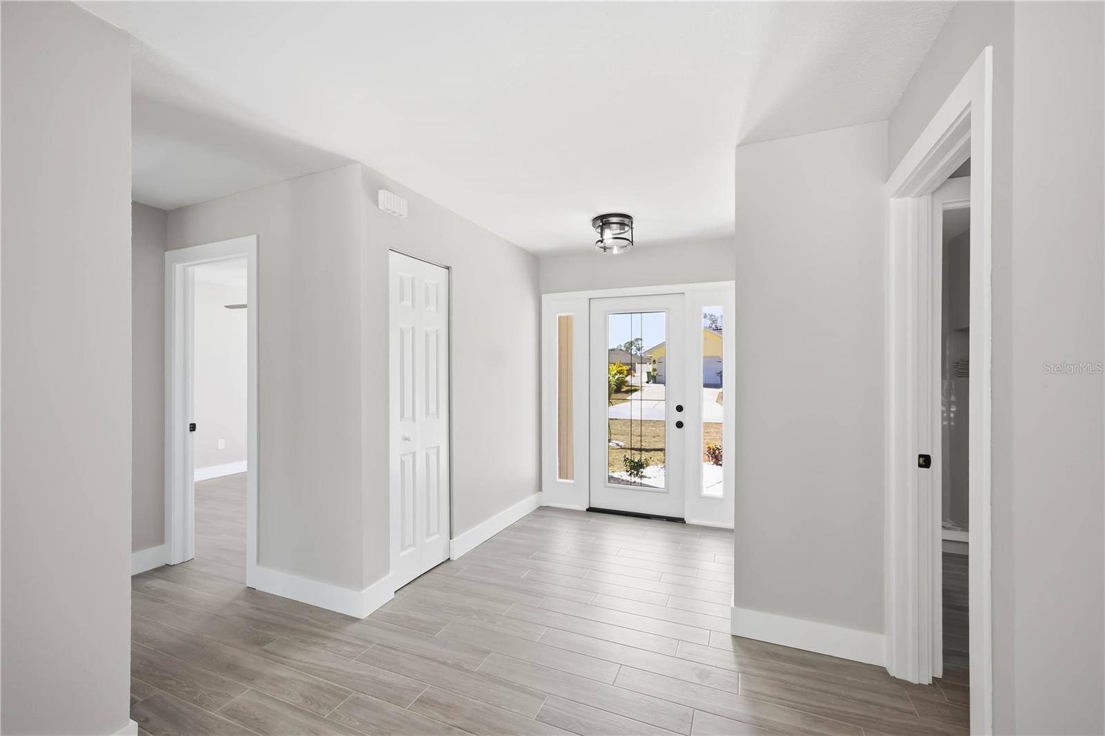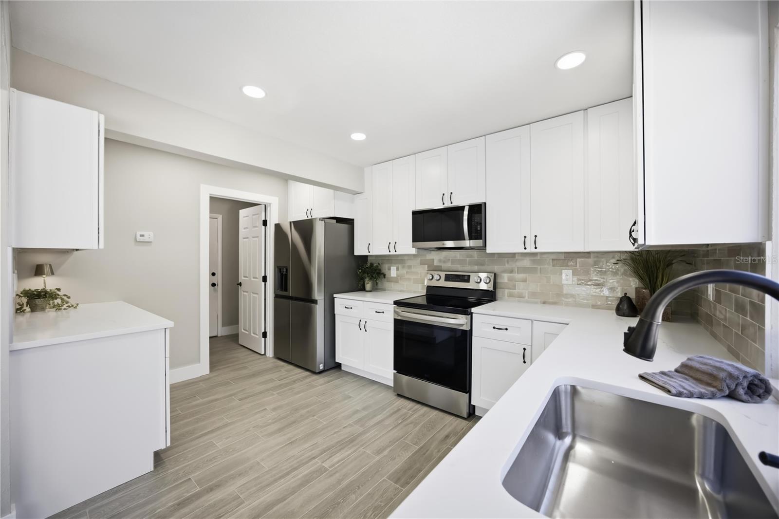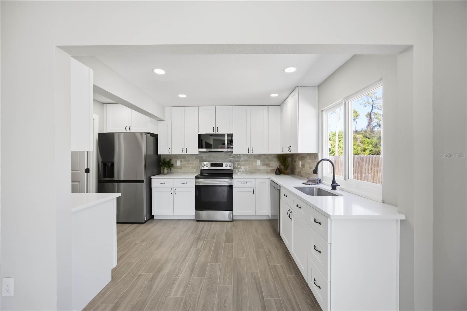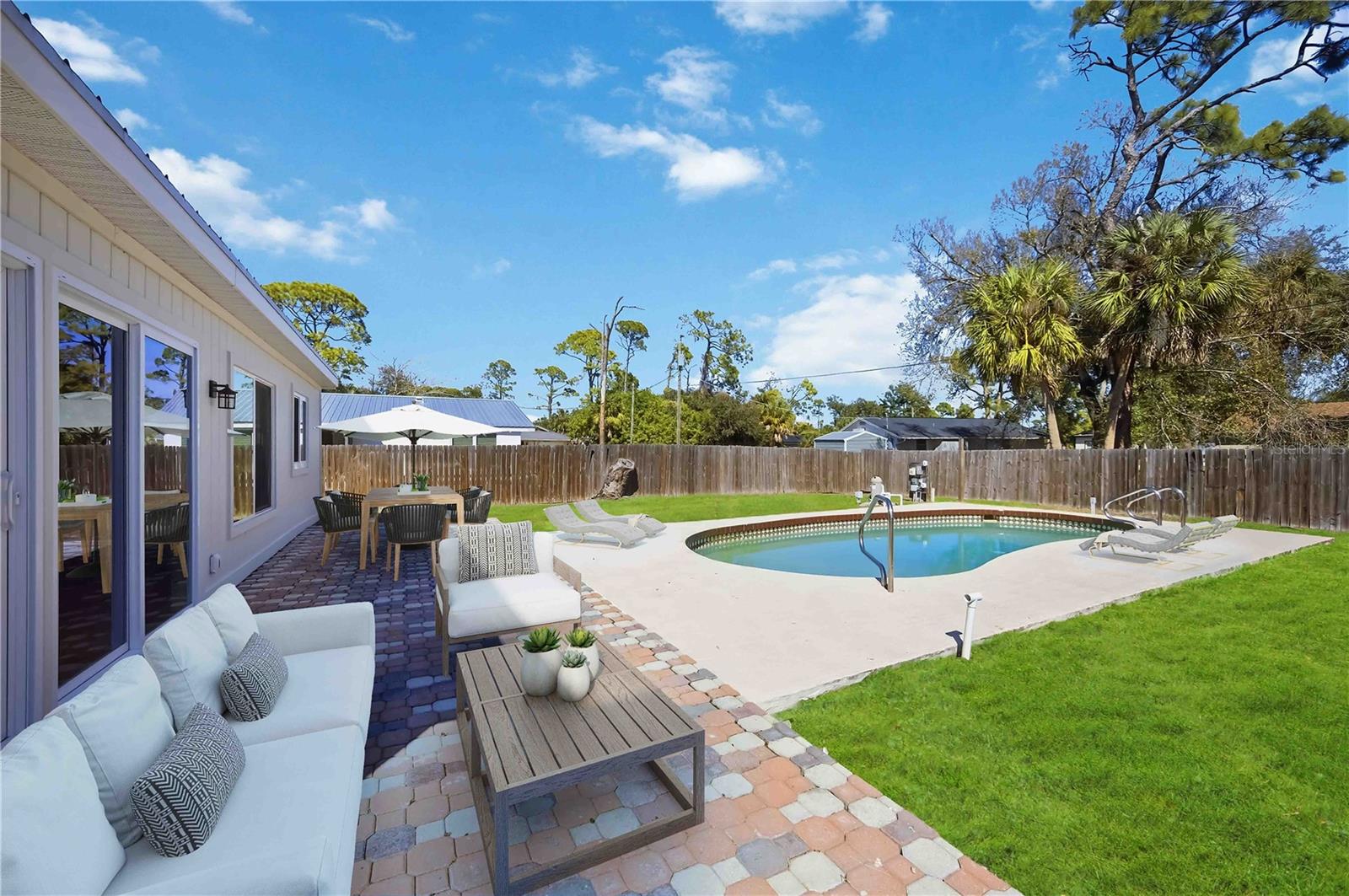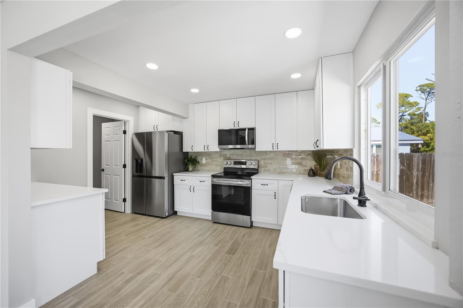 A Rare Blend of Style, Quality & Privacy. This extensively remodeled 3-bedroom, 2-bath home has been thoughtfully updated from top to bottom, offering a perfect combination of modern design and everyday comfort.Step inside to bright, open living spaces highlighted by a brand-new impact-rated front door, windows, and sliding glass doors (2025) that fill the home with natural light. The interior and exterior have been freshly painted, and a new metal roof (2023) provides long-term peace of mind.The beautifully updated kitchen serves as the heart of the home, featuring sleek quartz countertops, brand-new stainless steel appliances, and abundant cabinetry--ideal for both everyday living and entertaining. Ceramic plank tile flooring flows throughout, creating a cohesive and low-maintenance living environment.Three sets of sliding glass doors open to the screened lanai and sparkling pool, creating a seamless indoor-outdoor lifestyle. The spacious yard is enhanced by a combination of wood and vinyl privacy fencing, offering both space and seclusion.The primary suite features an updated ensuite bath with a walk-in shower finished with decorative tile and river rock accents. Two additional bedrooms and a second full bath provide flexibility for guests or a home office.Additional upgrades include an inside laundry room with a brand-new HVAC system, new electrical panel, and new water heater.Located in a non-flood zone with NO CDD fees, this home offers convenient access to dining, shopping, and I-75.This is truly a move-in-ready home where major updates have already been completed.