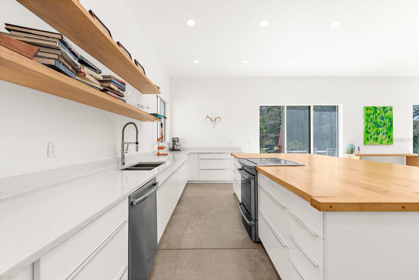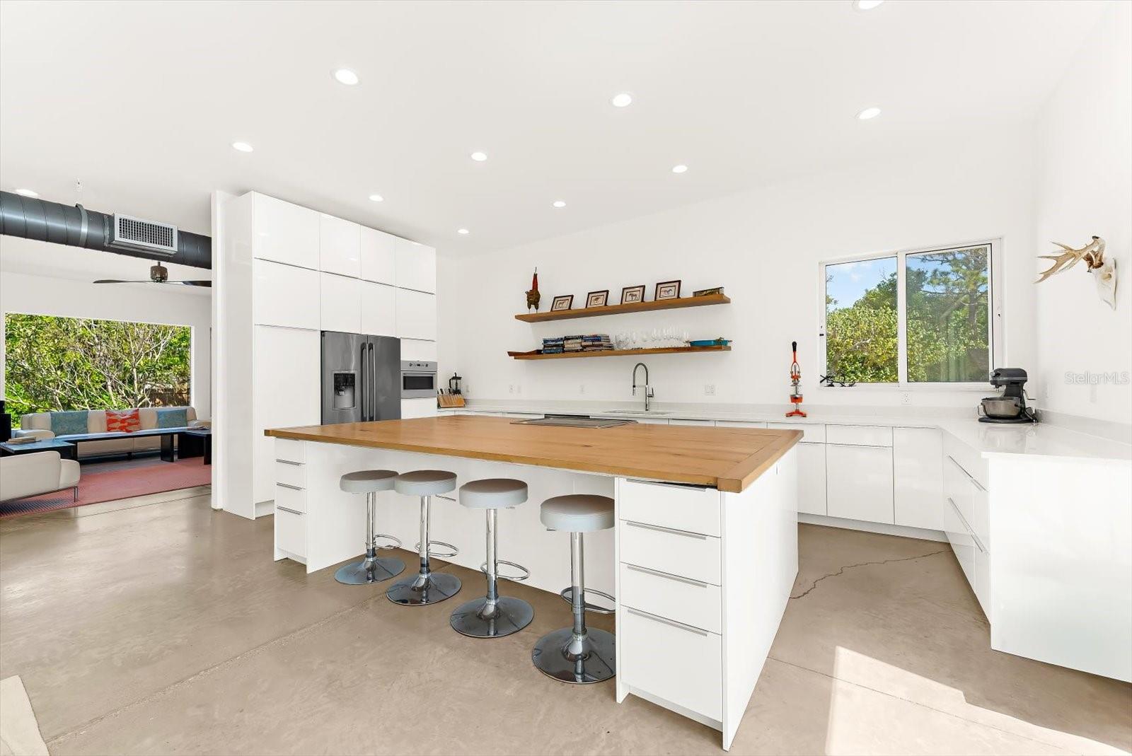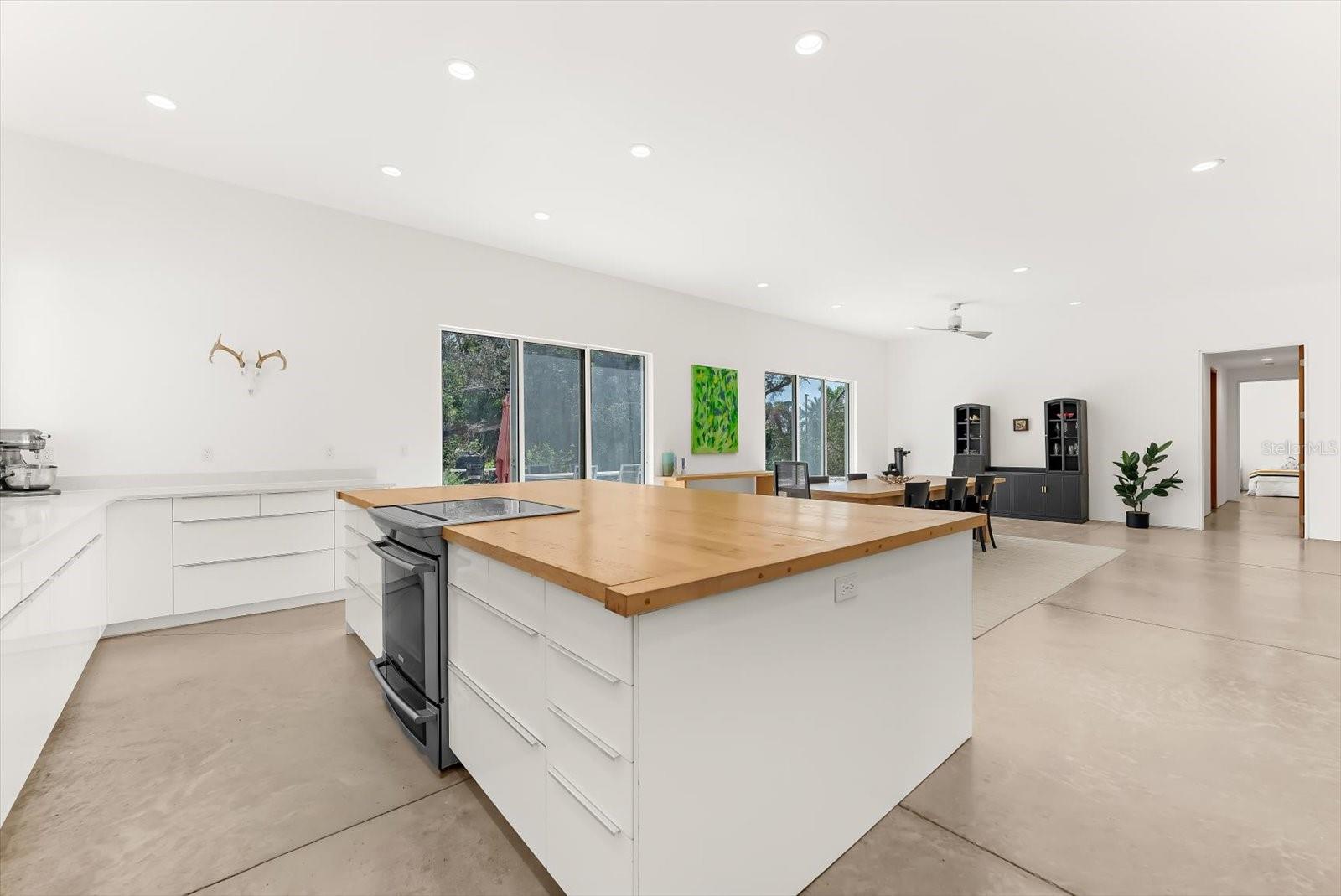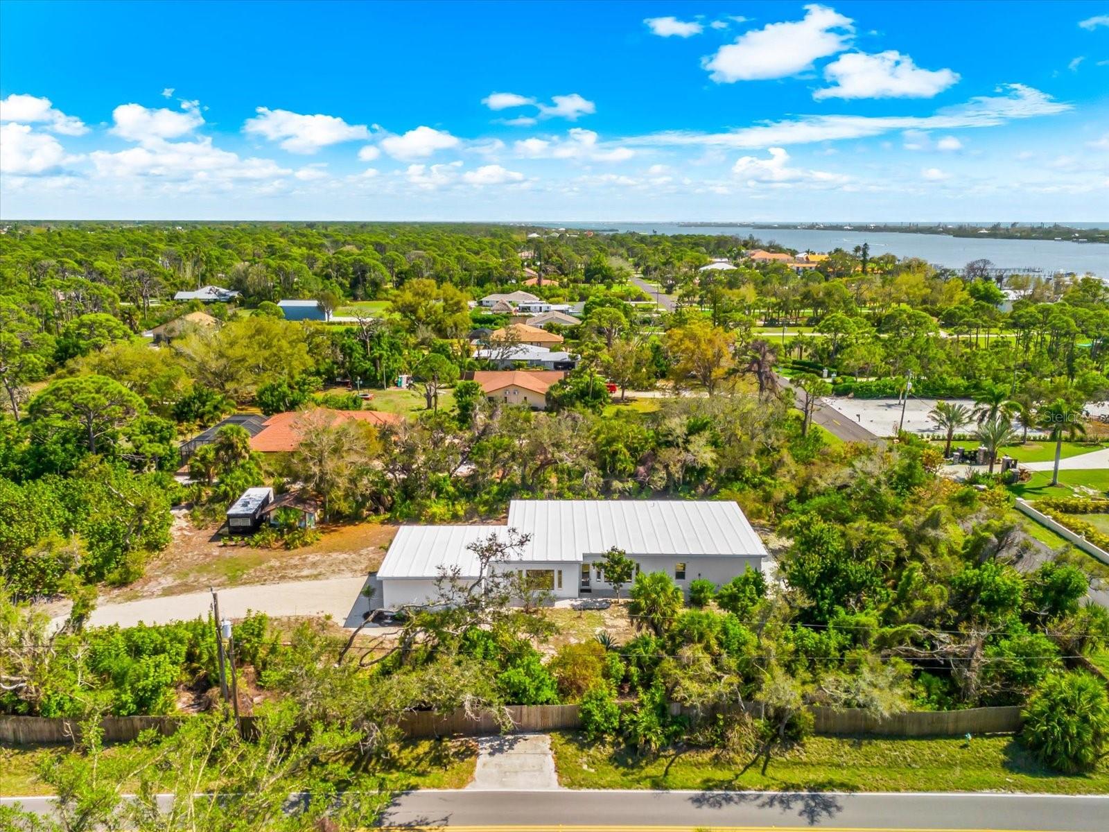 Private. Custom. Energy-Efficient. Low-Maintenance. Built with Strength.This one-of-a-kind residence blends solid concrete construction (including the roof) with open, light-filled living. Set on 1.3 acres just minutes from Manasota Beach, with the Intracoastal Waterway across the street, the property offers a rare mix of seclusion, durability, and coastal convenience.The 3-bedroom, 3-bath home spans 2,887 sq ft and showcases polished concrete floors, high ceilings, exposed ductwork, clean architectural lines, and oversized windows that frame the surrounding natural landscape. The open-concept kitchen features a 100+ year-old maple island, modern cabinetry, and stainless steel appliances, flowing seamlessly into expansive living and dining areas ideal for entertaining or everyday living.Sliding glass doors open to a wide outdoor patio, extending the living space into the serene setting. Thoughtfully designed native Florida landscaping complements the green roof and concrete design, supporting natural cooling, efficient drainage, and low-maintenance living.Designed with a resort-style pool in mind beyond the patio, the property presents a rare opportunity to craft a truly private outdoor retreat.Enjoy the convenience of a short bike or golf-cart ride over the bridge to Manasota Beach, with the option to join the Englewood Gardens Beach Club, offering private beach access, dedicated parking, and a calendar of social events. This exceptional home is a must-see to truly appreciate.