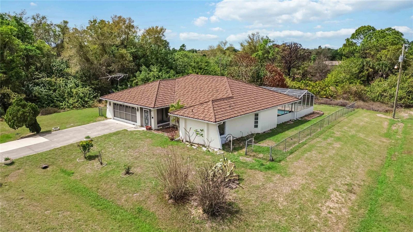 Situated on an oversized corner lot in a quiet North Port neighborhood, this 3-bedroom, 2-bathroom pool home offers great potential for the right buyer. The home features a spacious layout with tile and laminate flooring, a comfortable living area, and a functional kitchen with adjoining dining space. A split-bedroom floor plan provides added privacy, with a primary suite that includes its own bathroom and two additional bedrooms that can accommodate family, guests, or a home office. This property does need some TLC, including a thorough cleaning and fresh paint inside and out, but it presents a solid opportunity to make it your own. The private backyard includes a pool, offering a great space for relaxing or entertaining once refreshed. Major updates include a 2023 roof and 2024 HVAC system. Located in Flood Zone X with no HOA or CDD fees, this home provides added peace of mind and affordability. Conveniently situated near major roadways, shopping, dining, and area beaches. Schedule your showing today!