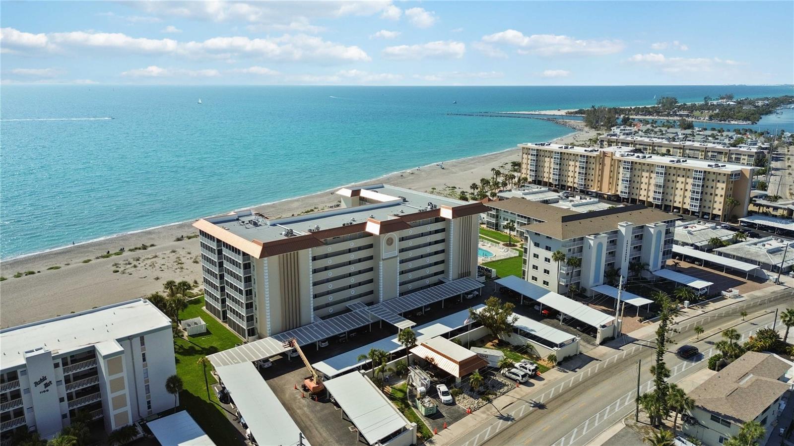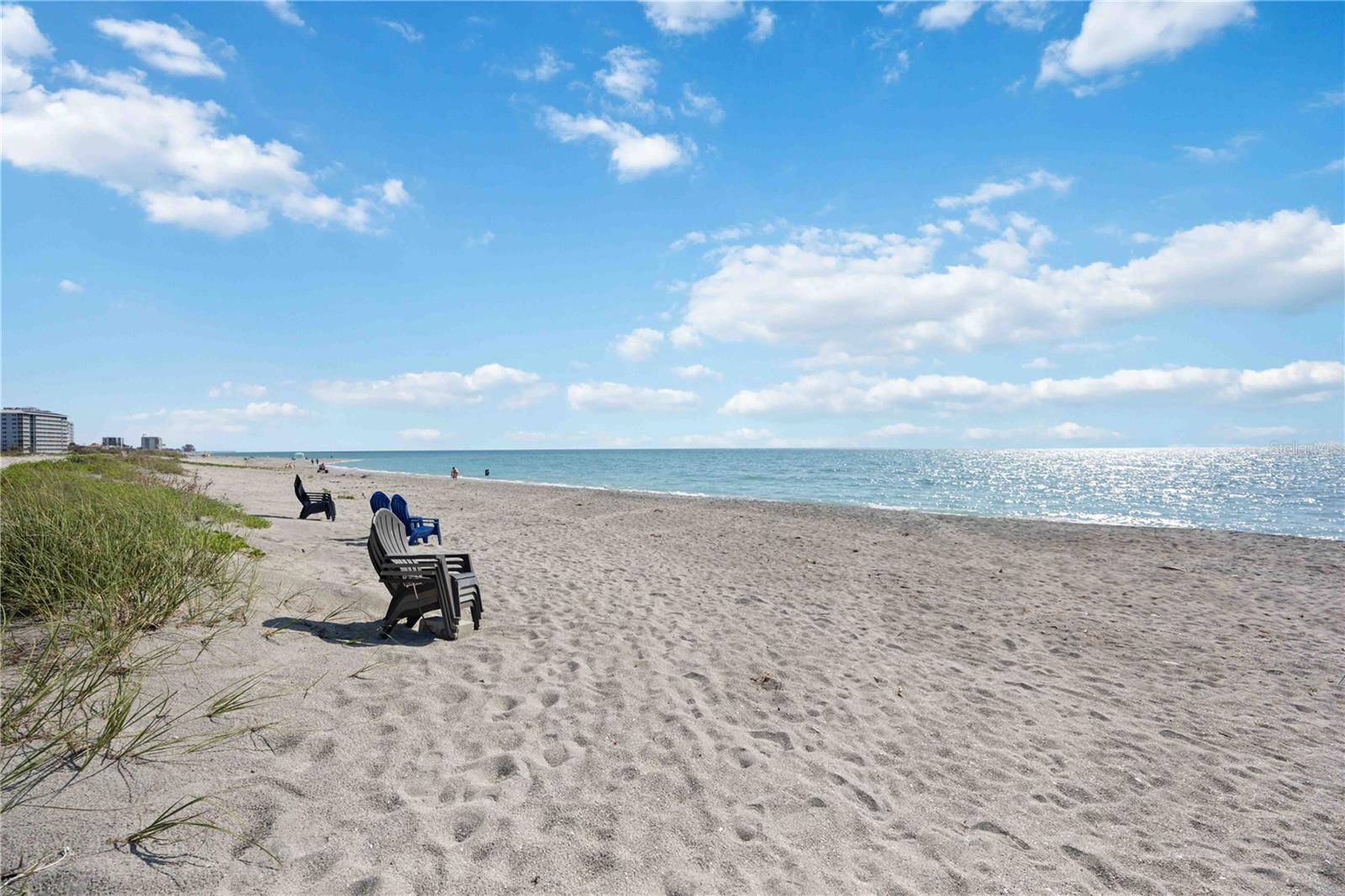 Experience the best of coastal living from this beautifully updated 2-bedroom, 2-bathroom beachfront condominium on Venice Island, ideally positioned to capture southern-facing Gulf views and breathtaking beach vistas. Just steps from the sand, this residence offers an exceptional blend of comfort, style, and location.Inside, the home has been thoughtfully refreshed with luxury vinyl plank flooring, fresh interior paint, and plantation shutters throughout, creating a light and inviting coastal ambiance. The well-appointed kitchen features new Samsung white glass appliances, while the spacious layout includes a large primary suite with en-suite bath and walk-in closets, offering both comfort and privacy.One of the most impressive features is the expansive 31-foot lanai, where you can relax and enjoy long, unobstructed views of the beach and turquoise Gulf waters, enhanced by its desirable southern exposure--filling the home with natural light throughout the day.Additional upgrades include a new hot water heater and new HVAC system. The unit also offers an in-unit laundry hook-up for added convenience.Residents enjoy amenities designed to complement the beachfront lifestyle, including a large beachfront pool, outdoor beach showers, BBQ grilling area, and bike & kayak storage, along with a laundry facility conveniently located on the same floor. Ideally located across the street from the Freedom Boat Club, Venice Yacht Club, and Pelican Bay, where boat slips may be available for rent.The Towers is a pet-friendly building--one of the few on Venice Island.The monthly condo fee includes internet, cable, water, sewer, trash, exterior maintenance, and pest control, allowing for easy, maintenance-free living. Each unit also includes a private 5' x 4' storage cage located in the shared laundry area on your floor--perfect for storing beach gear and bikes. A well-managed association ensures the community is consistently maintained and cared for.Enjoy the convenience of being just minutes from historic downtown Venice, where you'll find boutique shopping, dining, tennis and pickleball courts, and a vibrant cultural scene.Whether you're seeking a full-time residence, seasonal retreat, or investment opportunity, this is a rare opportunity to own a prime Gulf-view property in one of Venice Island's most desirable beachfront locations