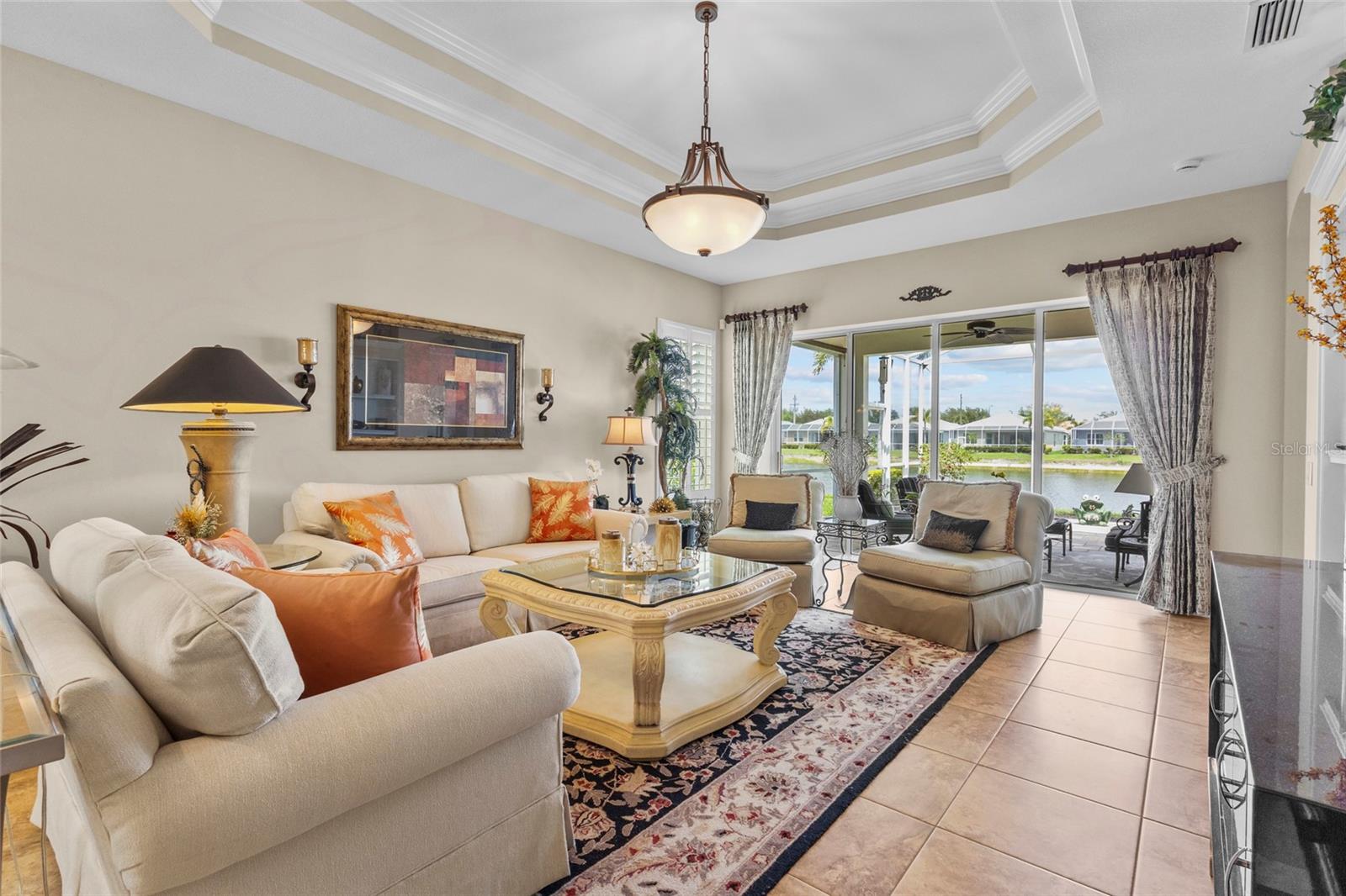 Enjoy the ease of maintenance-free living in this beautifully upgraded patio home in St. Andrews East at The Plantation Golf & Country Club, where exterior care is fully handled so you can focus on enjoying the Florida lifestyle. The association covers exterior insurance from the drywall out, including wind coverage, along with roof reserves, exterior painting, lawn care, pest control, termite prevention, two community pools, a resident-run clubhouse, and full community management--offering true peace of mind with no CDD fee.This thoughtfully designed home is filled with upgrades and architectural detail, including crown molding, tray ceilings, and elegant arches and columns that define the dining and living spaces within the open floor plan. Expansive pocketing sliding glass doors seamlessly blend indoor and outdoor living, opening to an oversized lanai with both covered and open areas--perfect for enjoying year-round lake views and Florida's beautiful weather. Plantation shutters are featured throughout, while the primary suite showcases an electric window shade to fully capture the tranquil lake backdrop.The spacious kitchen is the heart of the home, offering an abundance of cream-colored cabinetry, granite countertops, a center island, stainless steel appliances including an induction cooktop and double wall ovens, a breakfast bar, and a charming eat-in nook framed by a bay window. The oversized pantry features custom wood shelving for exceptional storage.The primary suite is a private retreat with peaceful lake views, two walk-in closets with custom organizers, dual sinks, and a walk-in shower. A generously sized den offers flexibility as a home office or additional guest space, while the guest suite is tucked away with its own private bath and walk-in closet for added privacy. A convenient half bath adds functionality for guests, making this home as practical as it is beautiful.Additional features include a whole-house central vacuum system, water softener, oversized garage, and a new water heater in 2024. Impact windows and clear shutters for the sliding glass doors make this home storm-ready with ease.Optional membership to The Plantation Golf & Country Club enhances the lifestyle even further, offering access to two 18-hole championship golf courses, 13 Har-Tru tennis courts, six pickleball courts, bocce ball, a fitness center, Jr. Olympic pool, and exceptional dining and social events.Perfectly located just minutes from Gulf beaches, shopping, dining, Wellen Park Downtown, the Atlanta Braves Spring Training Stadium, and easy access to I-75, this home is simply perfect and delivers the very best of Florida living.