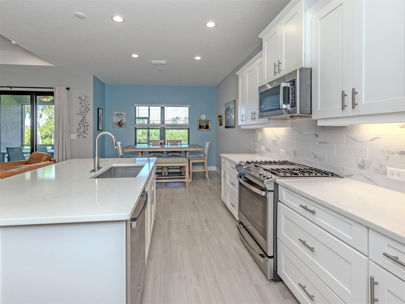 Safety, Luxury, and Location. This turn-key furnished home checks all the boxes. This Neil-built home in Vicenza features 3 bedrooms plus a den/study, 2.5 baths, and a 3 car garage. This sturdy built block home with a tile roof and hurricane impact glass windows and doors provides the safety and security every family wants and energy efficiency as a bonus. The desirable flood zone "X" and the quality of construction will keep your insurance costs low. HOA fees of $195 per month are a steal for this amenity rich community with no CDD Fees. The 3-car garage with sparkling epoxy floor has room for all your vehicles & toys and is the closest thing to a basement you will find in Florida. Enjoy your morning cup of coffee in privacy on your screened lanai overlooking the nature preserve and pond. Abundant white cabinets and quartz countertops give the kitchen a modern clean look. The island style kitchen with stainless steel appliances and gas stove is spacious, functional and has an abundance of workspace and storage. The spacious pantry will keep you organized. The great room is the center of all activity with easy access to the 3 spacious bedrooms and separate office. The owner's suite has his/hers walk in closets, an ensuite bathroom with roman shower and dual sinks with quartz counter tops. Tray Ceilings, 8 ft doors, and too many upgrades to mention. Vicenza is amenity rich offering a heated resort style pool & hot tub, social clubhouse with kitchen, event lawn, 2 bocce ball courts, 4 pickleball courts and 2 dog parks. Nature trails run throughout this gated and deed restricted community. Just minutes from the Venice Myakka Park offering canoe/kayak launch, fishing, rest rooms, hiking, picnic shelter, grills, and mother nature at her best. Offered below its original purchase price.