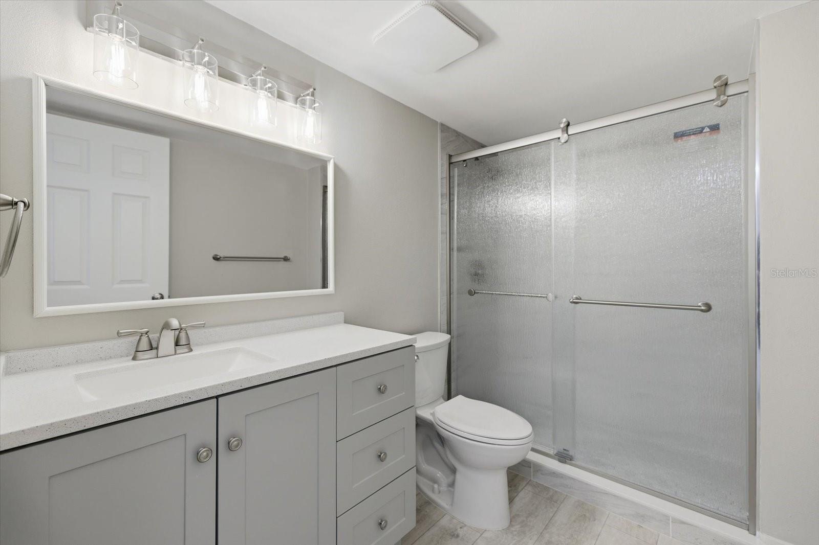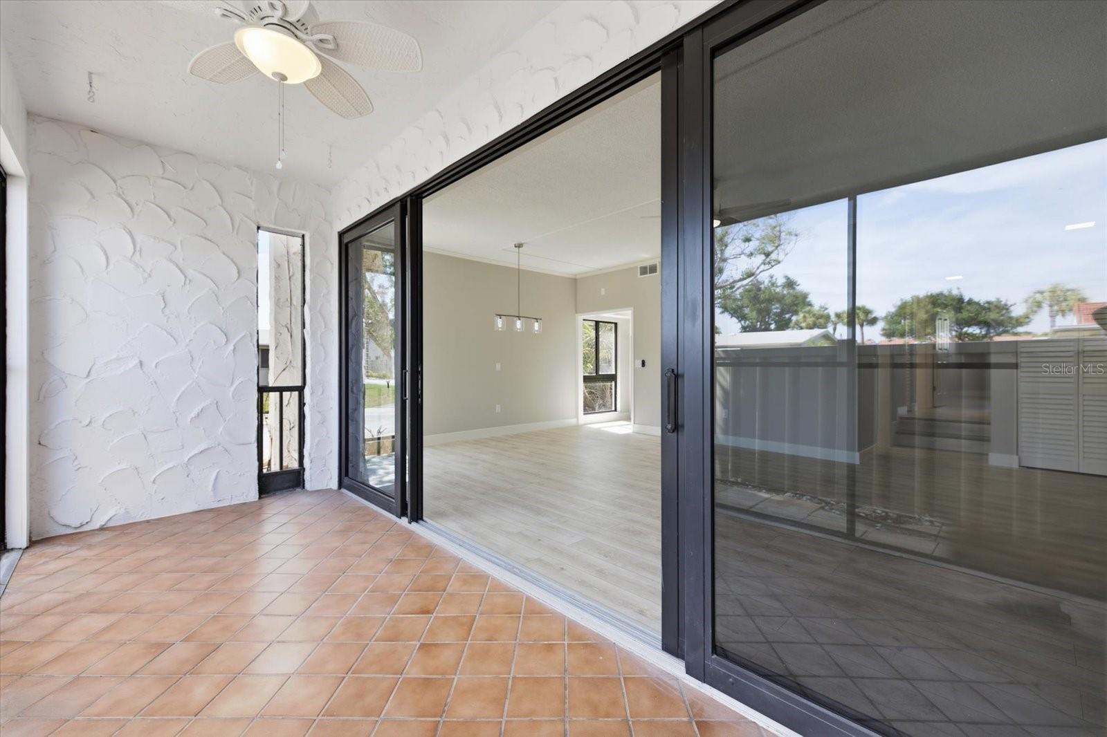 Exterior: Lighting, Sidewalk, Sliding Doors